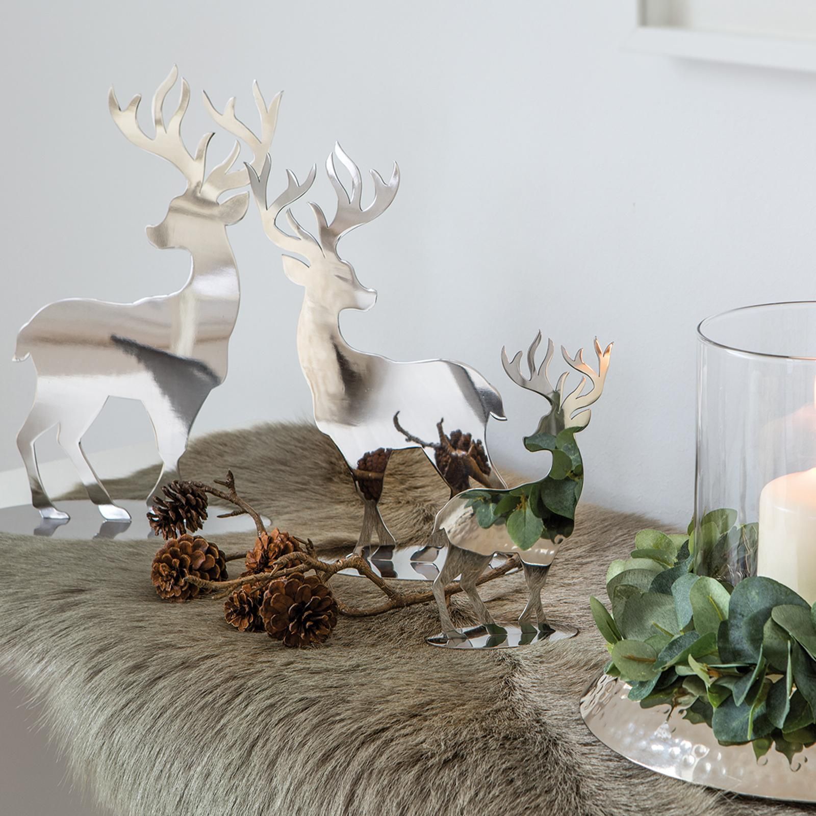 Fink Fink großer silberner Deko Hirsch 30 cm aus Edelstahl Dekofigur zum Aufstellen