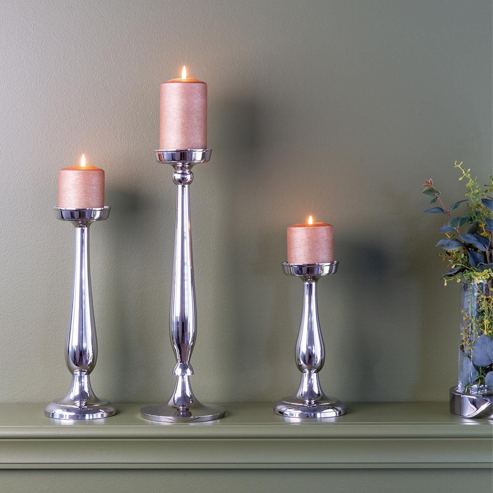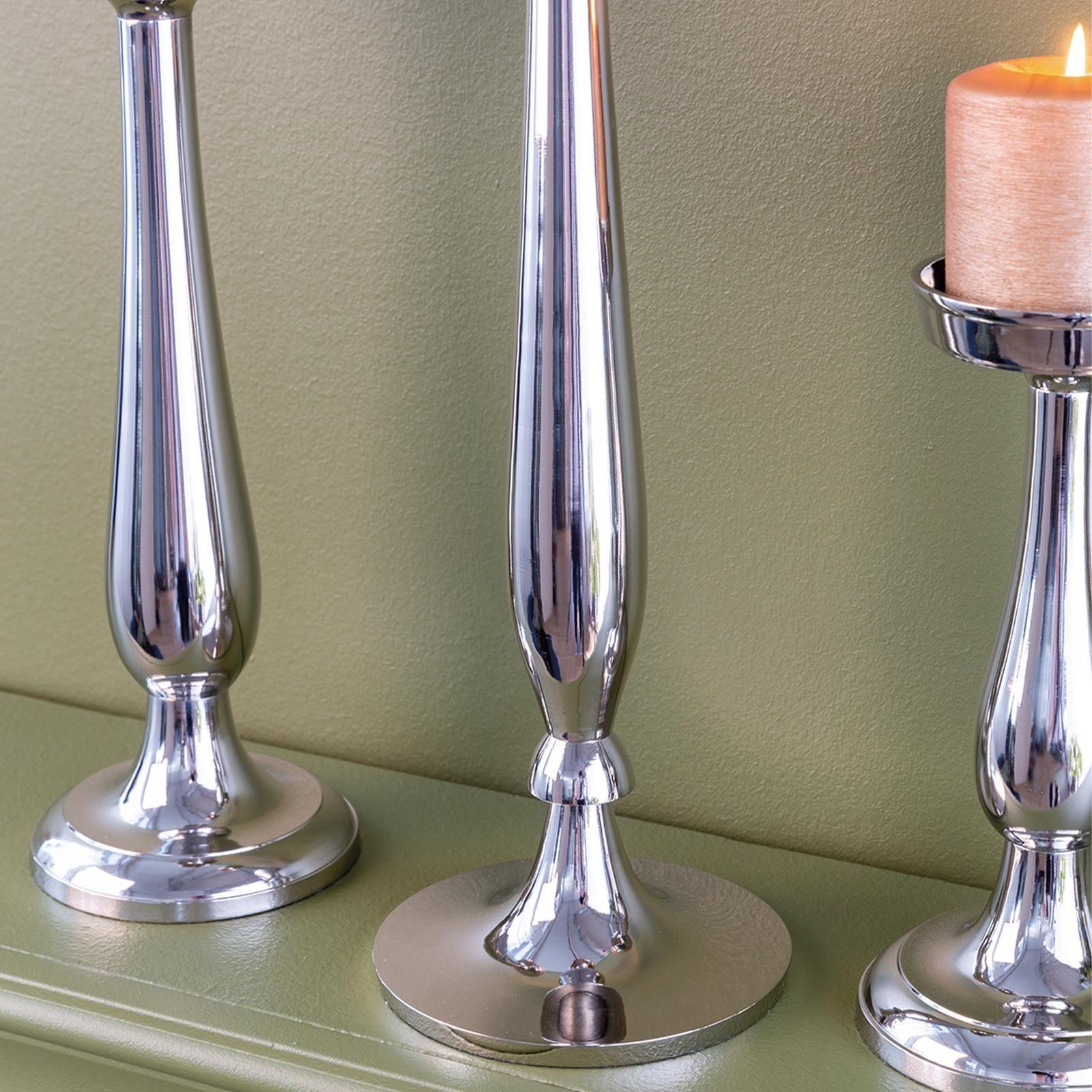 Fink Fink großer Stumpenkerzen-Halter 46 cm Alu vernickelt Kerzenhalter ohne Glas