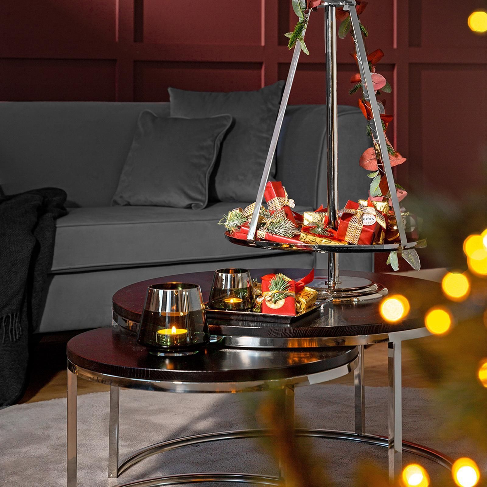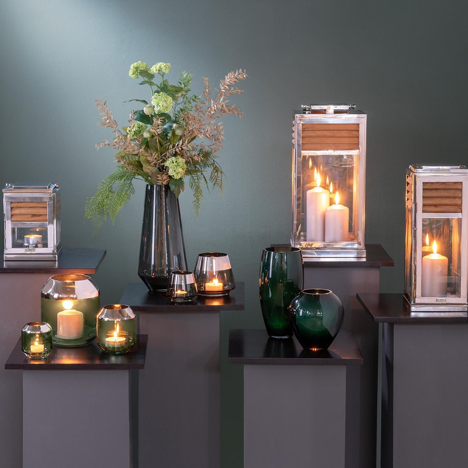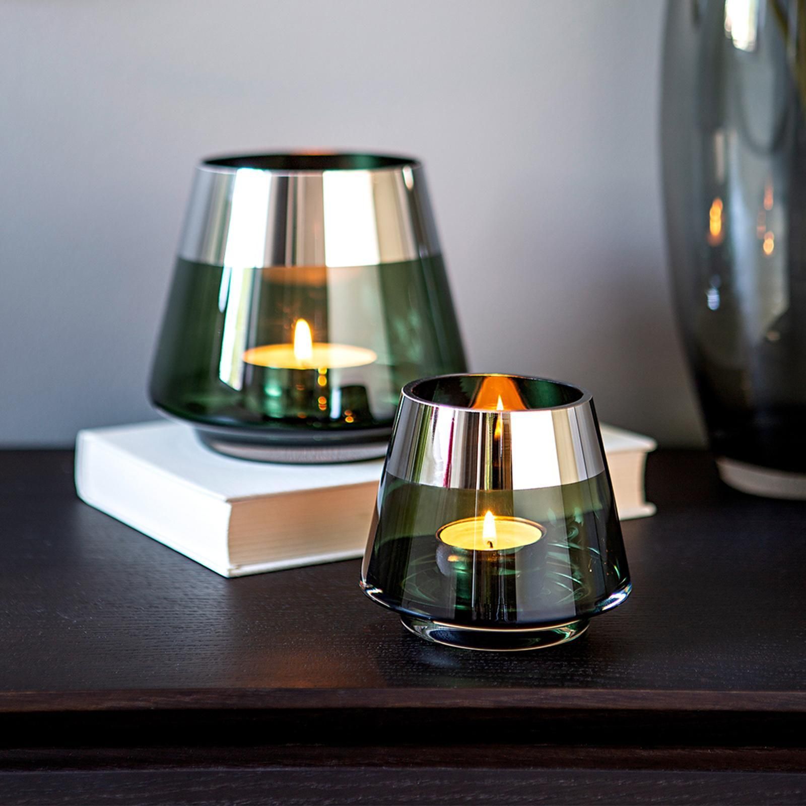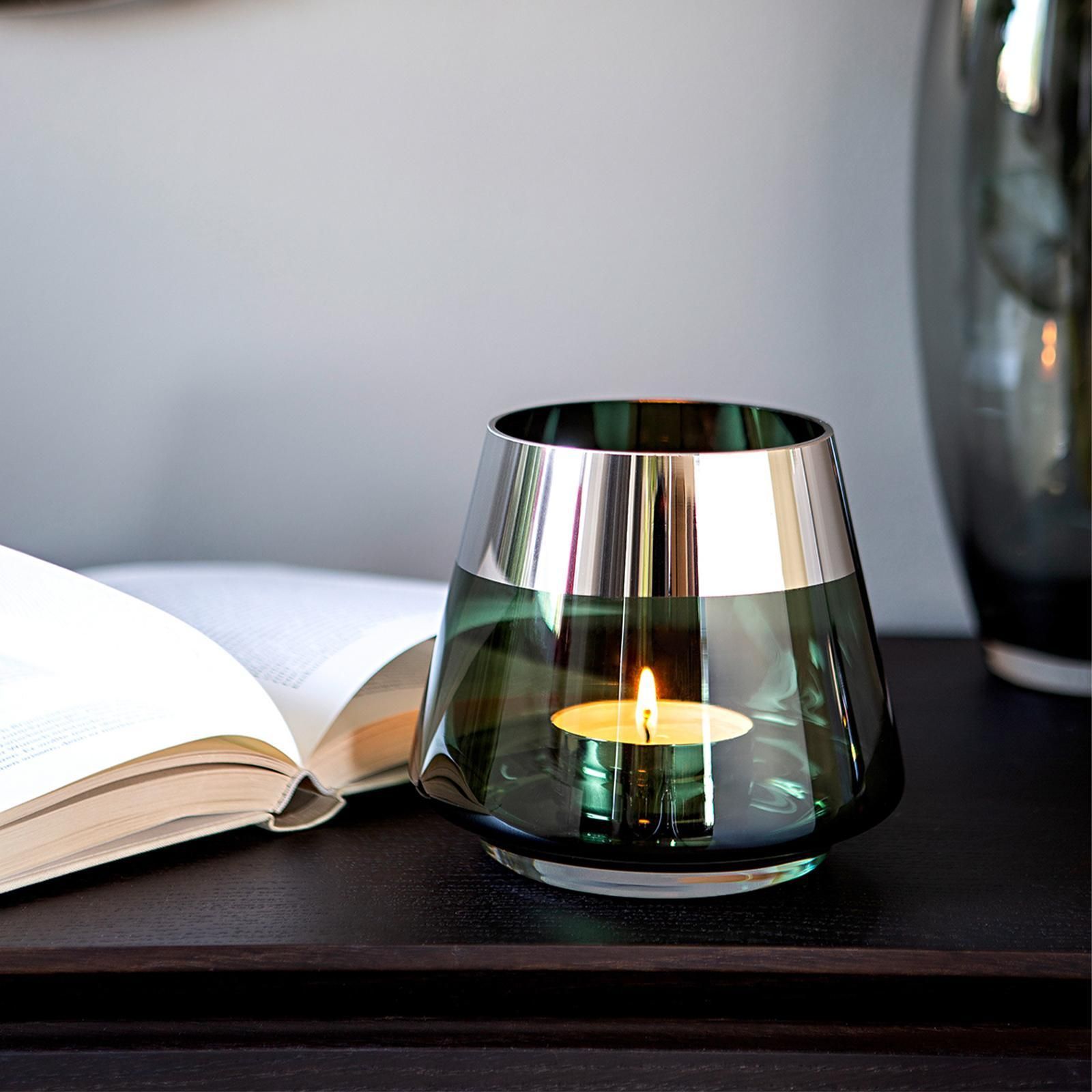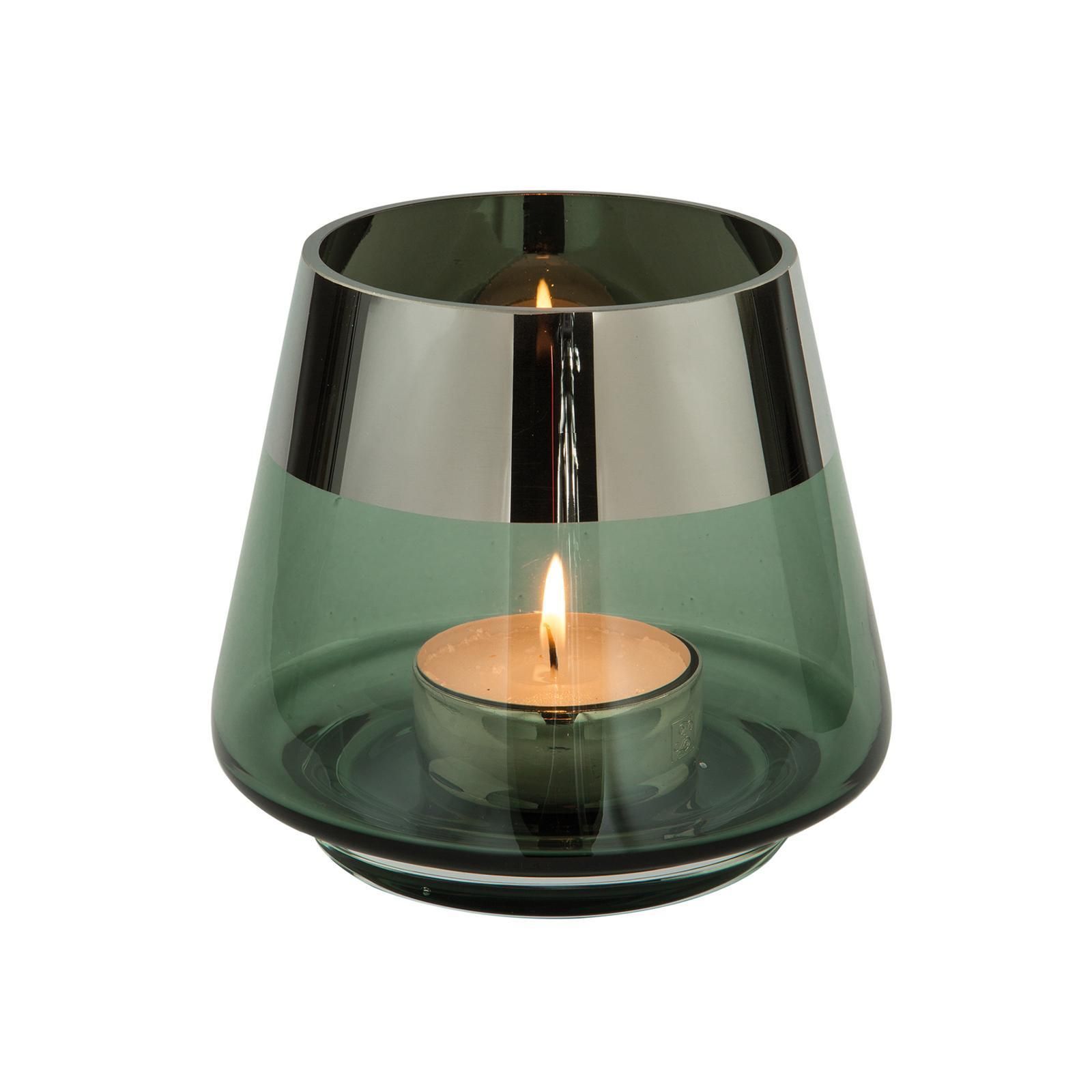 Fink Fink grünes Teelichthalter Ø 15 cm aus Glas großes Windlicht mit silbernem Rand