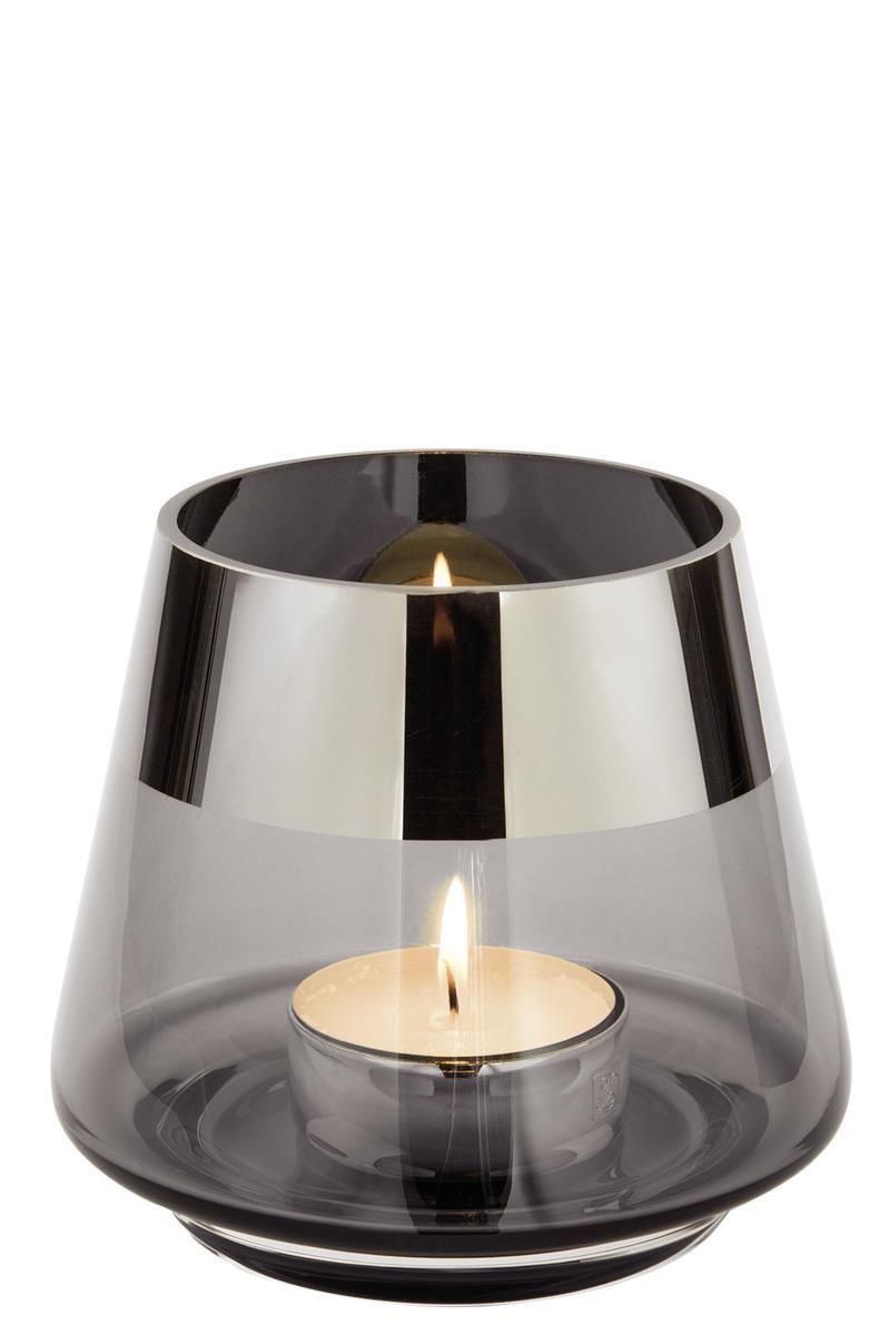 Fink Fink JONA, Teelichthalter, Glas, Silberfolie, glatt, grau, silberfarben, L. 15