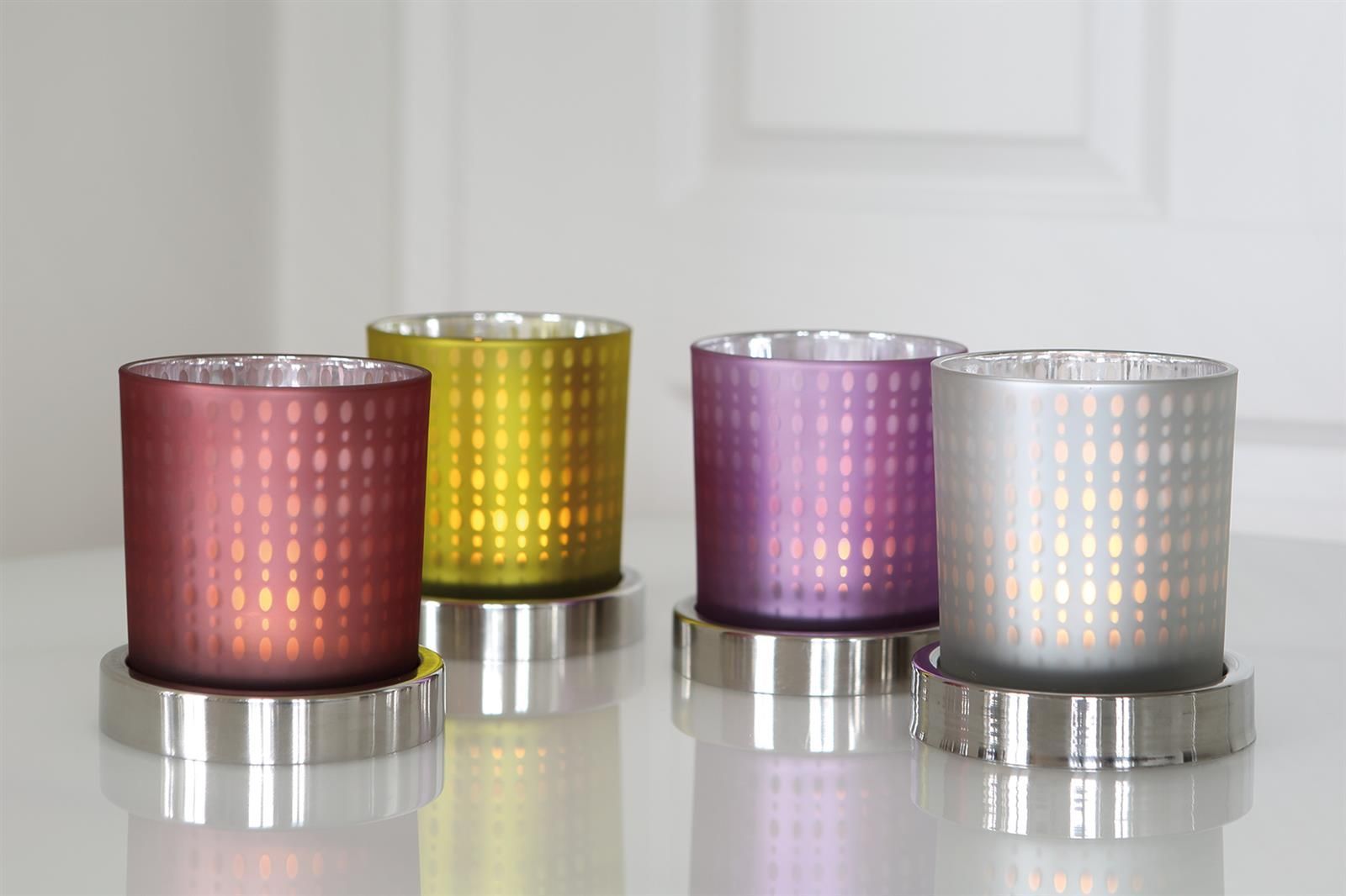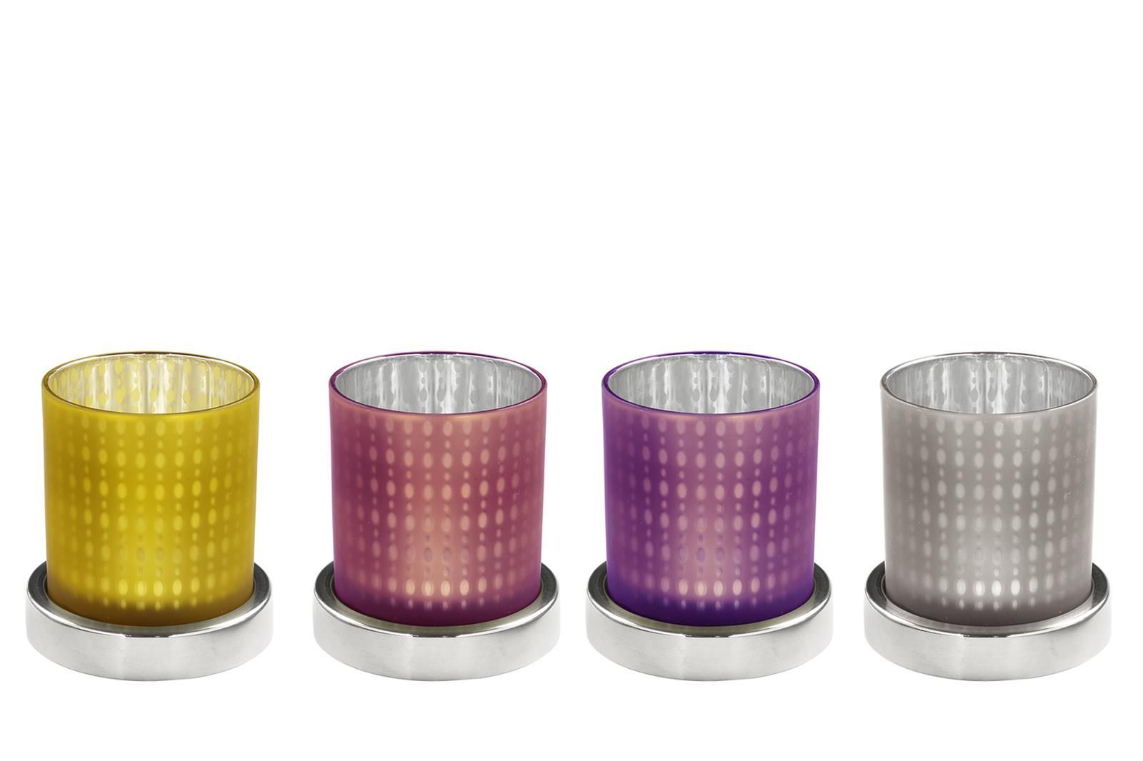 Fink Fink JONA, Teelichthalter, Glas, Silberfolie, glatt, rosa, silberfarben, L. 11