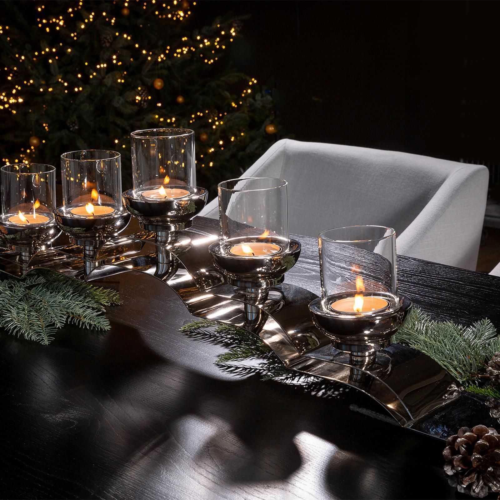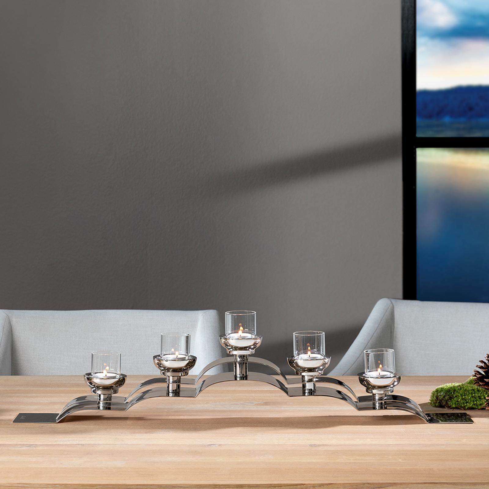 Fink Fink Kerzenleuchter 100cm mit Gläser Edelstahl 5-flg Kerzenhalter für Teelichter