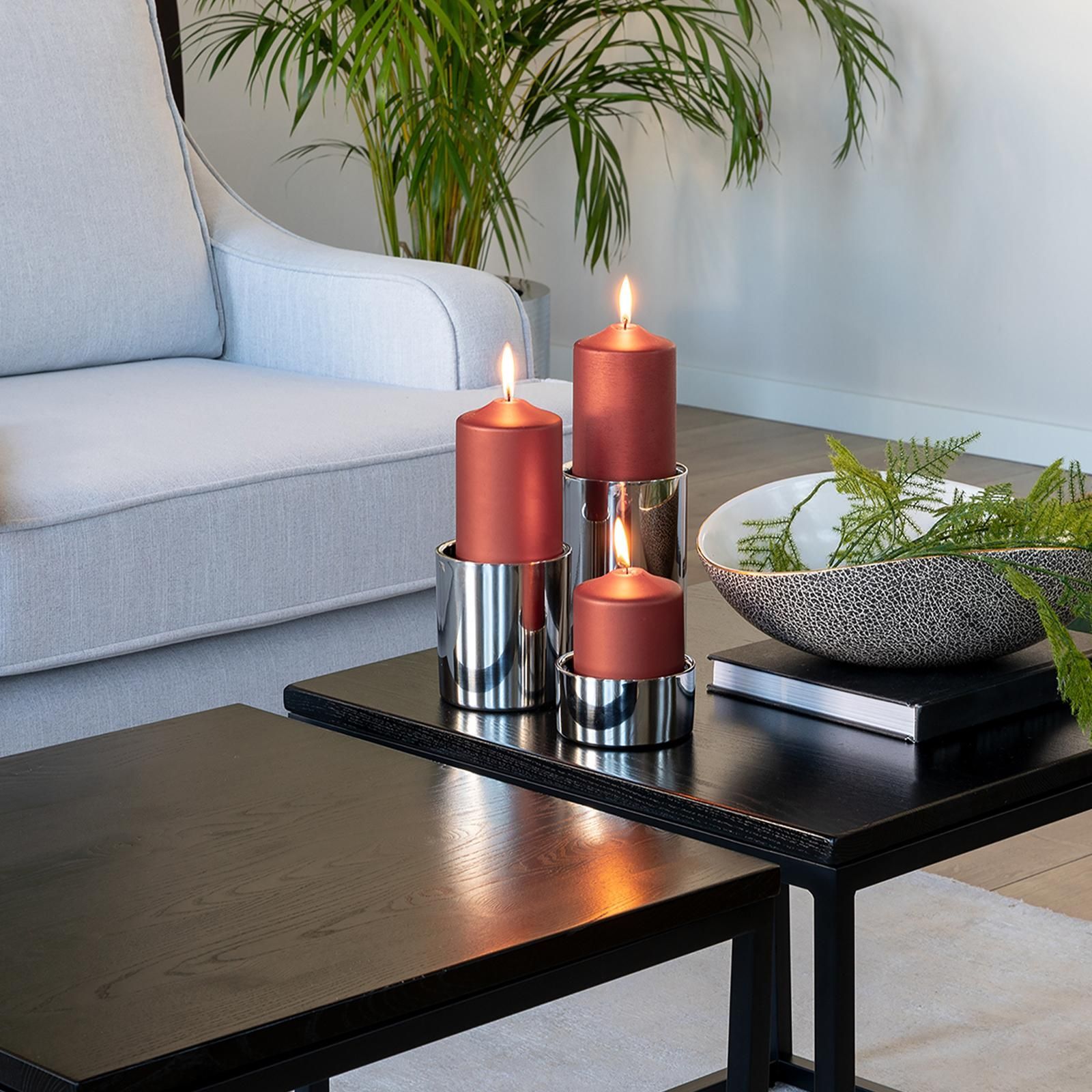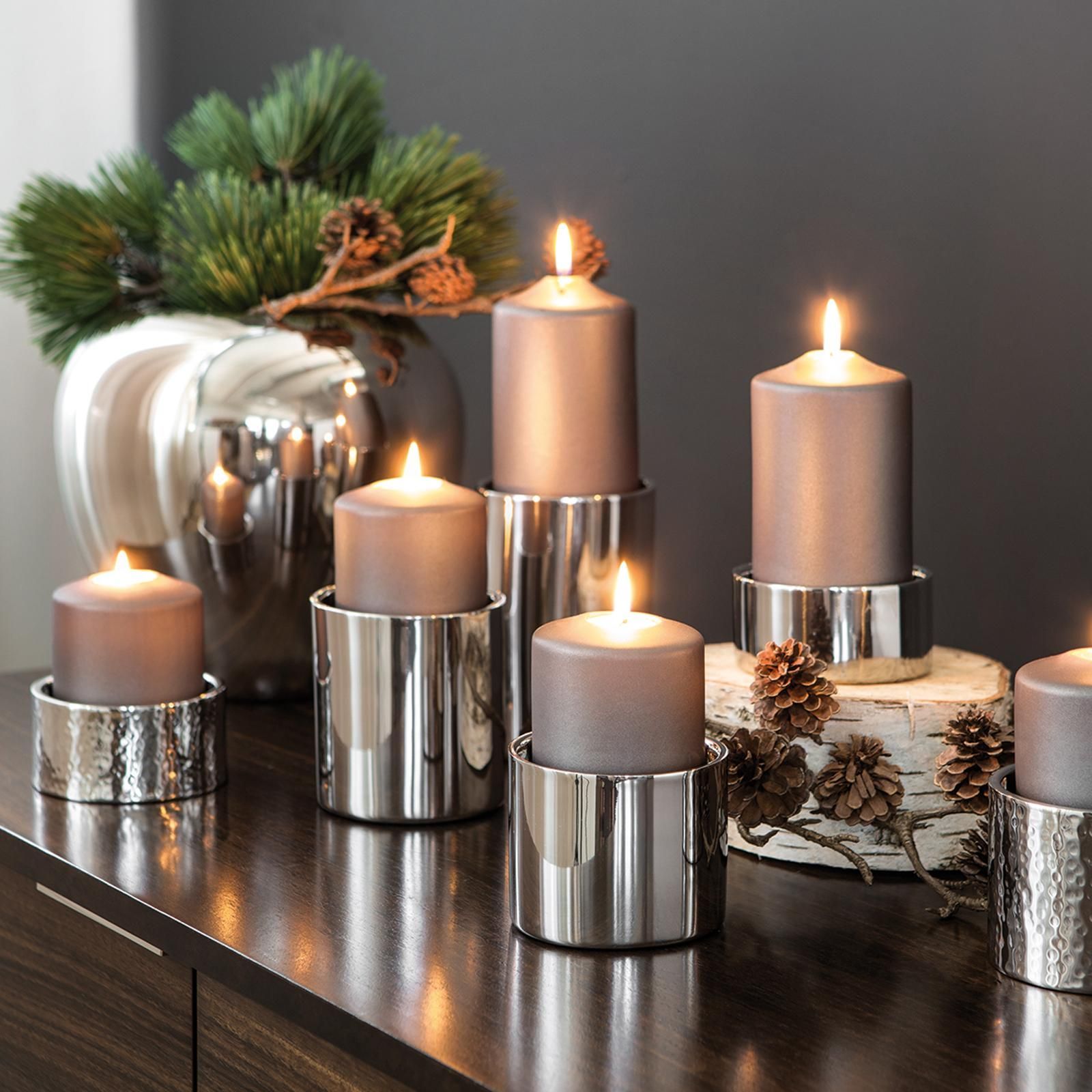 Fink Fink klassischer Edelstahl Stumpenkerzenhalter Ø 10x11 cm runder Kerzenständer