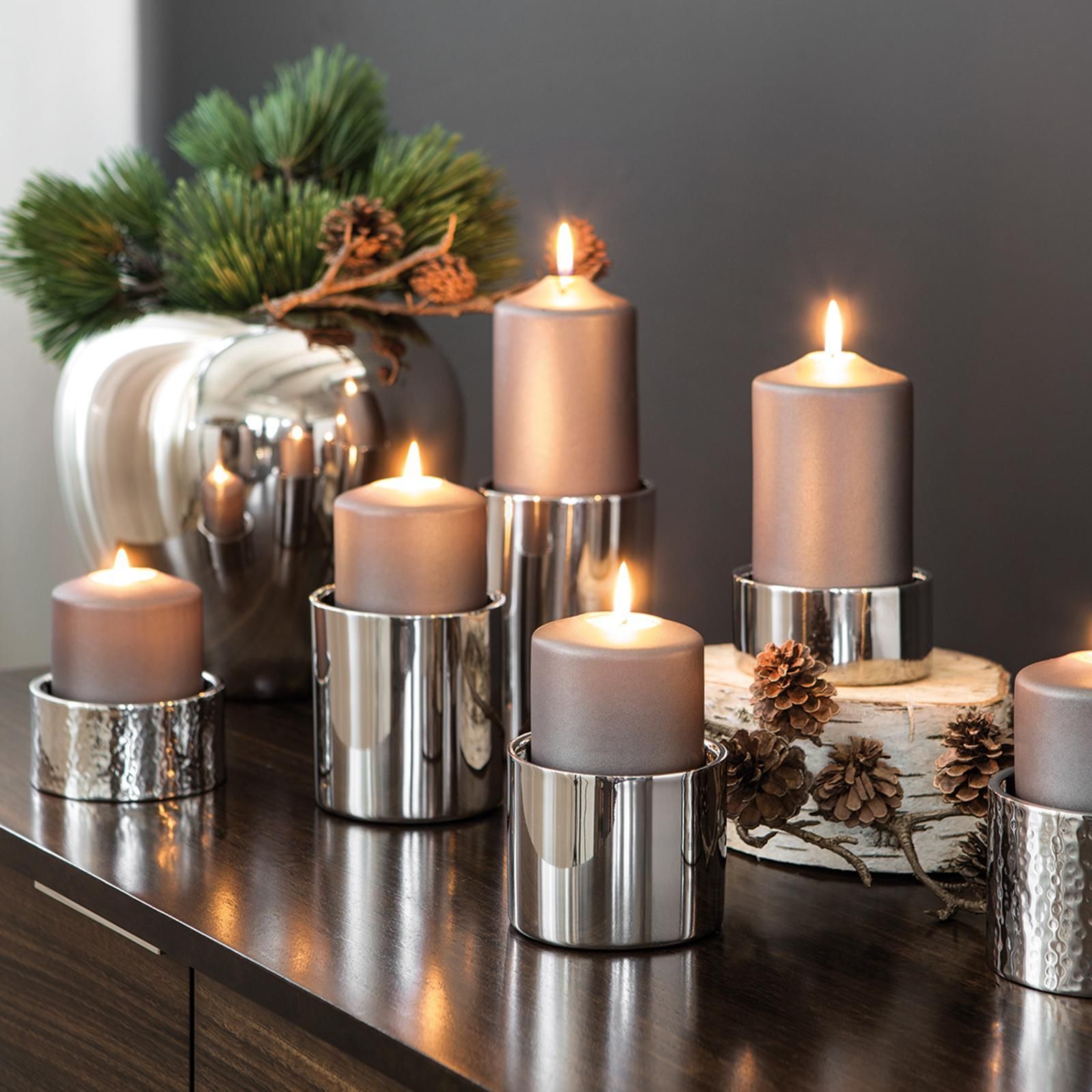 Fink Fink klassischer Edelstahl Stumpenkerzenhalter Ø 10x15 cm runder Kerzenständer