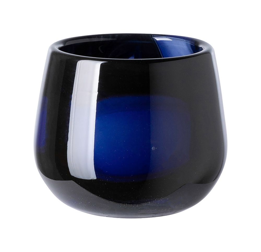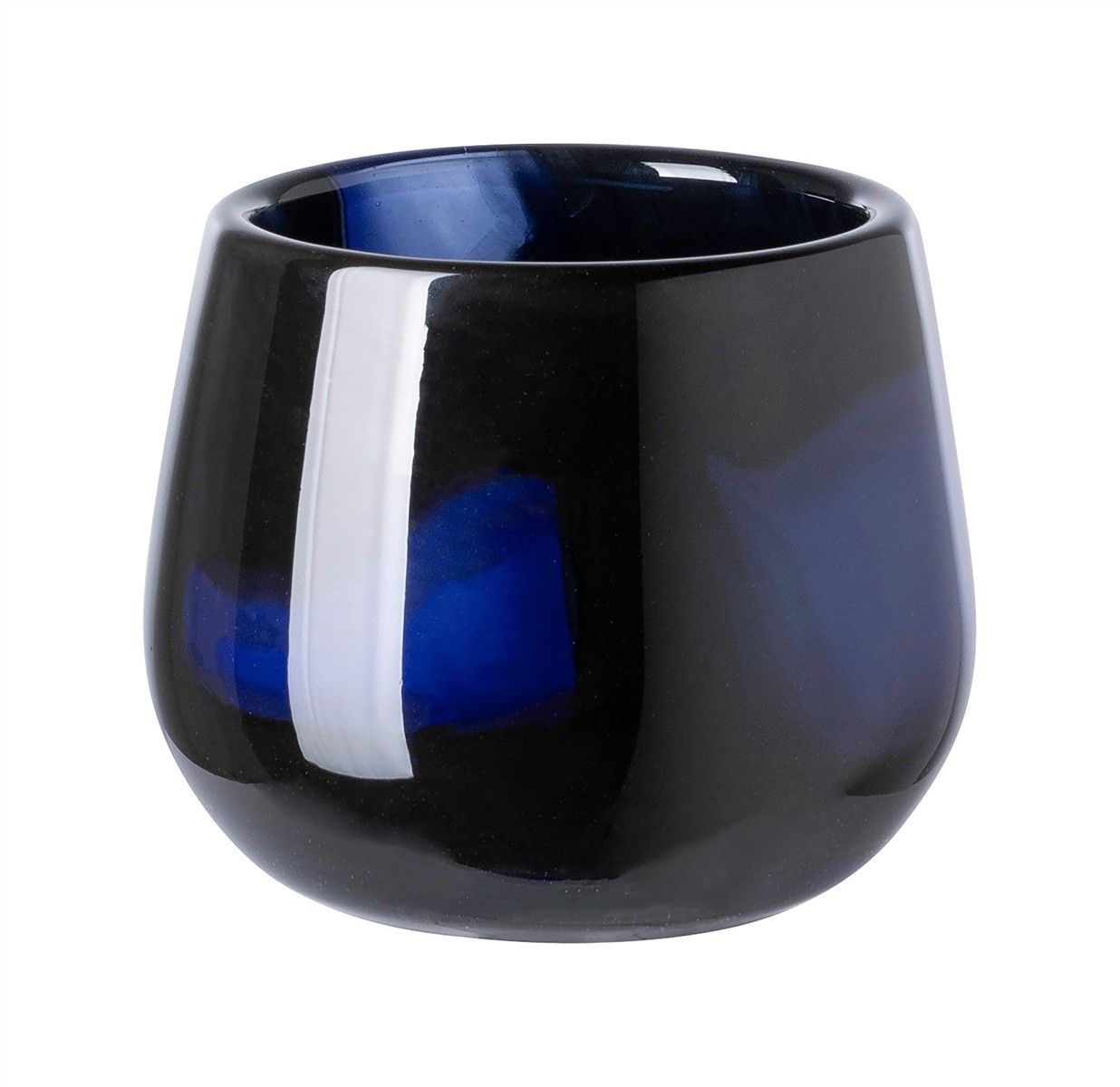 Fink Fink MARLY, Glasvase, Windlicht, Glas, glatt, blau , schwarz, L. 11 cm, B. 11 cm,