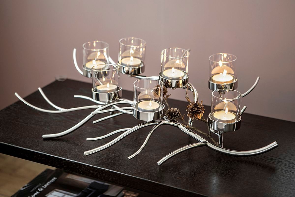 Fink Fink RAMUS, Leuchter, 7-flammig, Aluminium, vernickelt, silberfarben, L. 80 cm,
