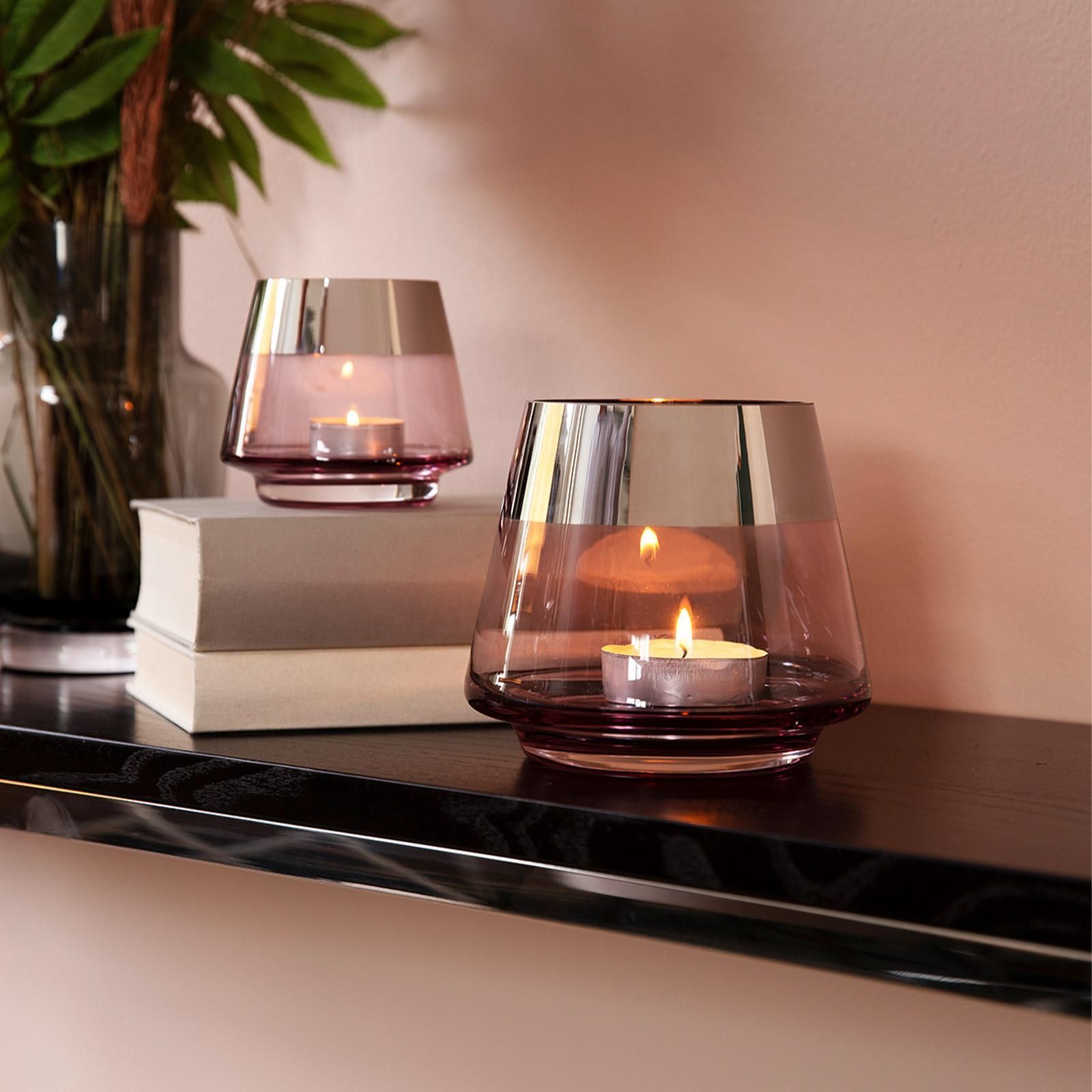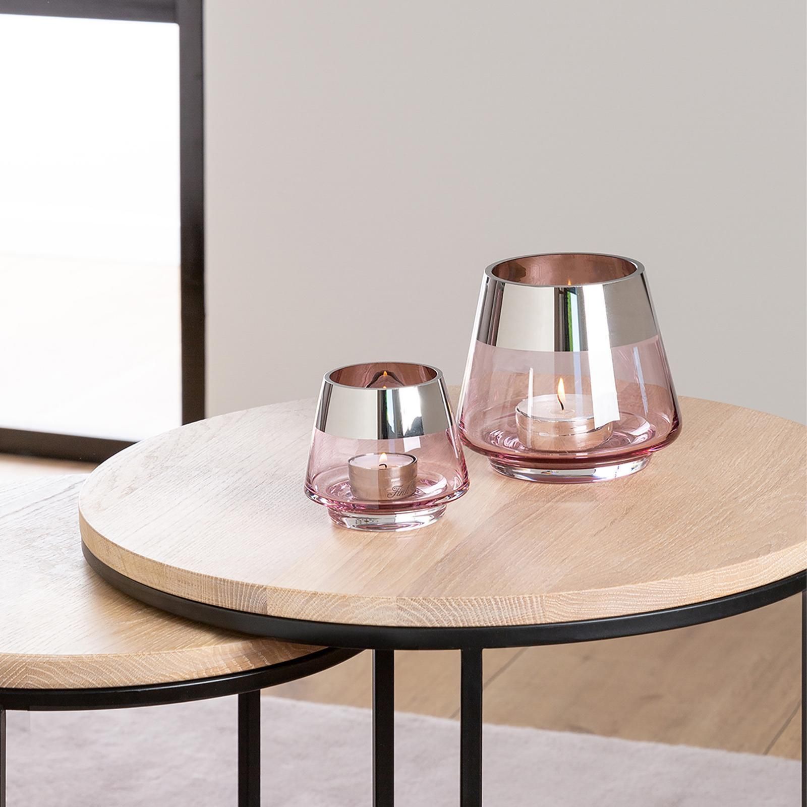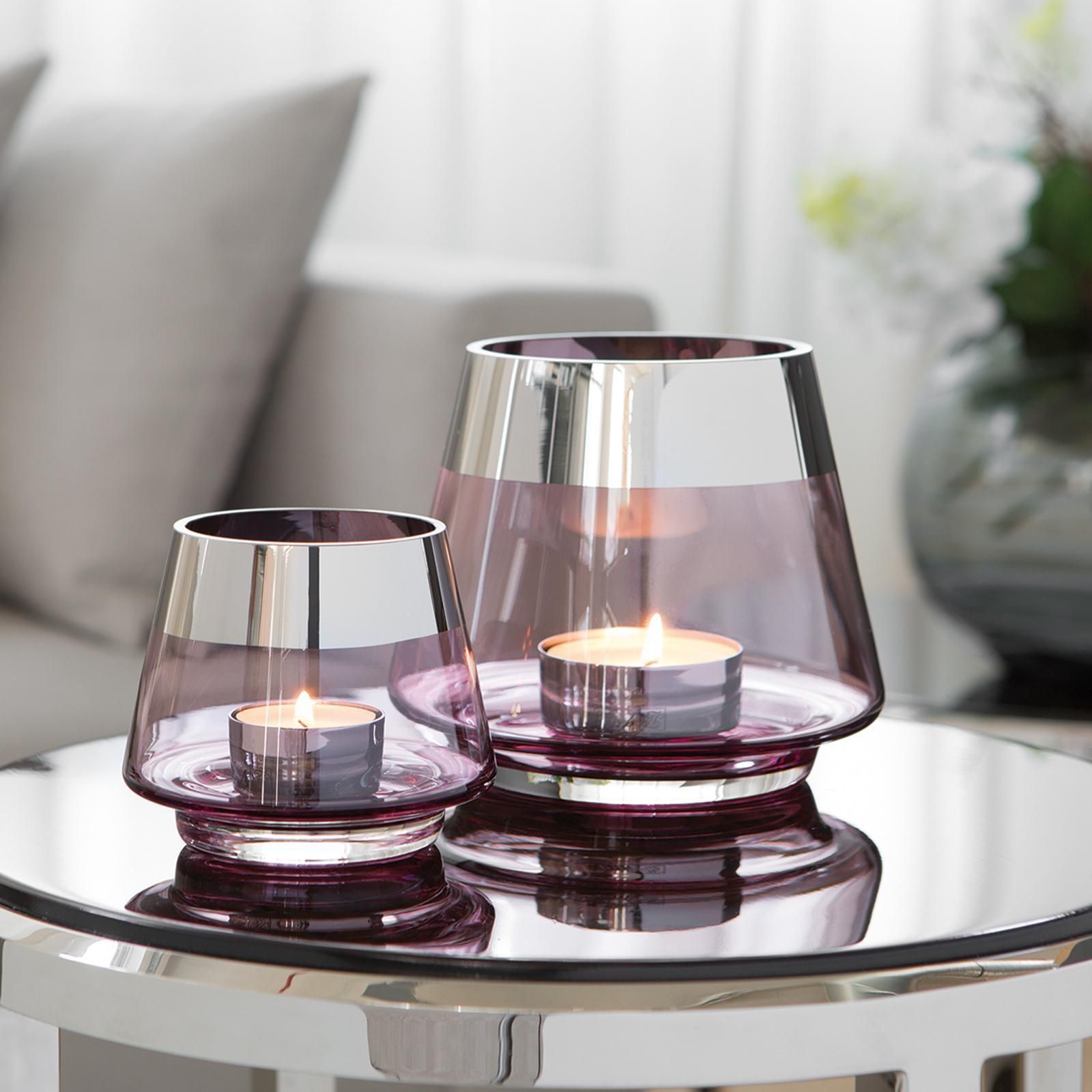 Fink Fink rosa Teelichthalter Ø 15 cm aus Glas großes Windlicht mit silbernem Rand