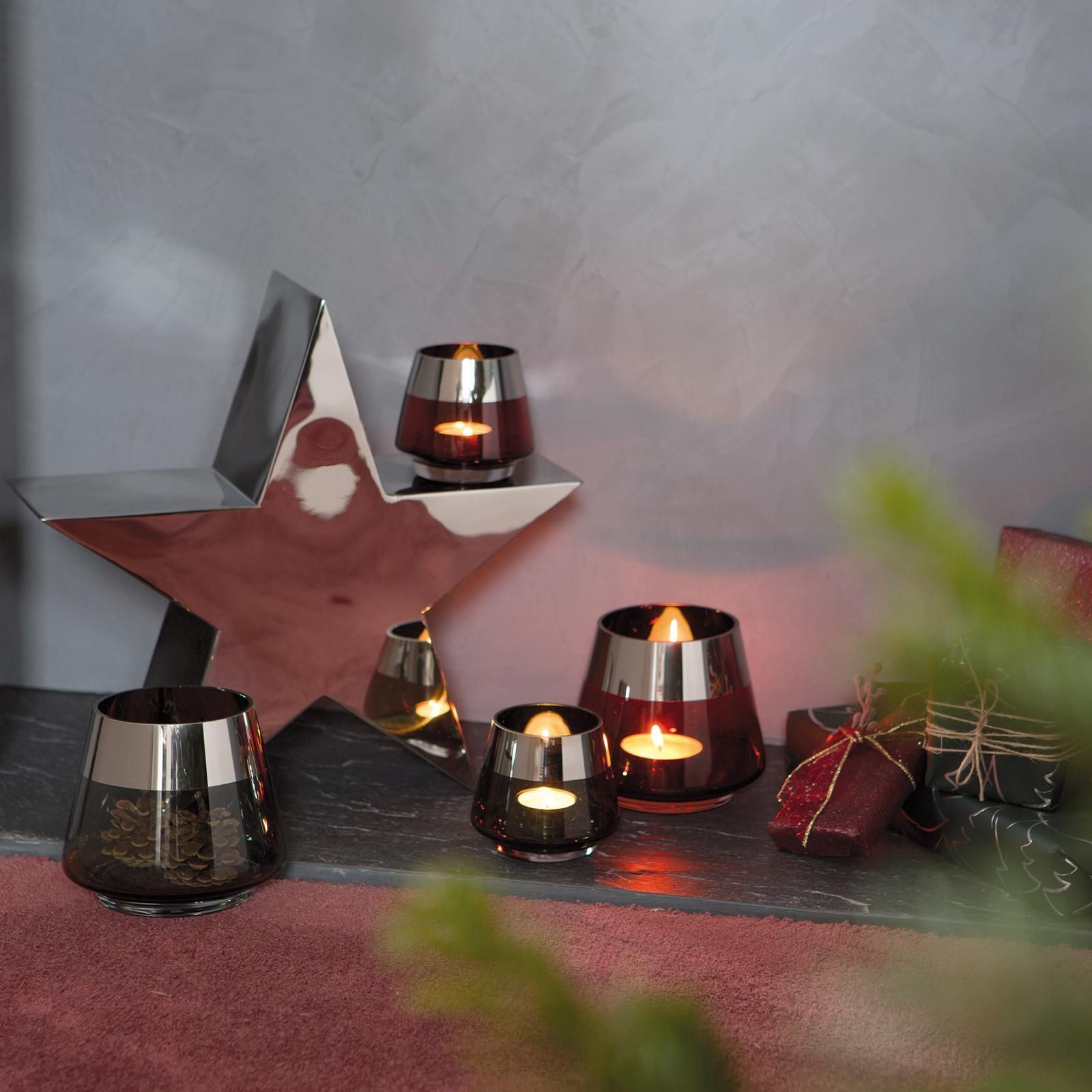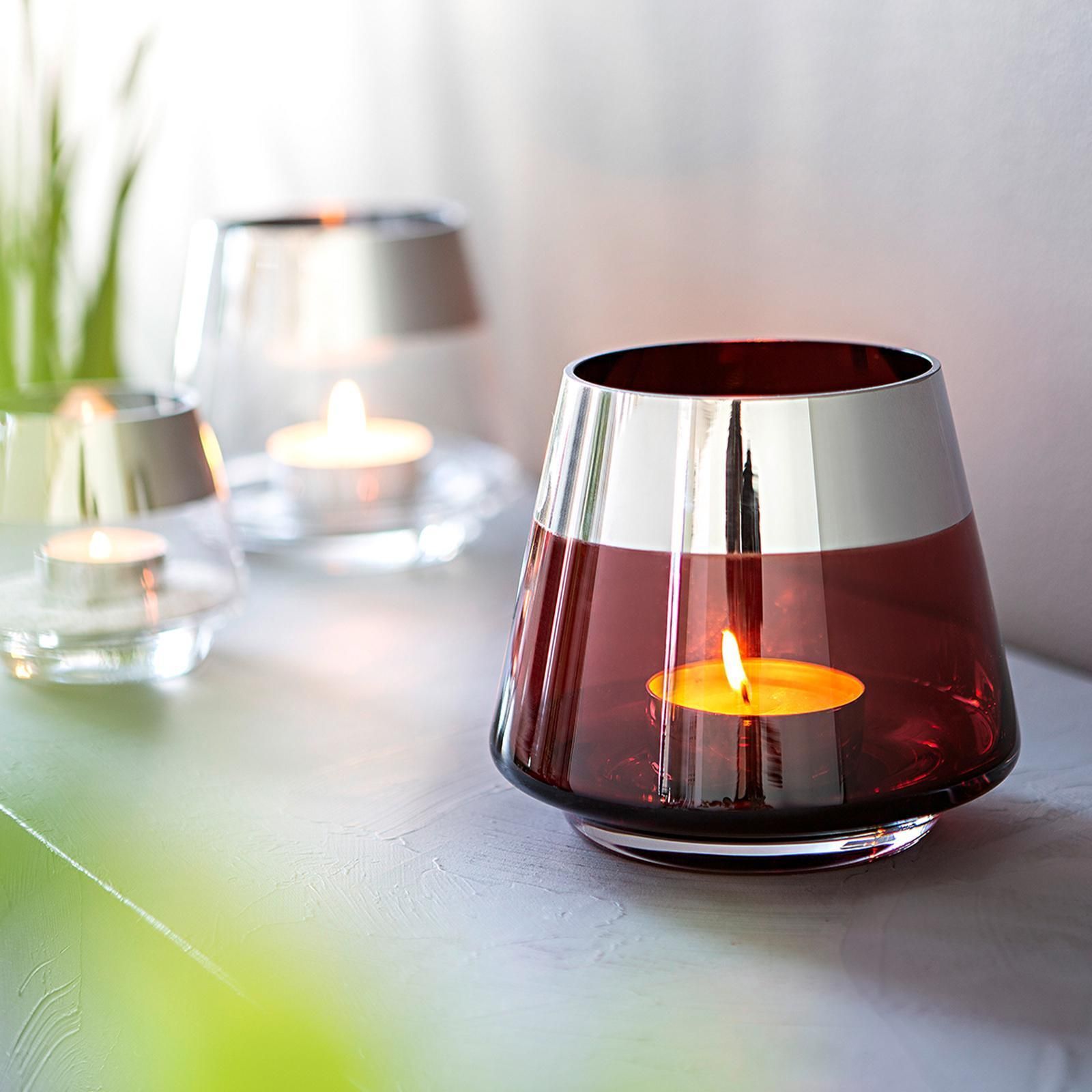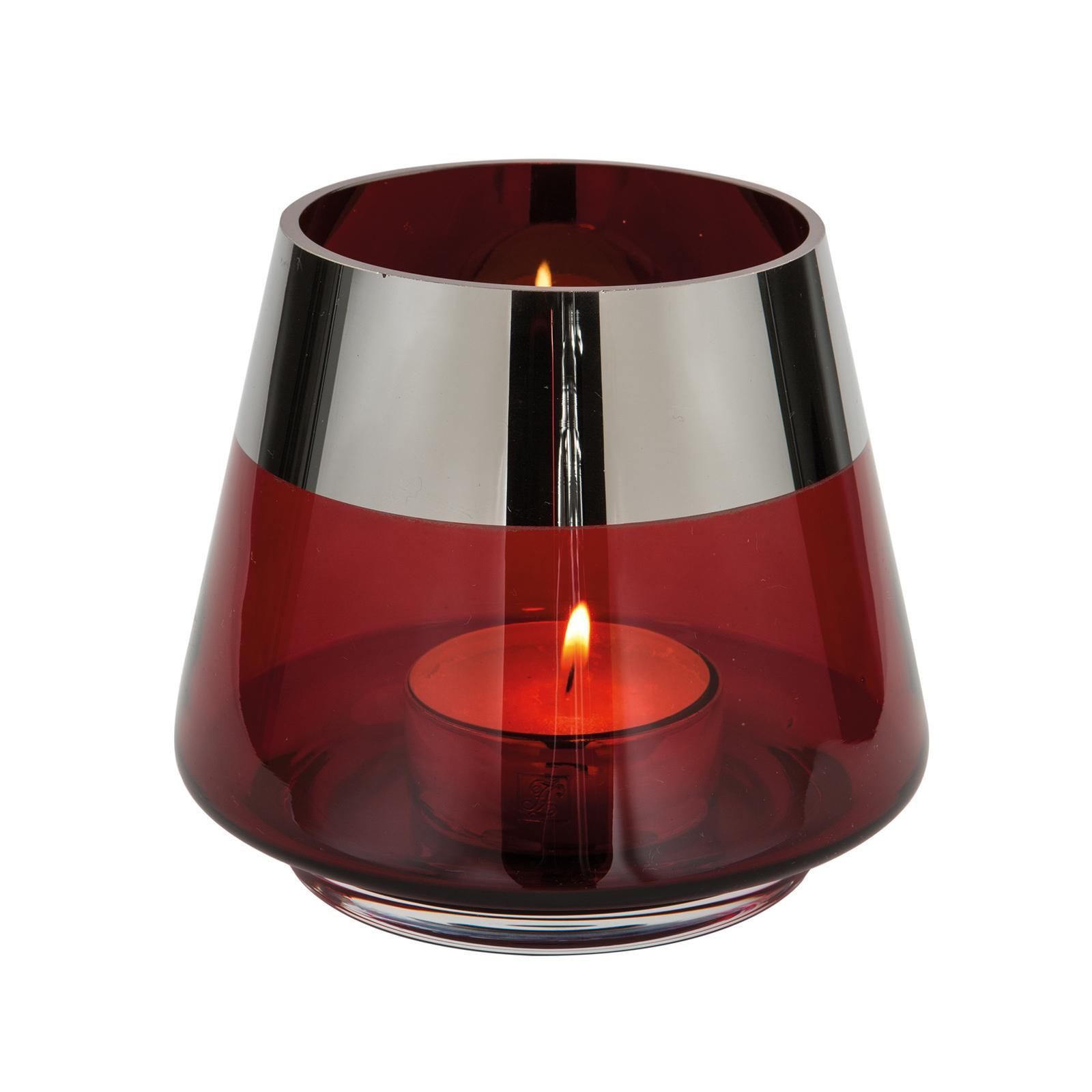 Fink Fink rotes Teelichthalter Ø 15 cm aus Glas großes Windlicht mit silbernem Rand