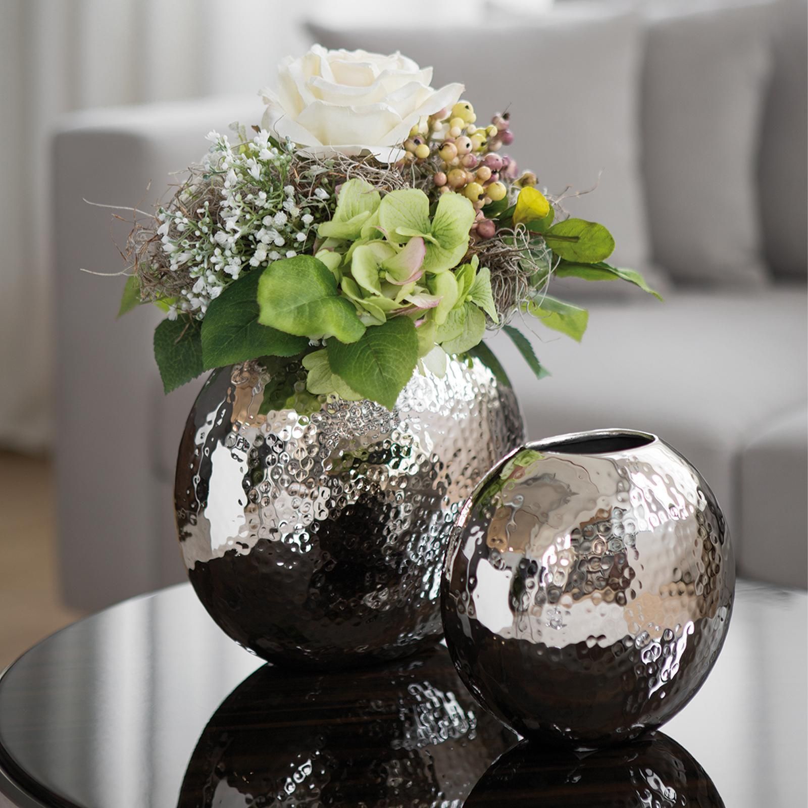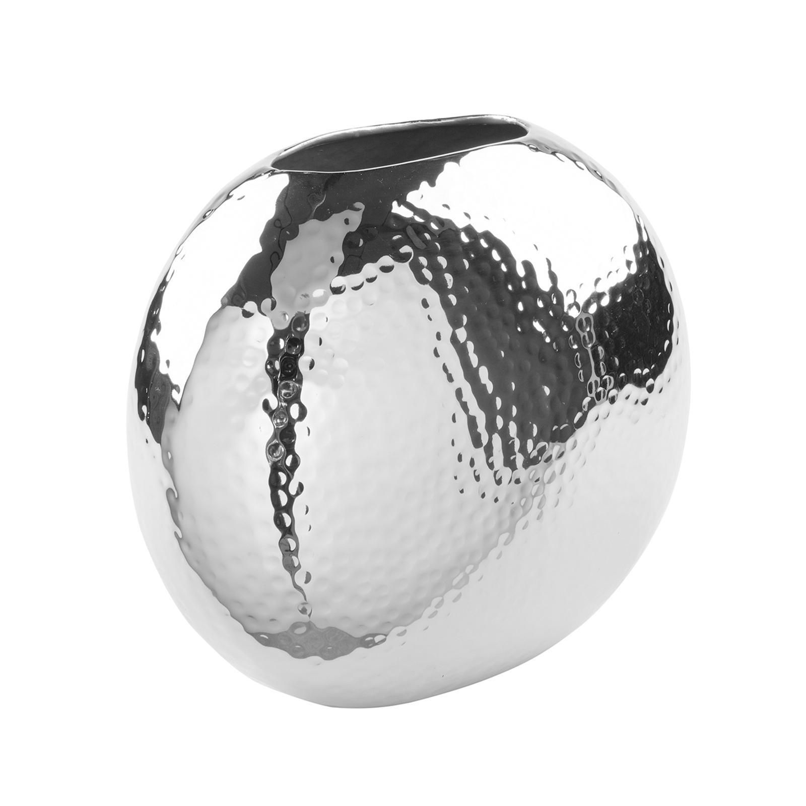 Fink Fink schmale Vase 20 cm Blumengefäß gehämmertes Eisen runde silberne Blumenvase