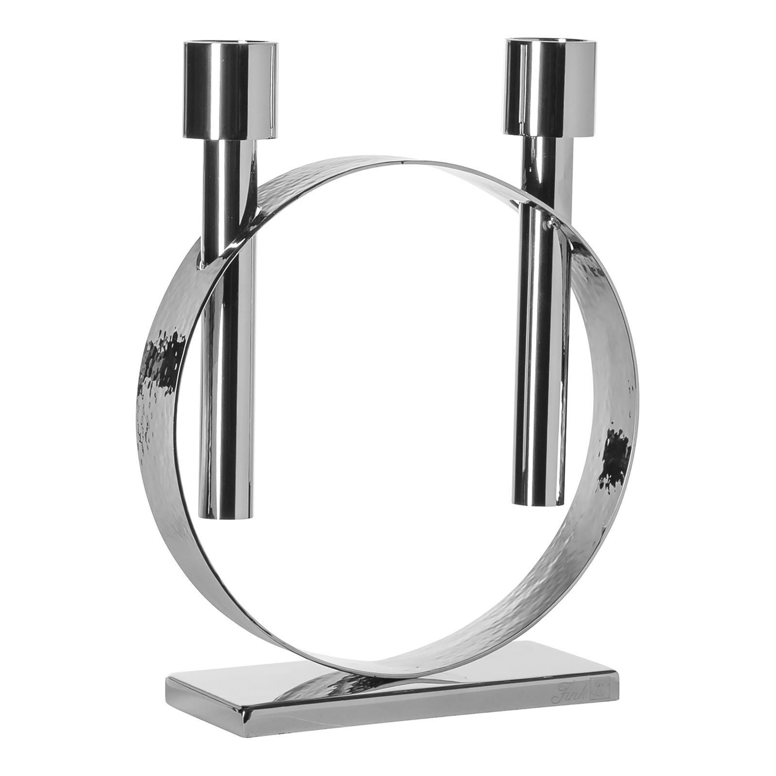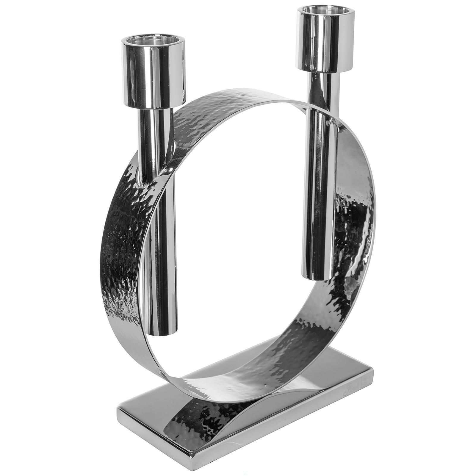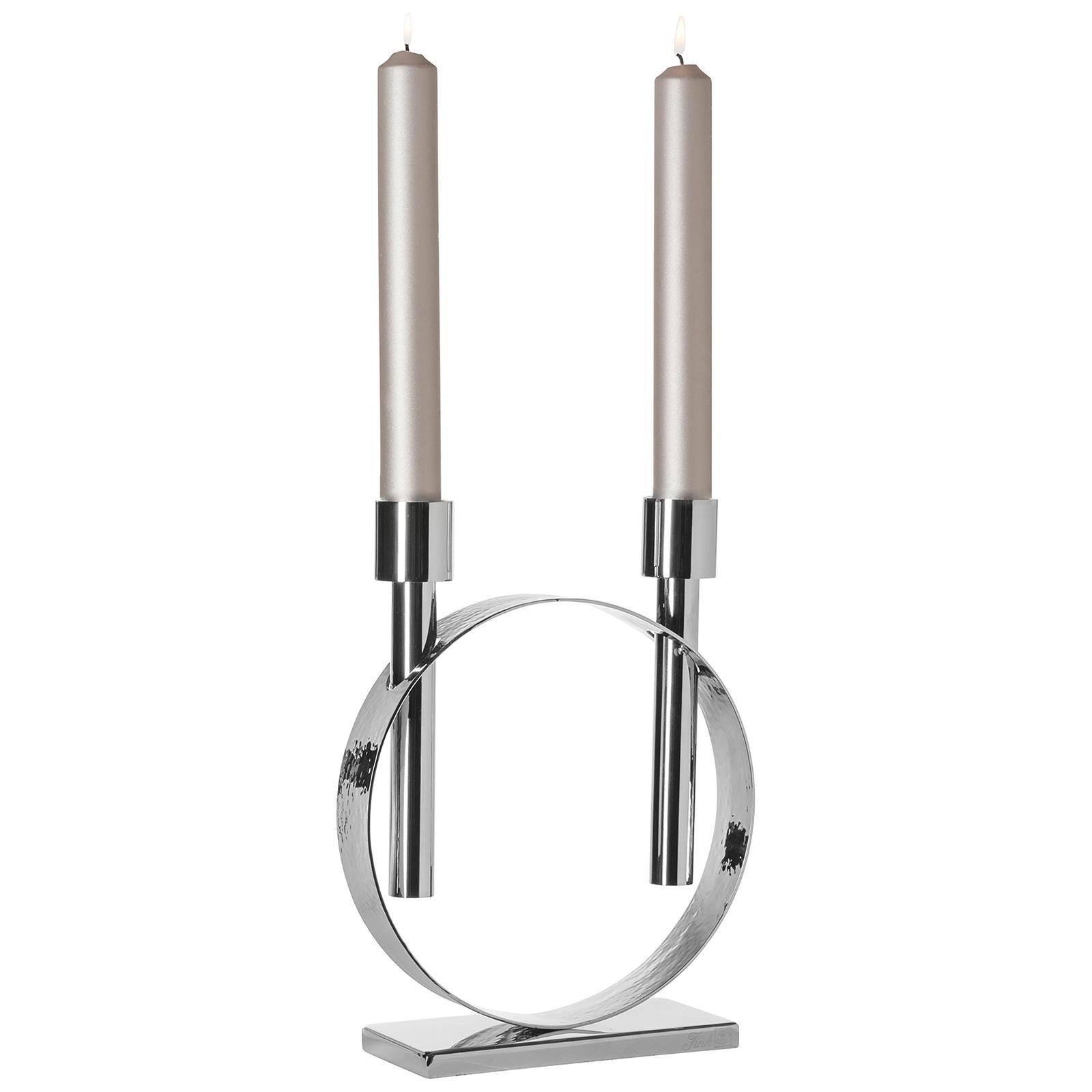 Fink Fink silberner Stabkerzen-Leuchter 27cm 2-flammig Edelstahl gehämmert vernickelt