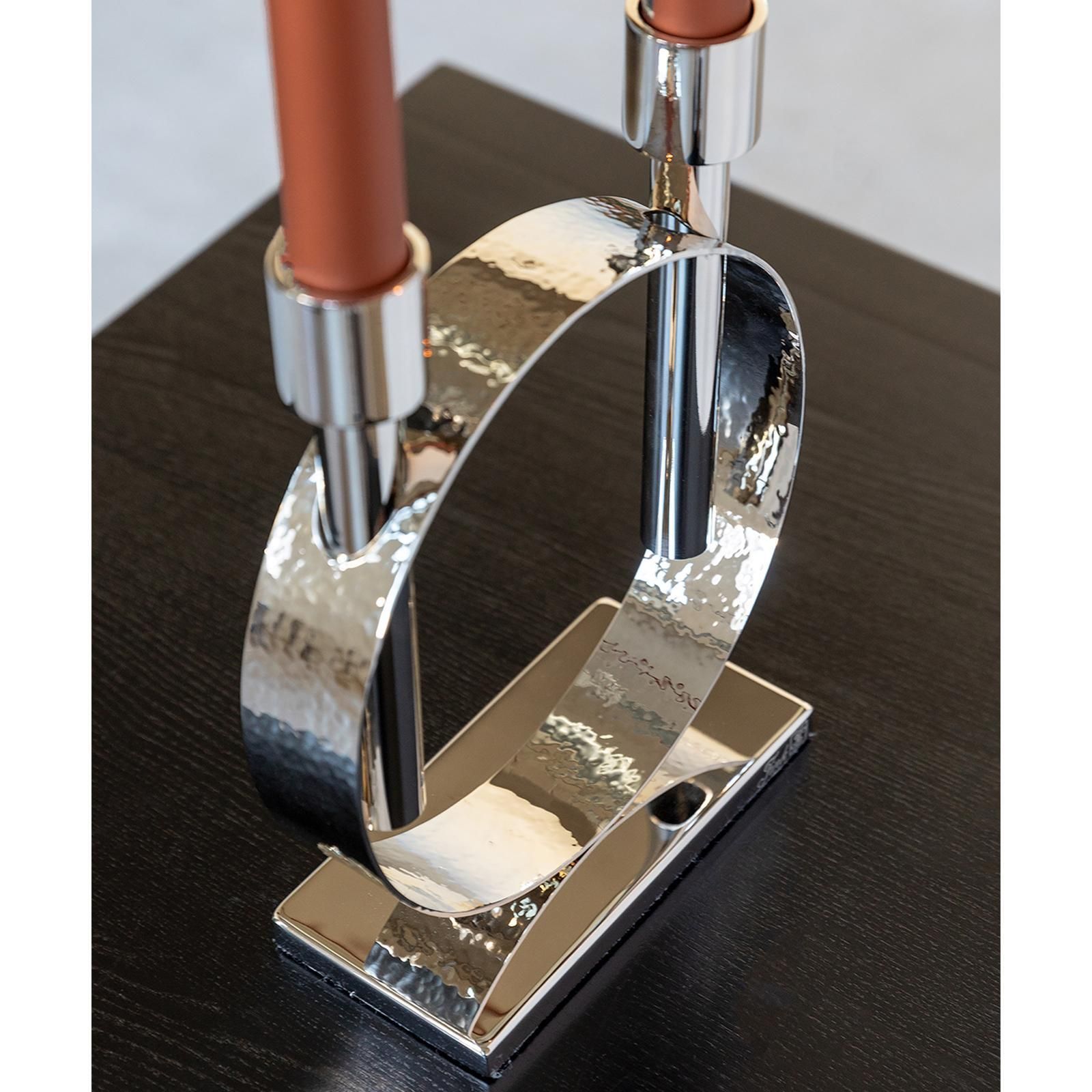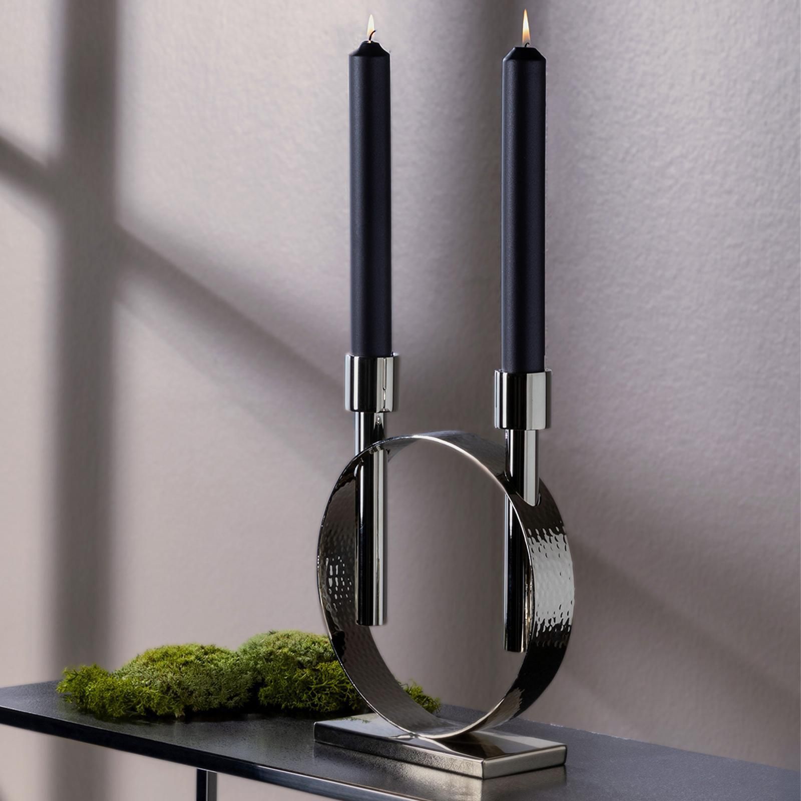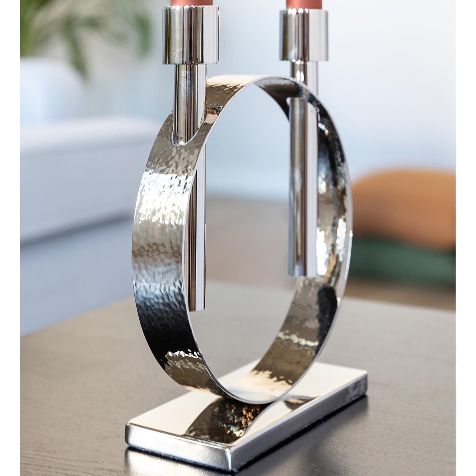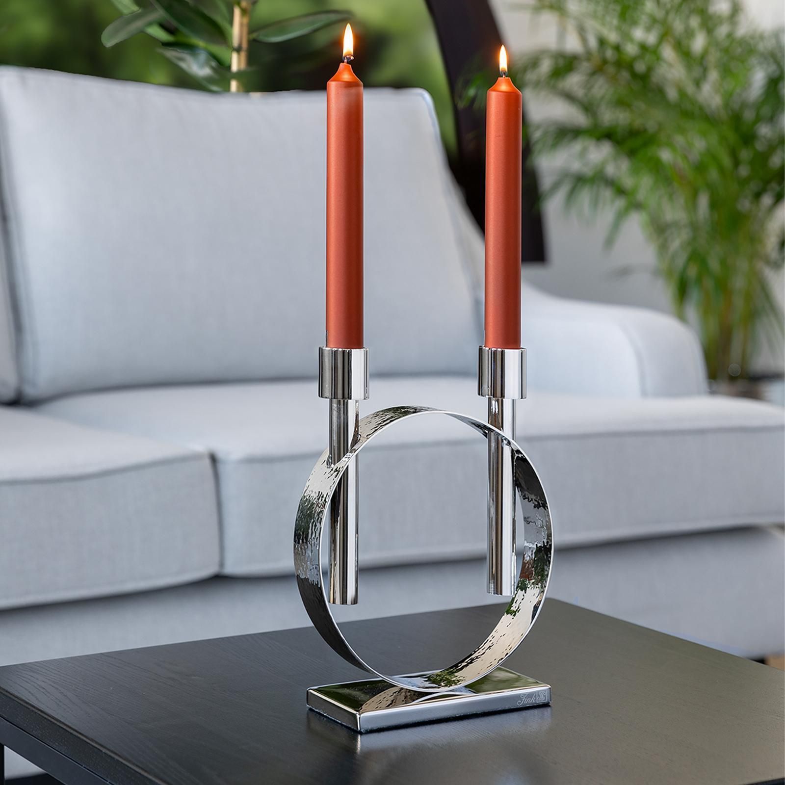 Fink Fink silberner Stabkerzen-Leuchter 27cm 2-flammig Edelstahl gehämmert vernickelt