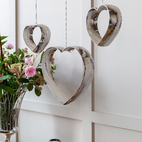 Fink Fink silbernes Deko Herz 28 cm aus gehämmerten Edelstahl zum Aufhängen