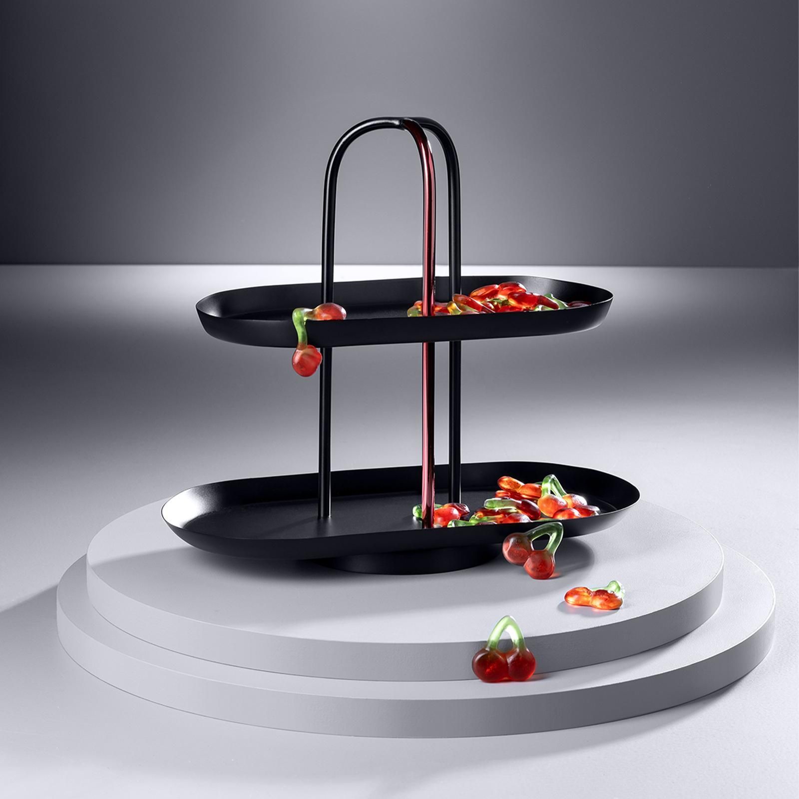 Fink Studio 2-stöckige Etagere 27 cm oval schwarzes Stufentablett mit Tragegriff