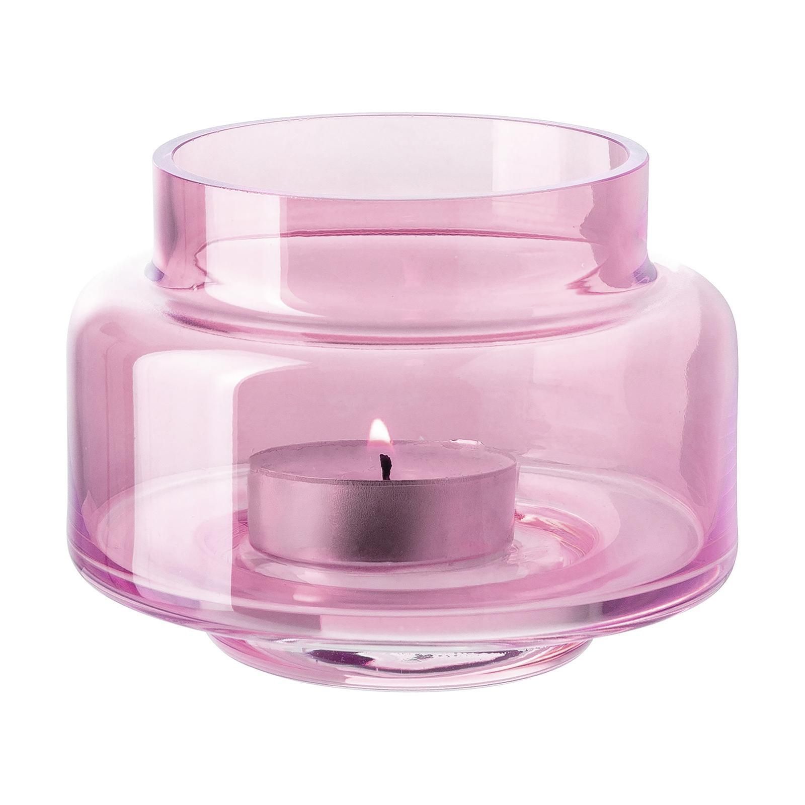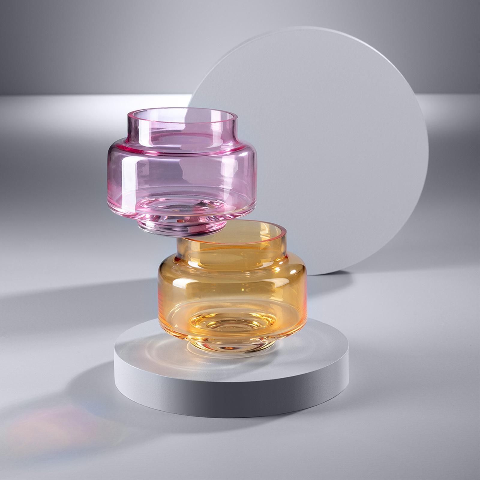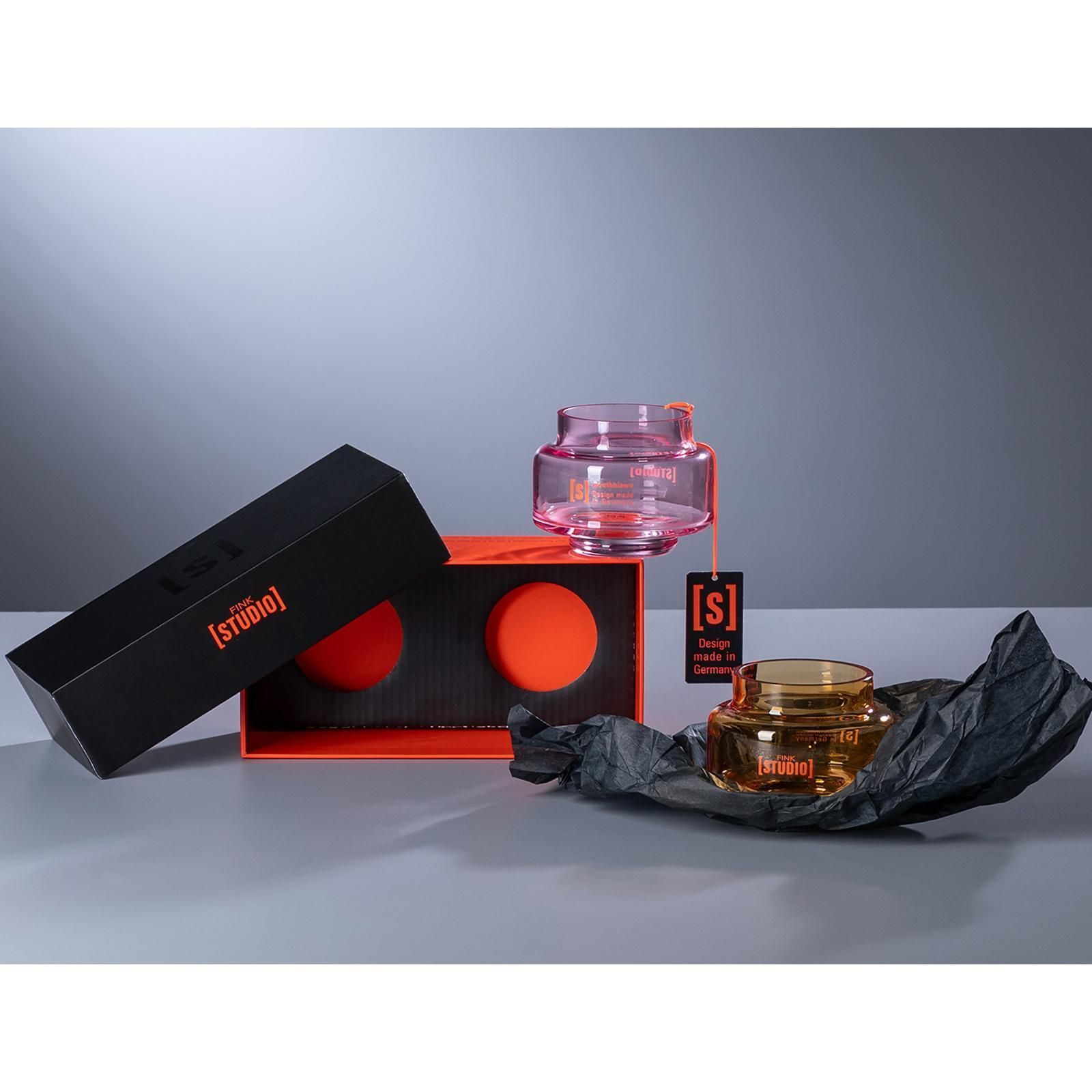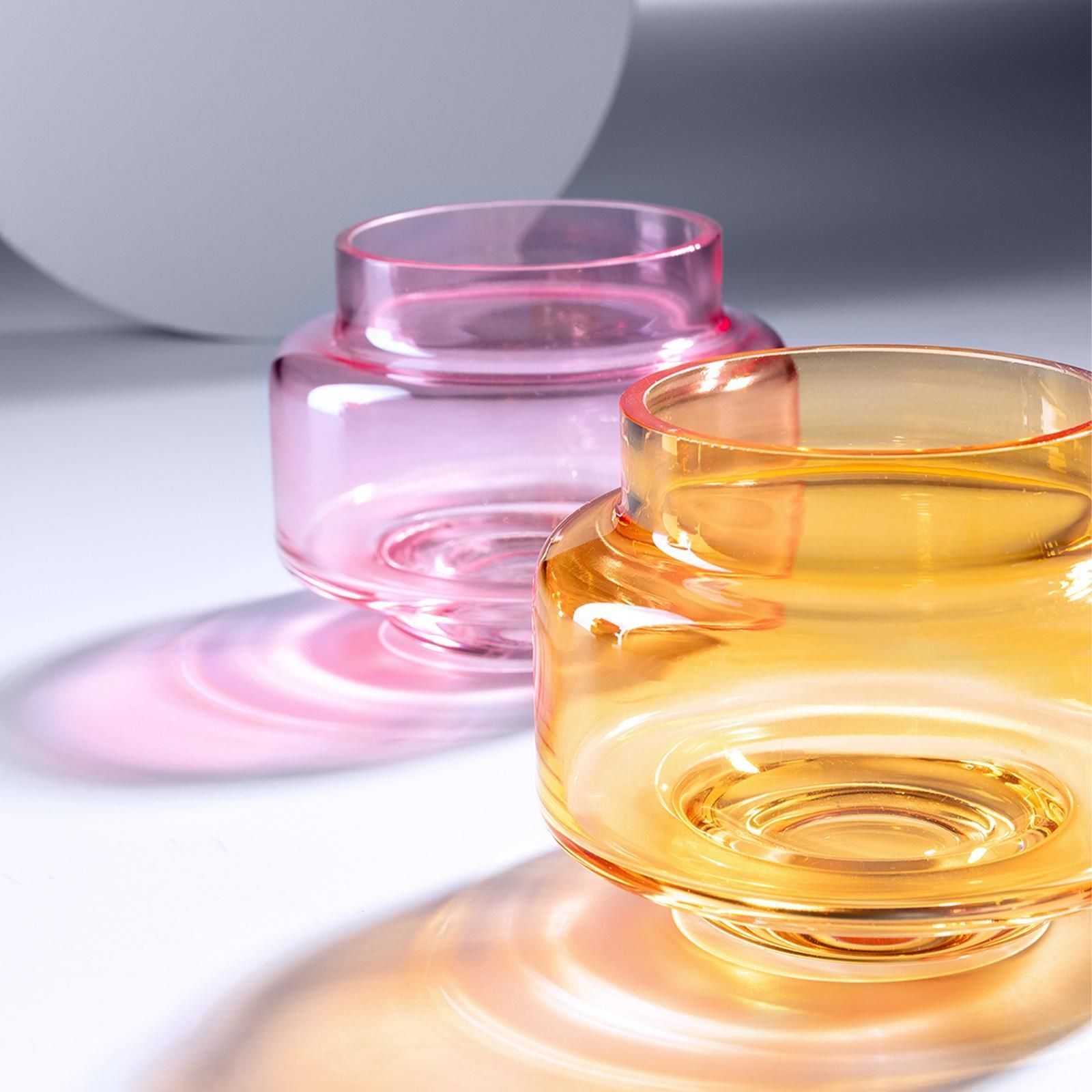 Fink Studio 2-tlg Teelichthalter Set Ø 10cm Windlicht Glas orange-rose stapelbar