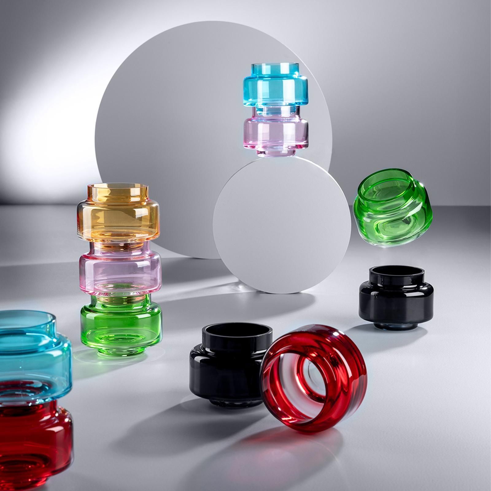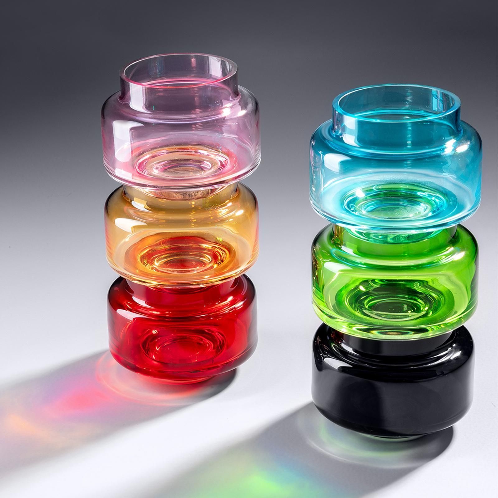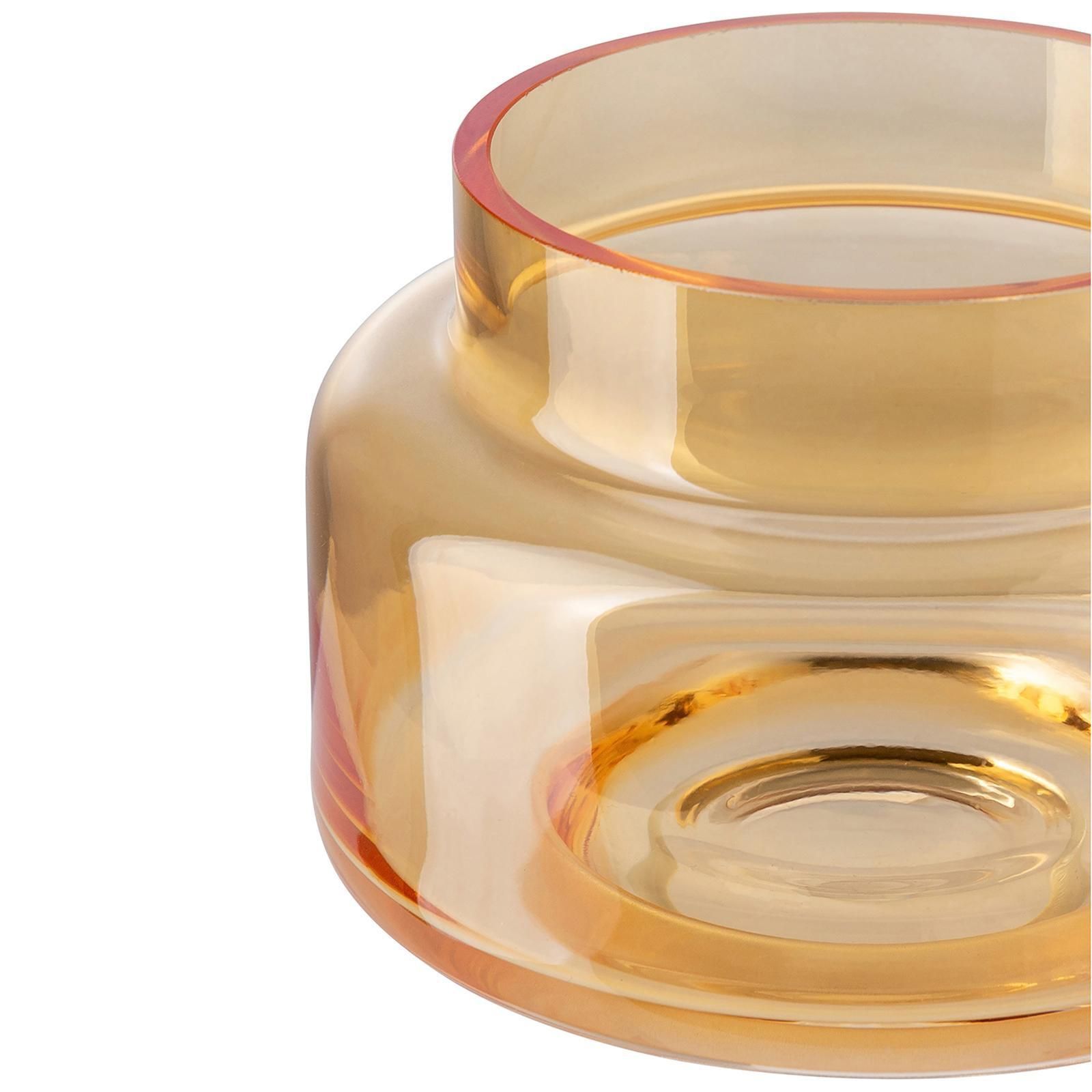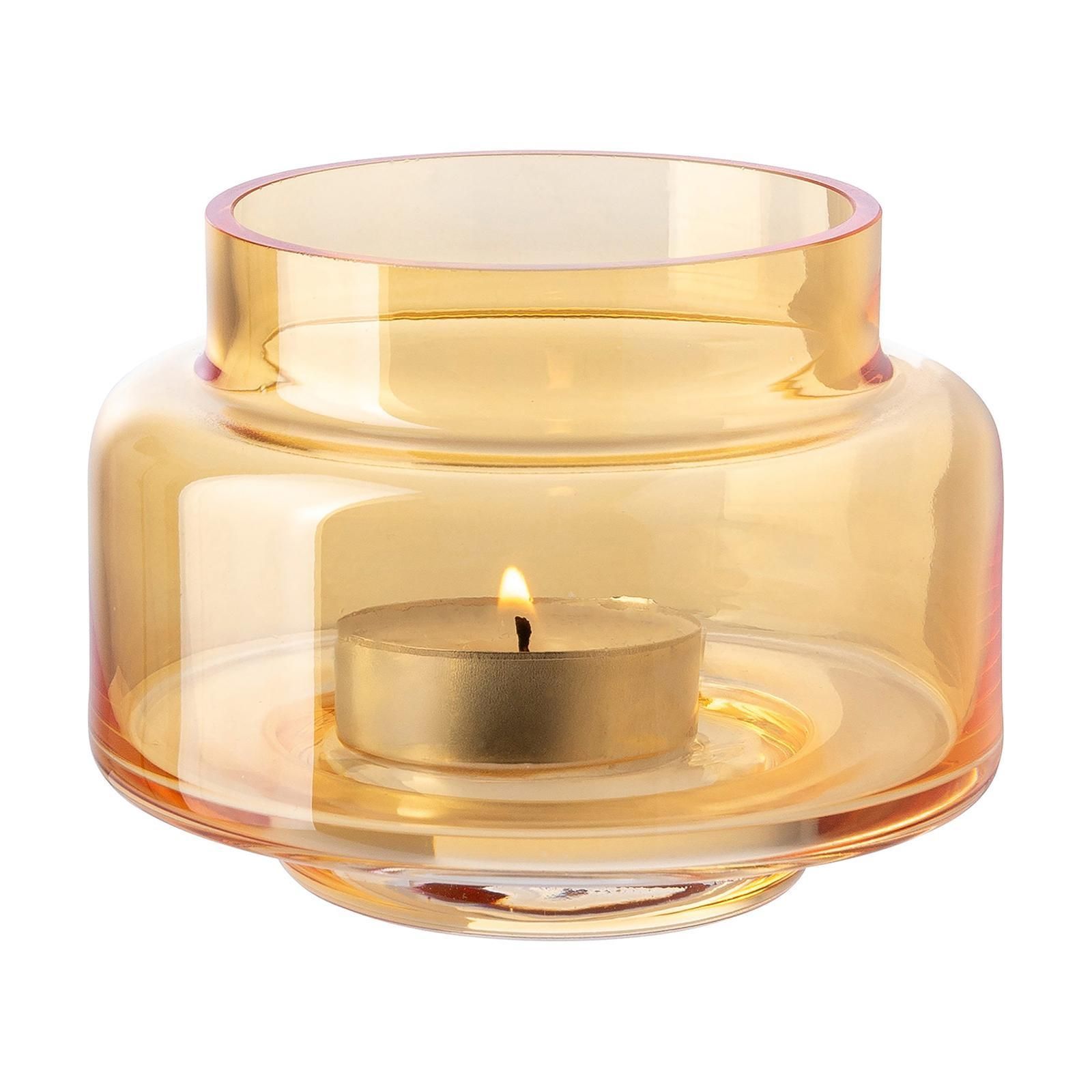 Fink Studio 2-tlg Teelichthalter Set Ø 10cm Windlicht Glas orange-rose stapelbar