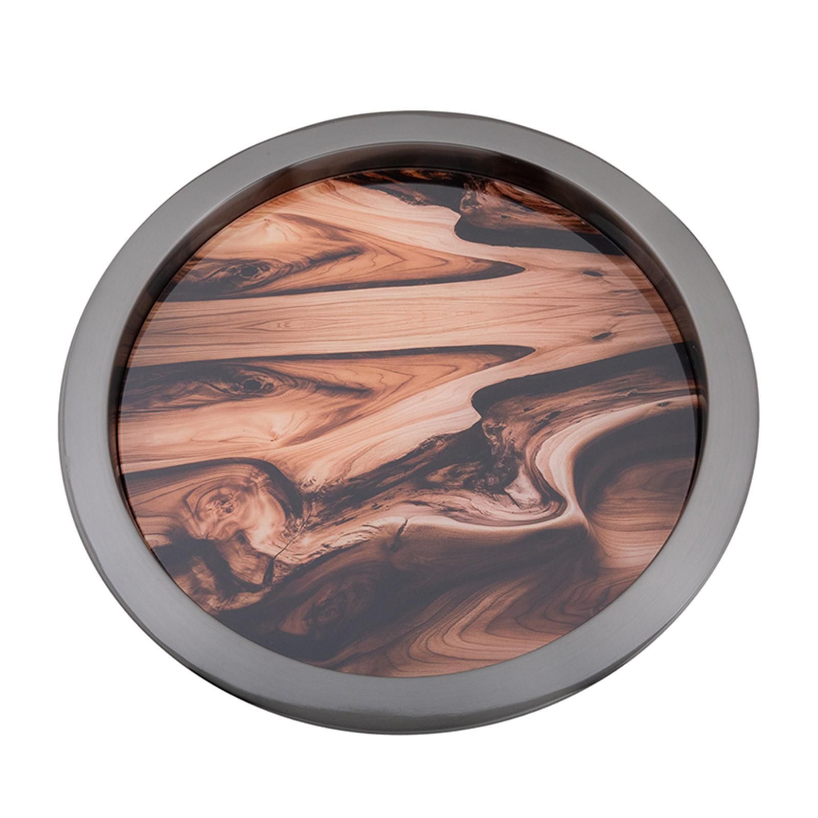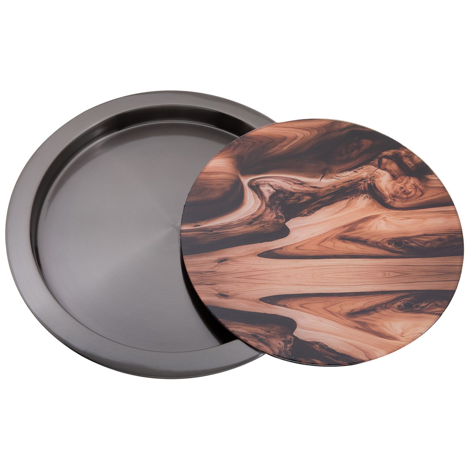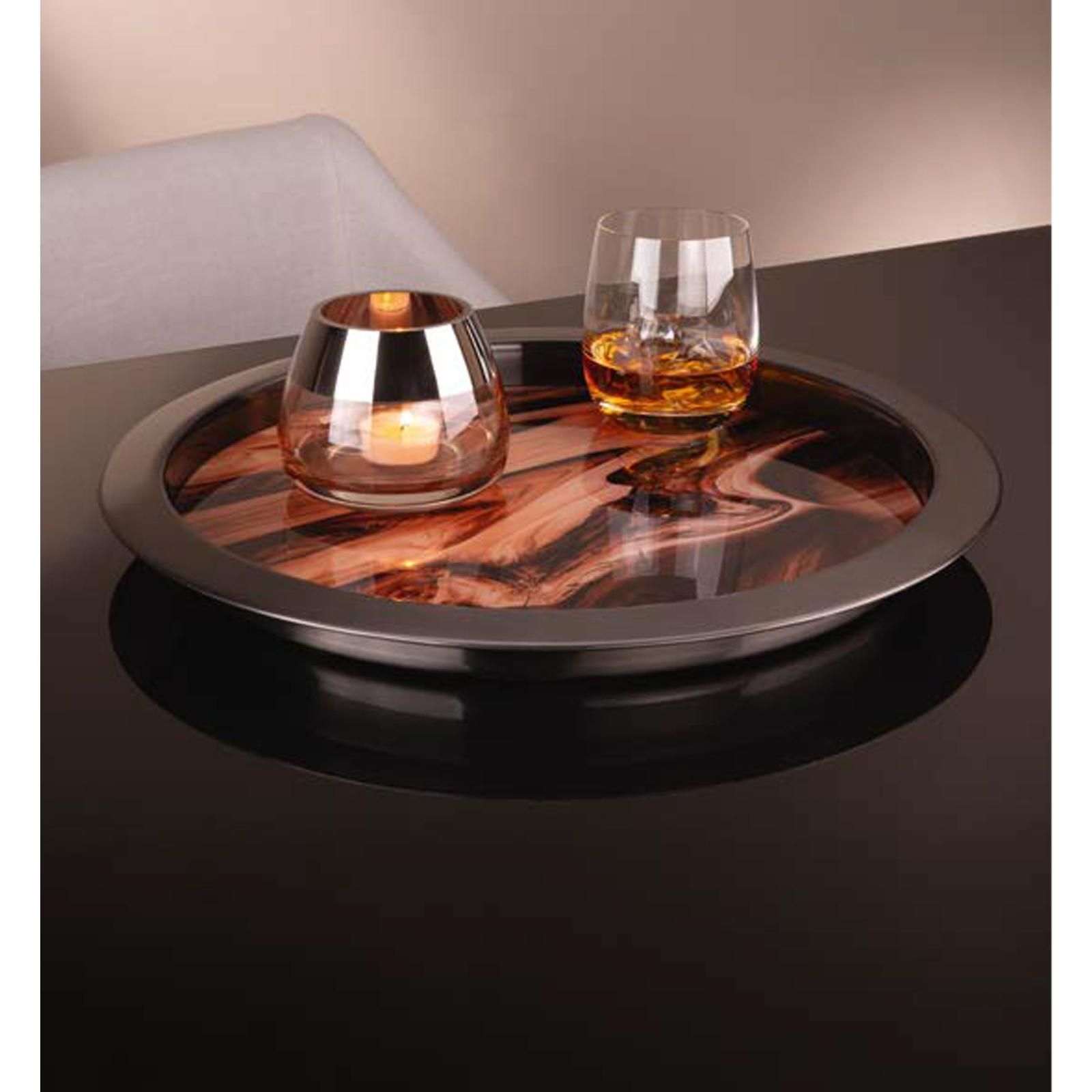 Fink Fink Tablett mit Glaseinlage Ø 40.5 cm braun-schwarzes Deko Glas-Serviertablett