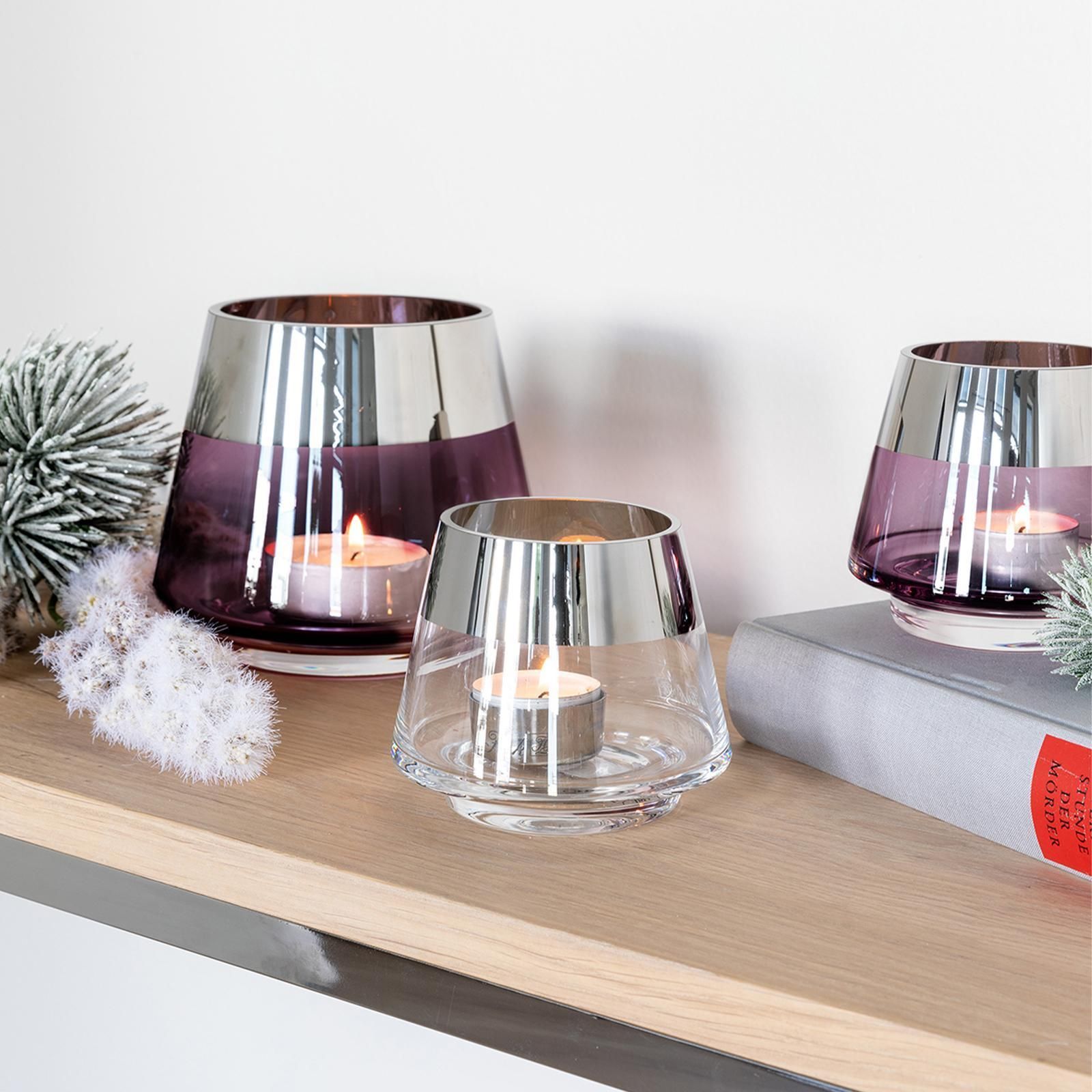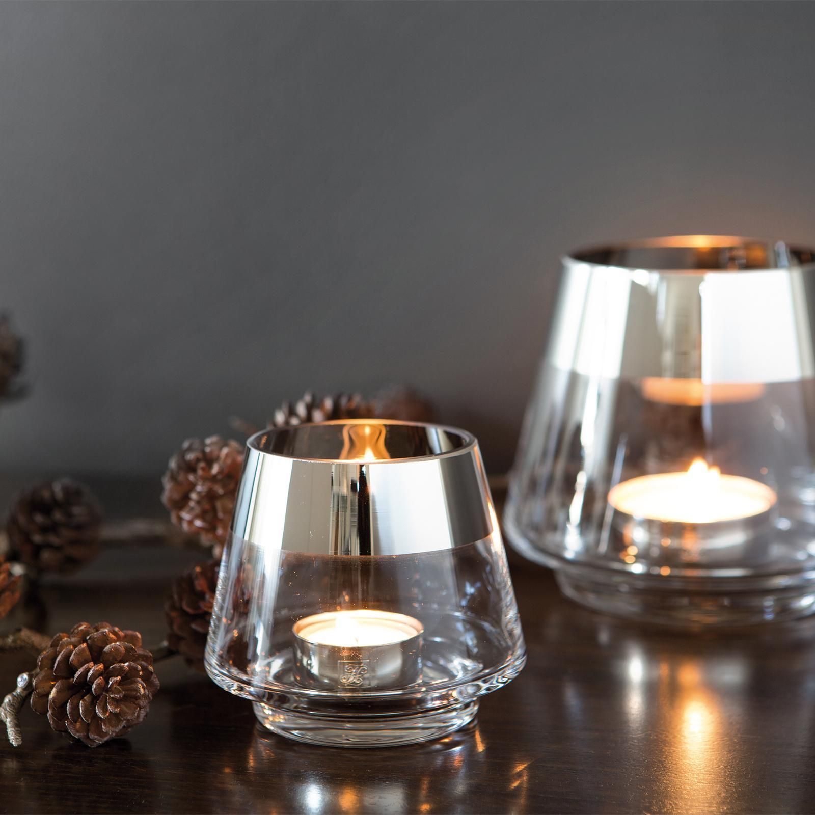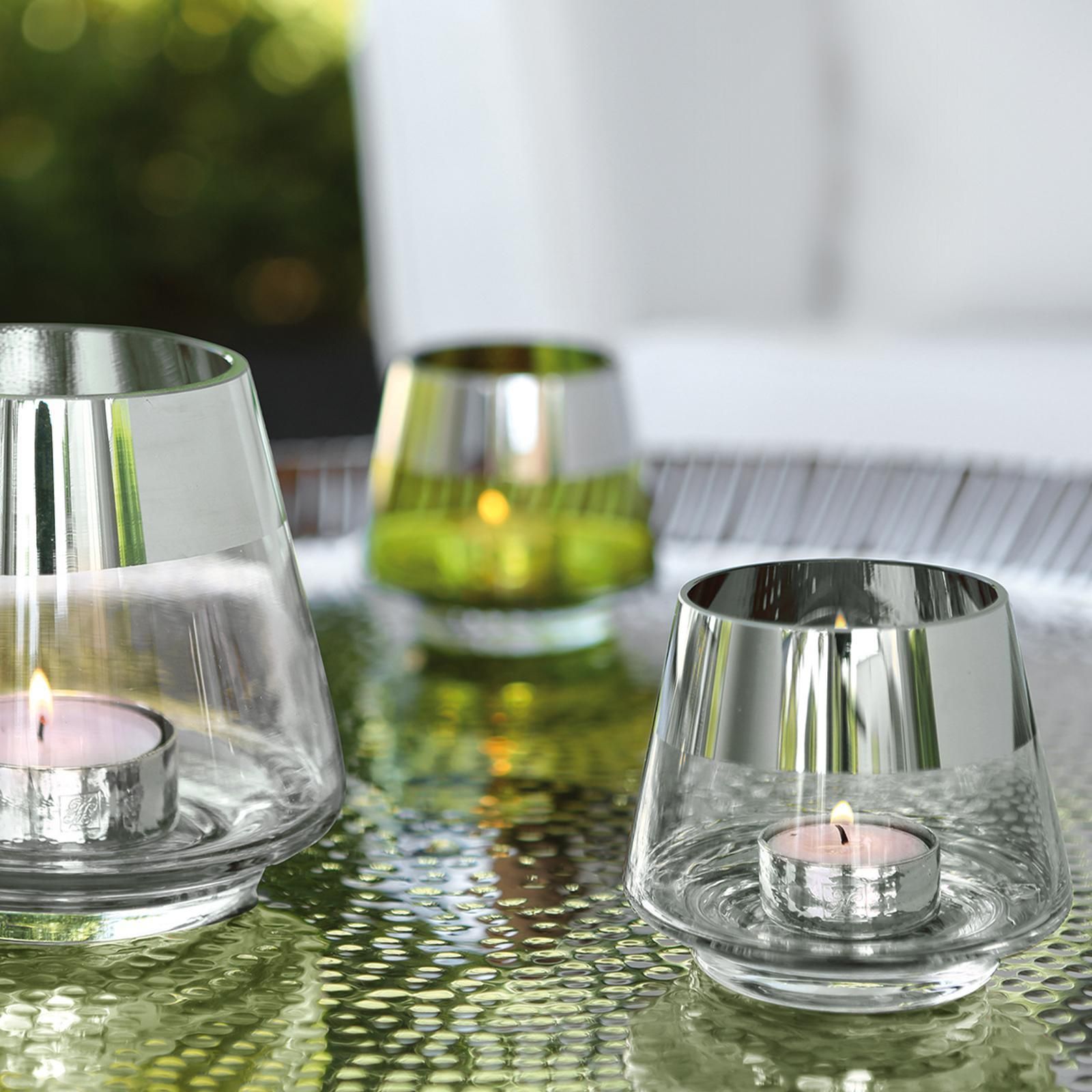 Fink Fink Teelichthalter Ø 11 cm aus Glas transparentes Windlicht mit silbernem Rand