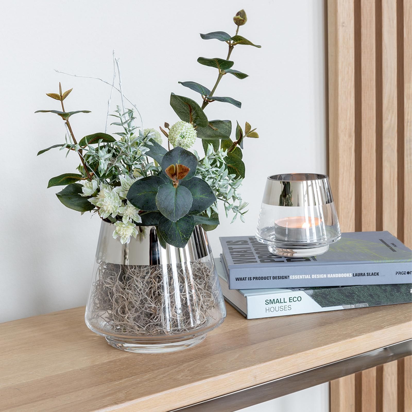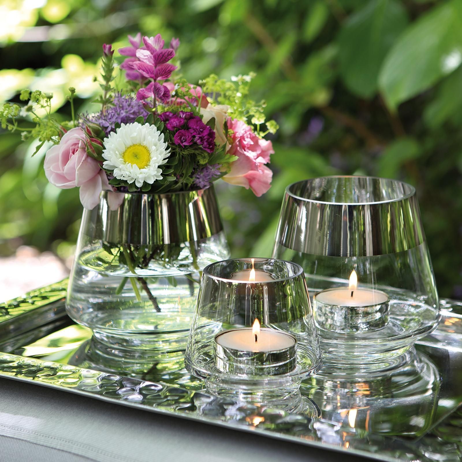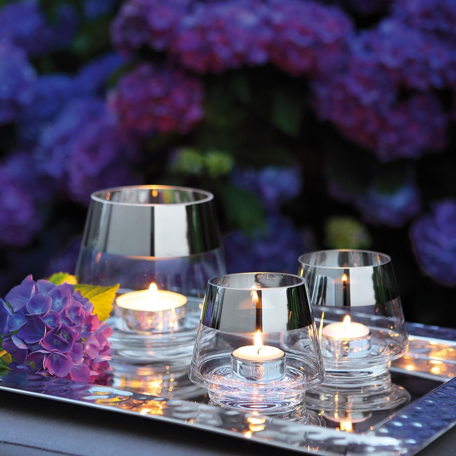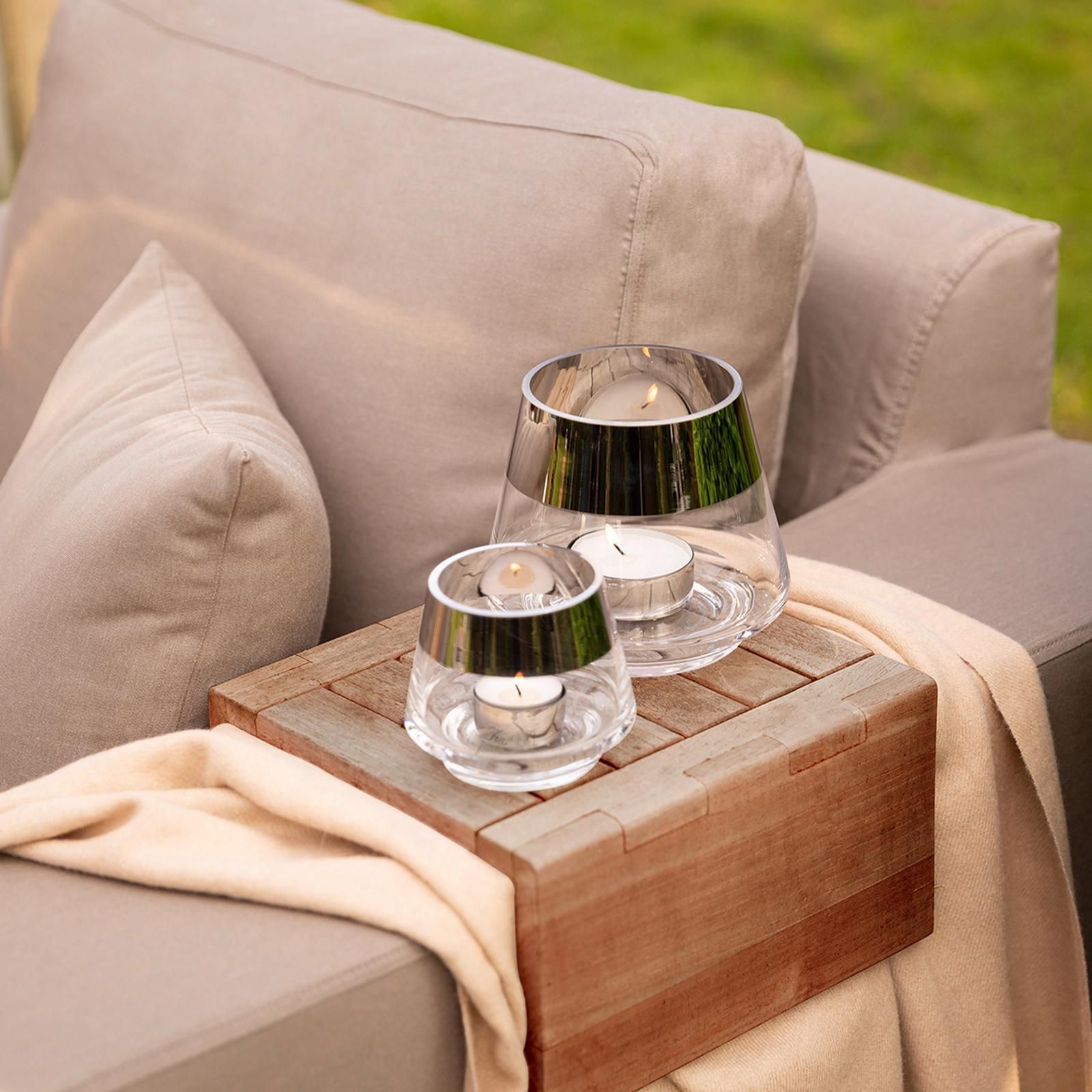 Fink Fink Teelichthalter Ø 11 cm aus Glas transparentes Windlicht mit silbernem Rand