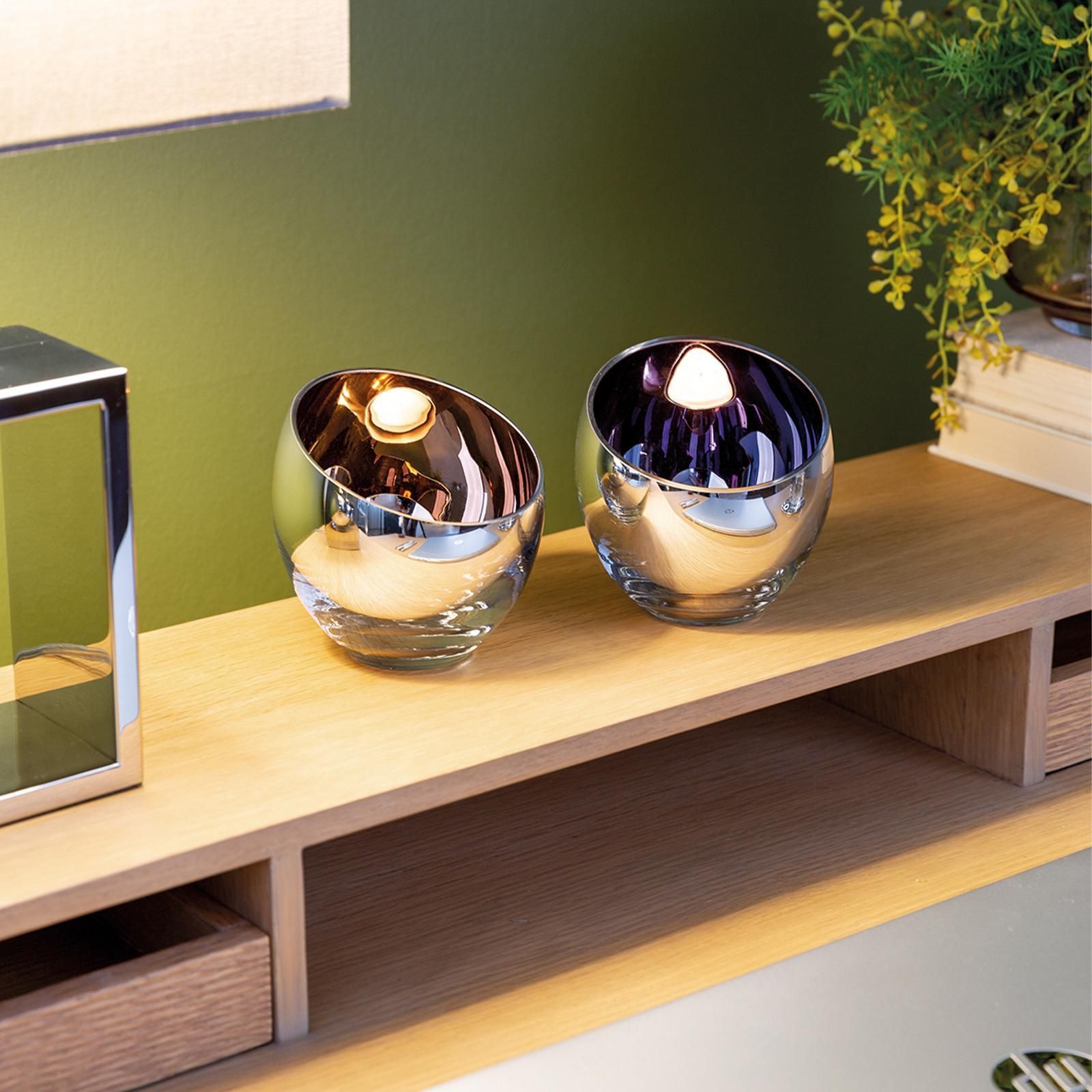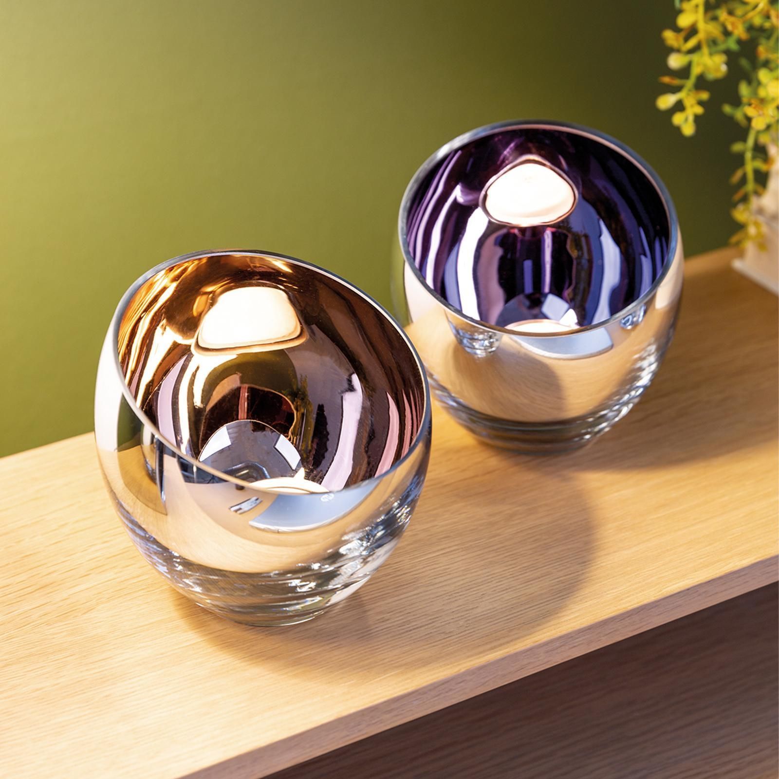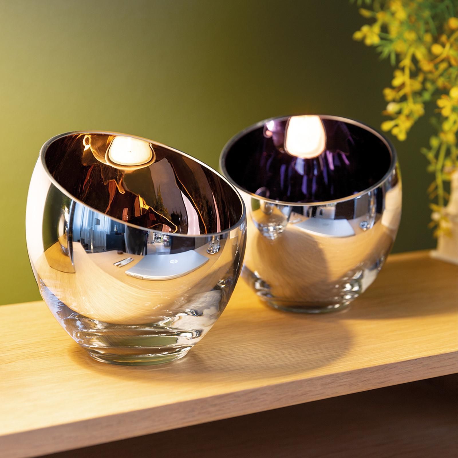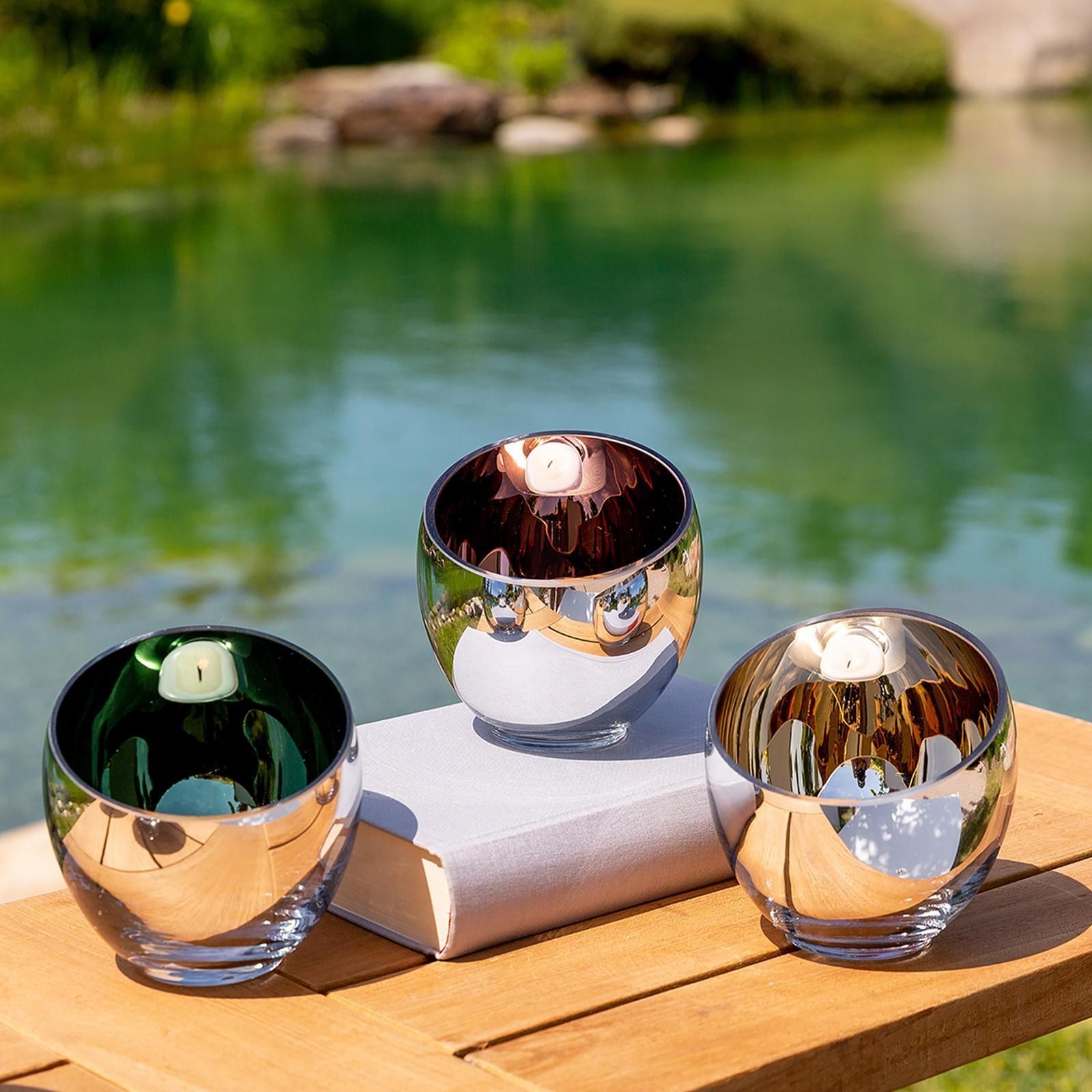 Fink Fink Teelichthalter Ø 11 cm braun Glas Windlicht Kerzenhalter kugelige Vasenform