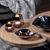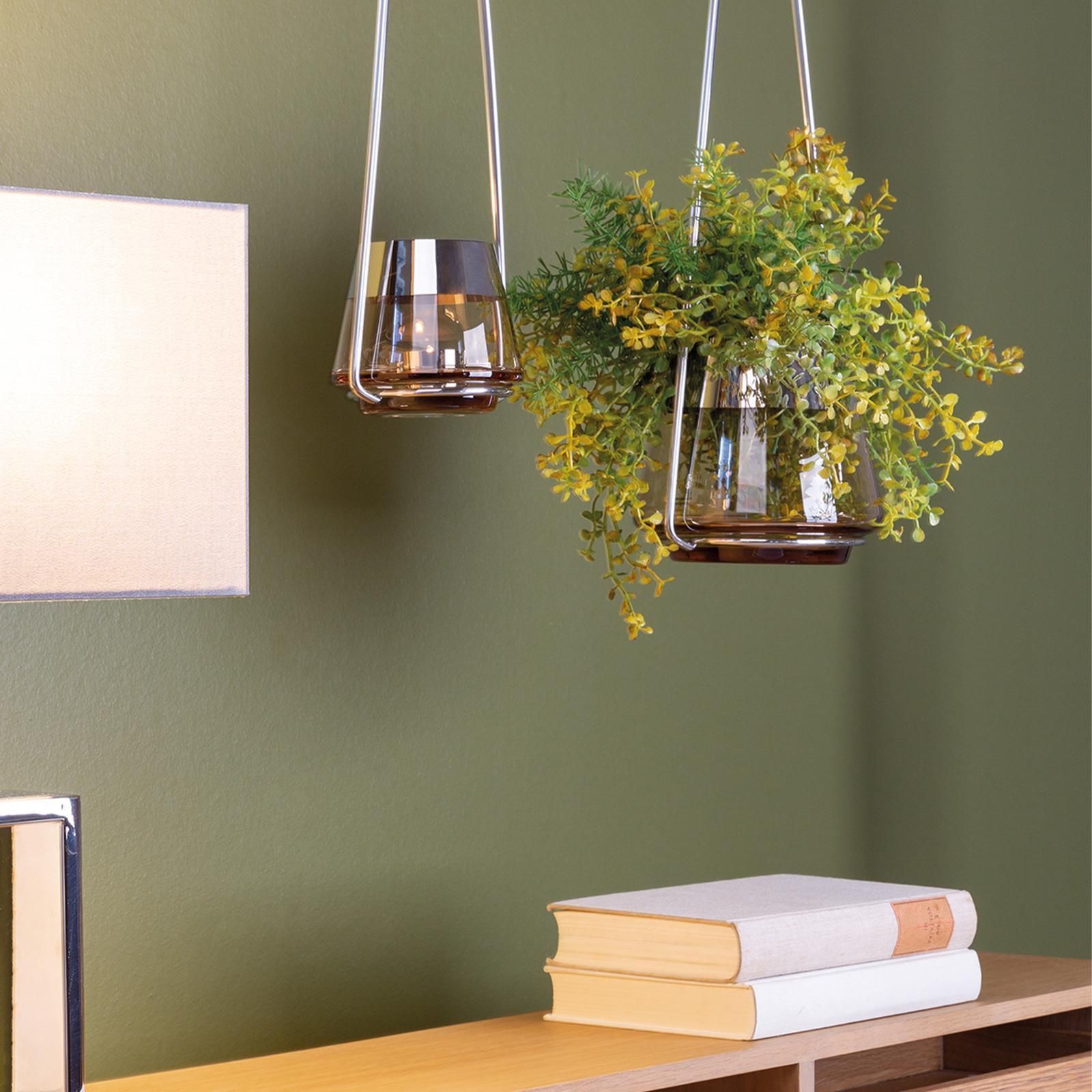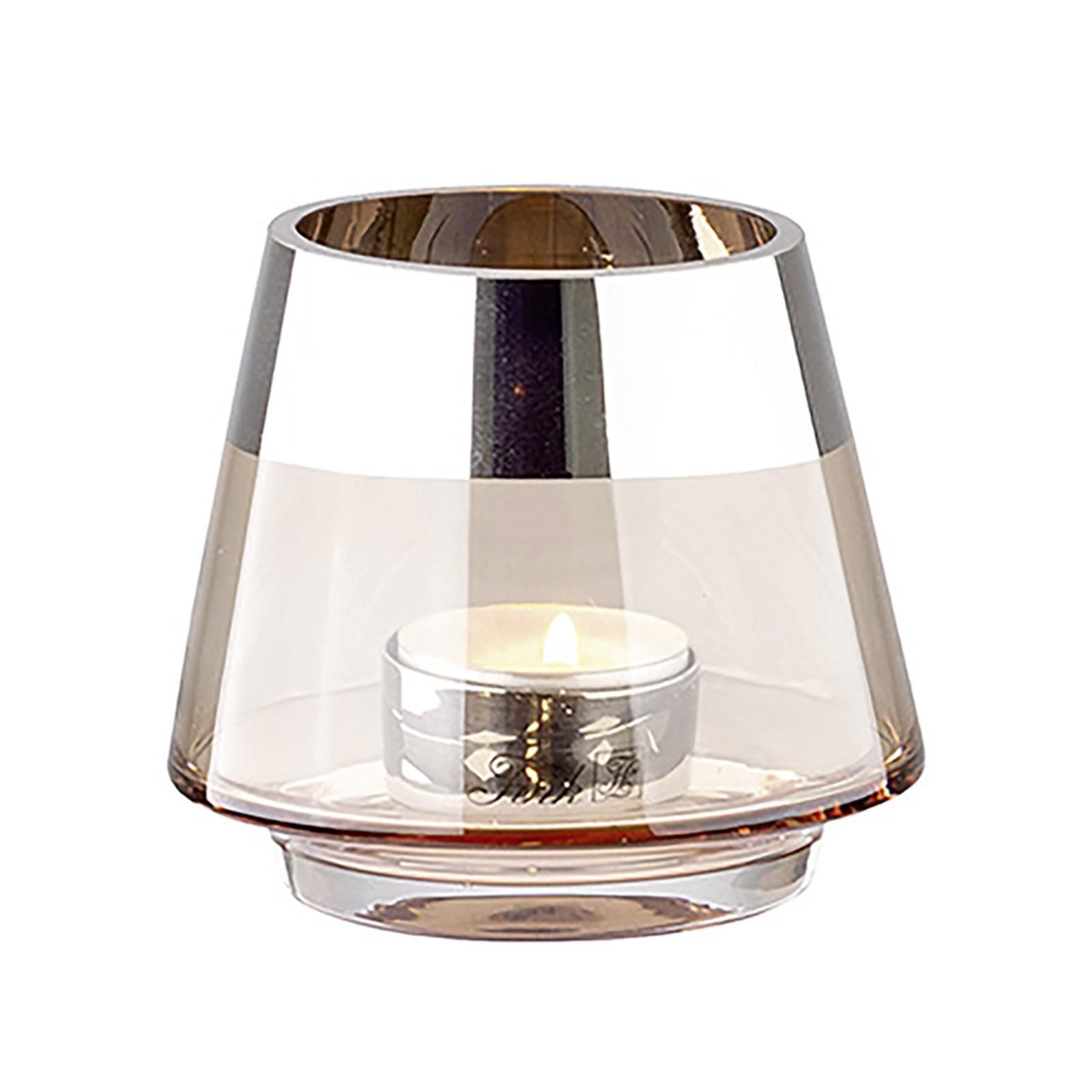 Fink Fink Teelichthalter Ø 11 cm Glas sandfarben kleines Windlicht mit silbernem Rand