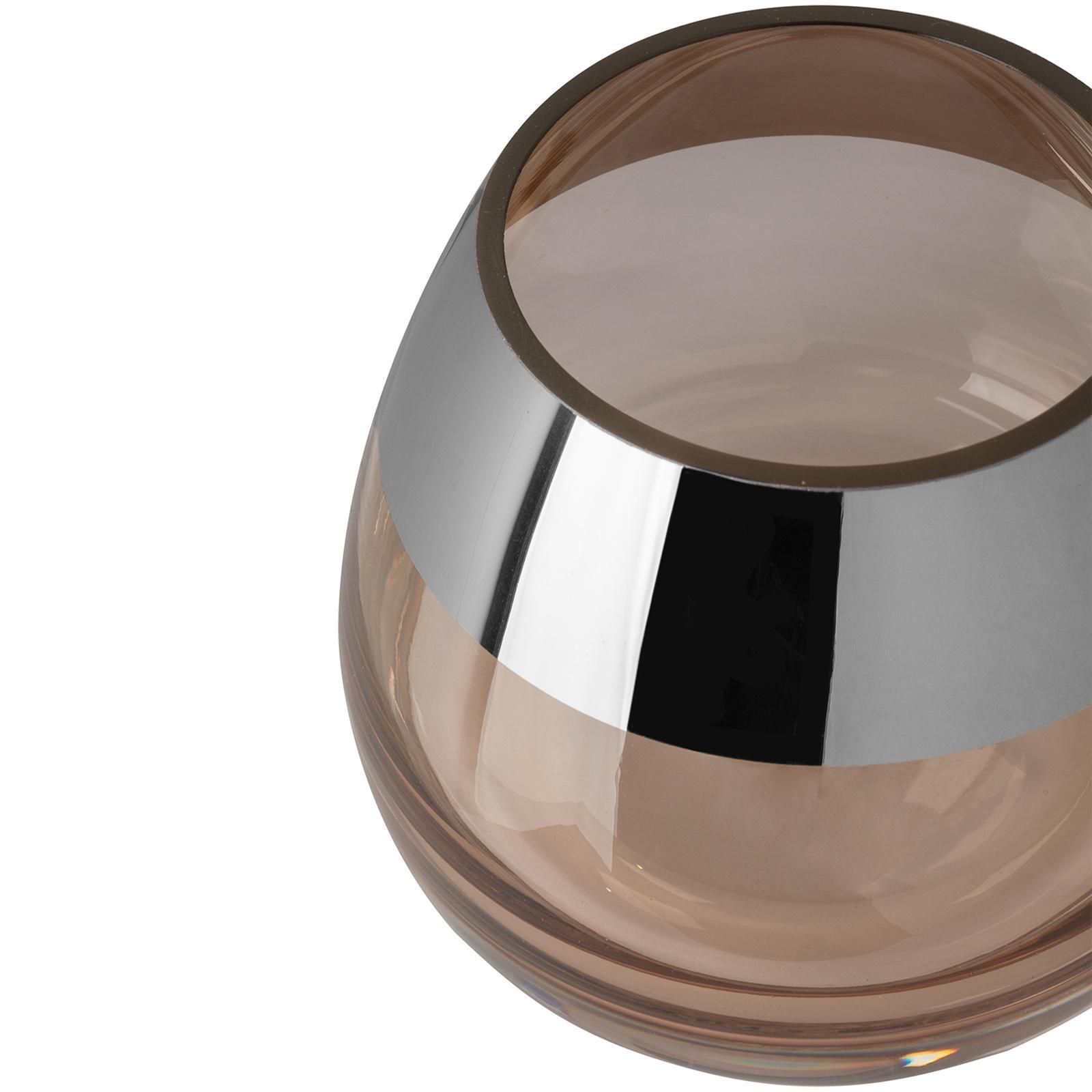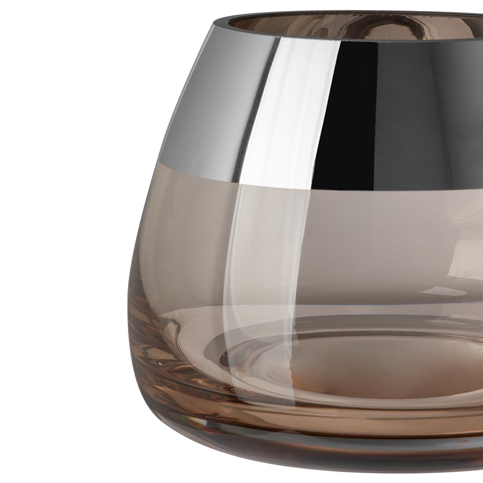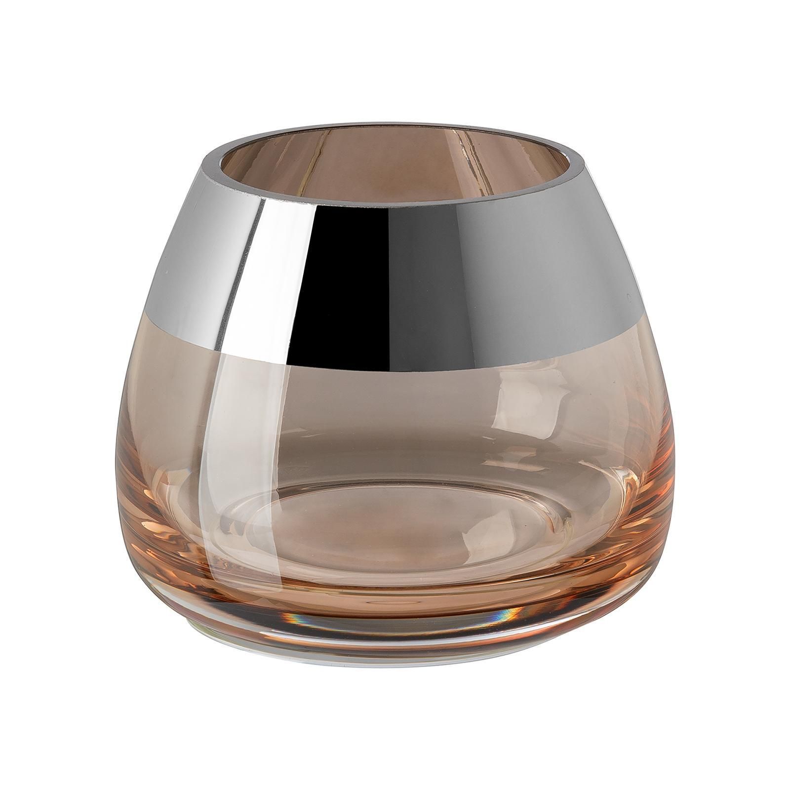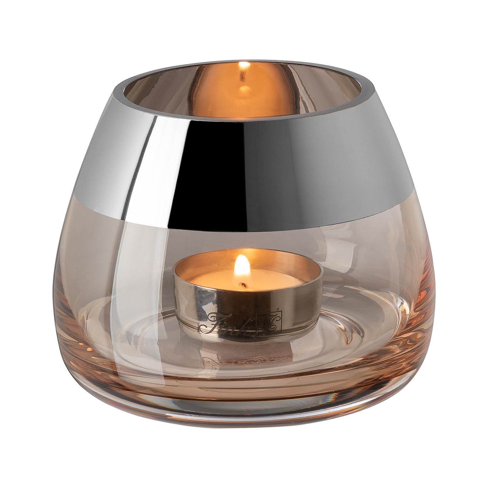 Fink Fink Teelichthalter Ø 11cm sandfarben Windlicht Glas Kerzenhalter mit Silberrand