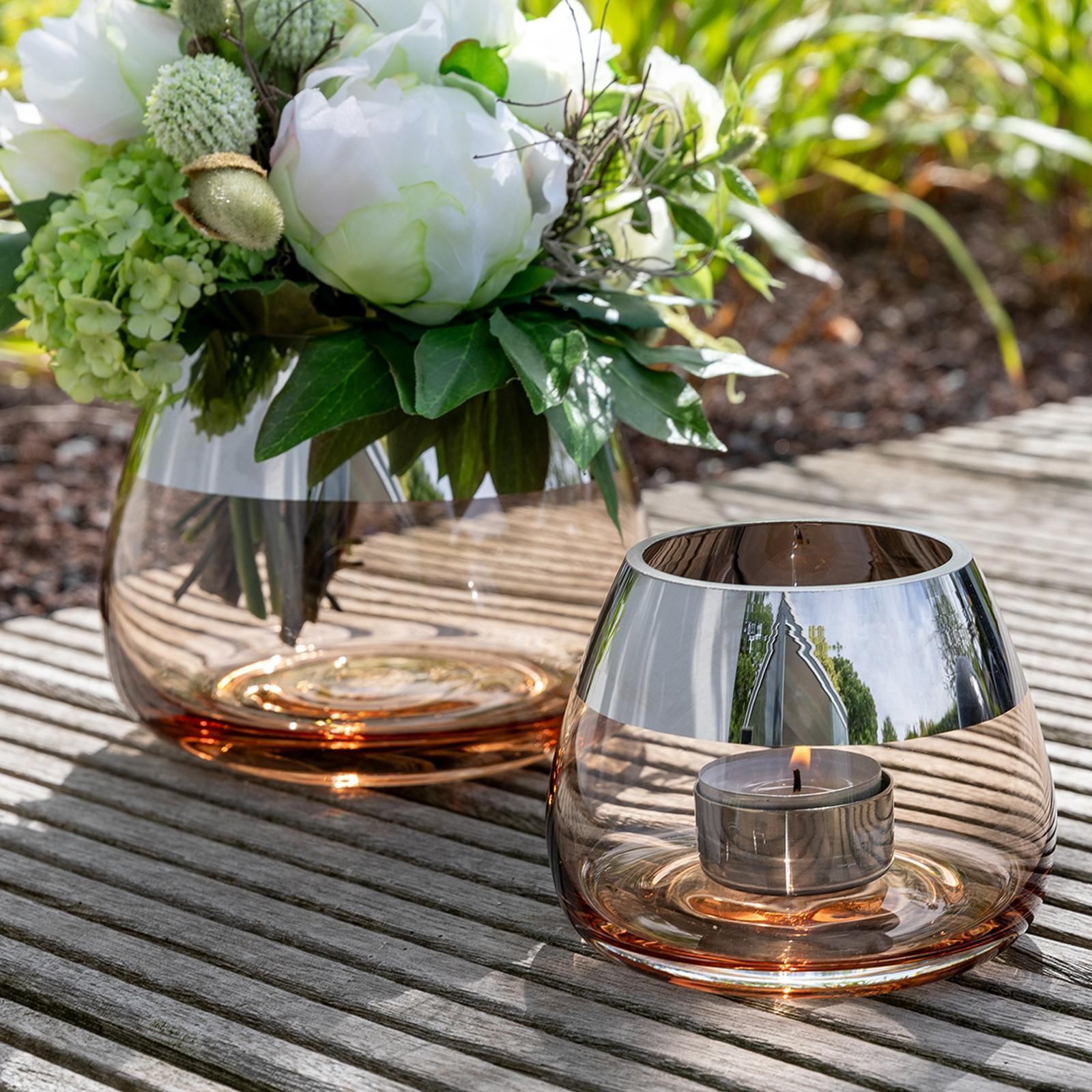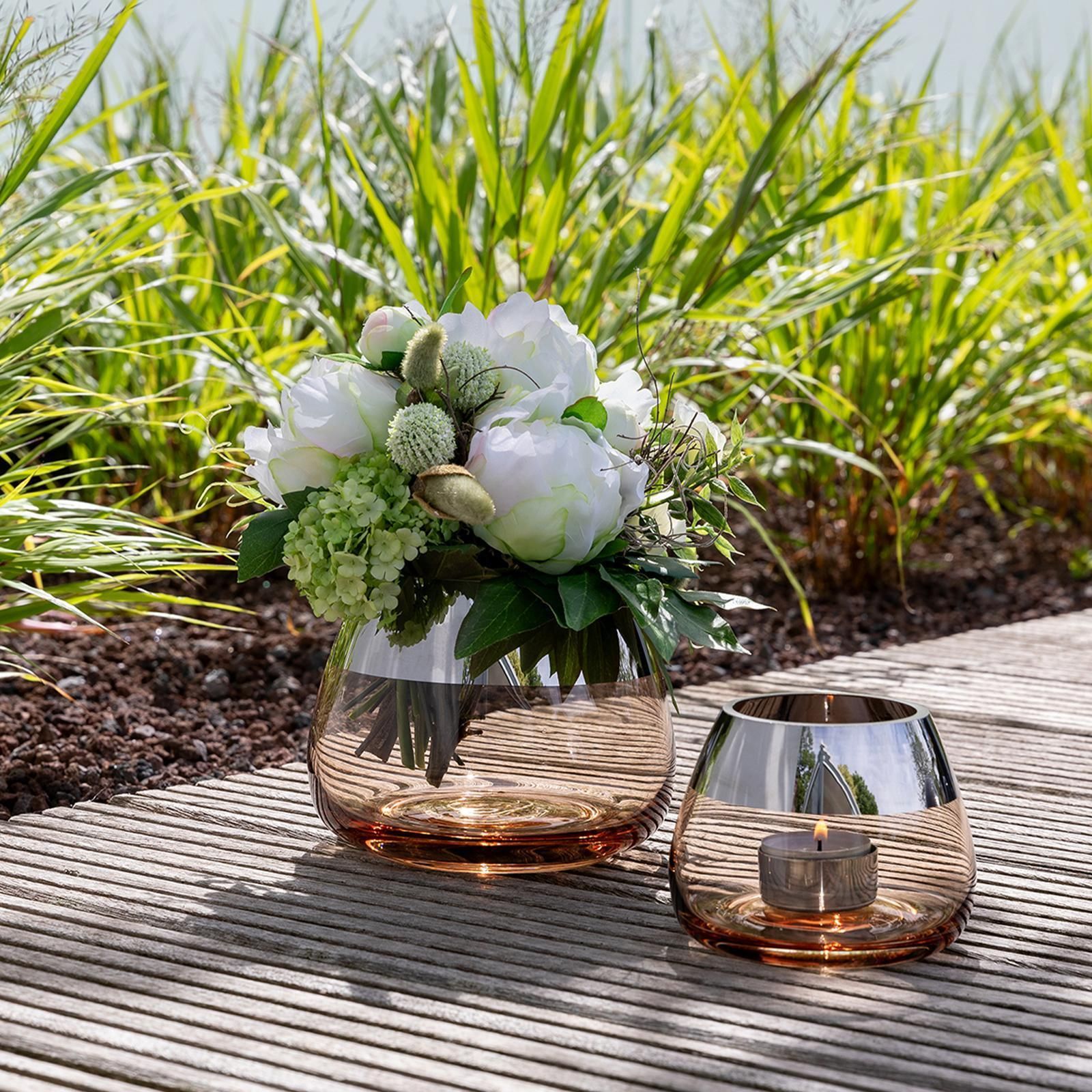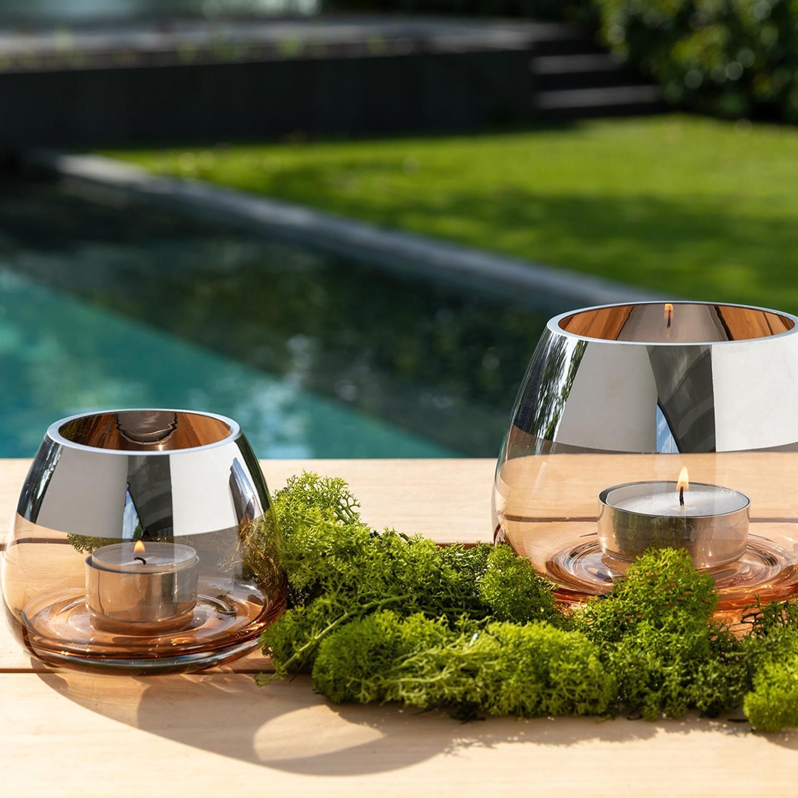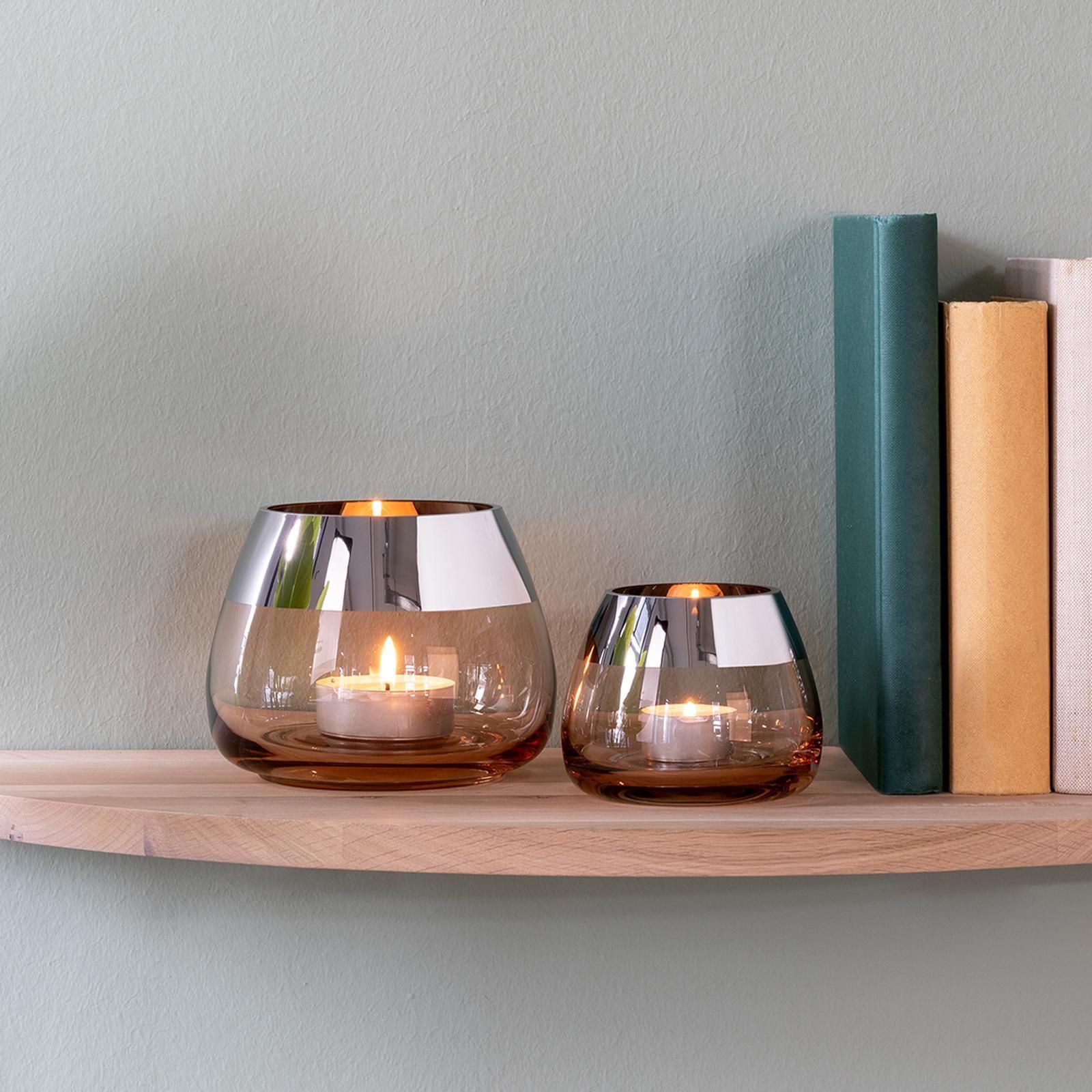 Fink Fink Teelichthalter Ø 11cm sandfarben Windlicht Glas Kerzenhalter mit Silberrand