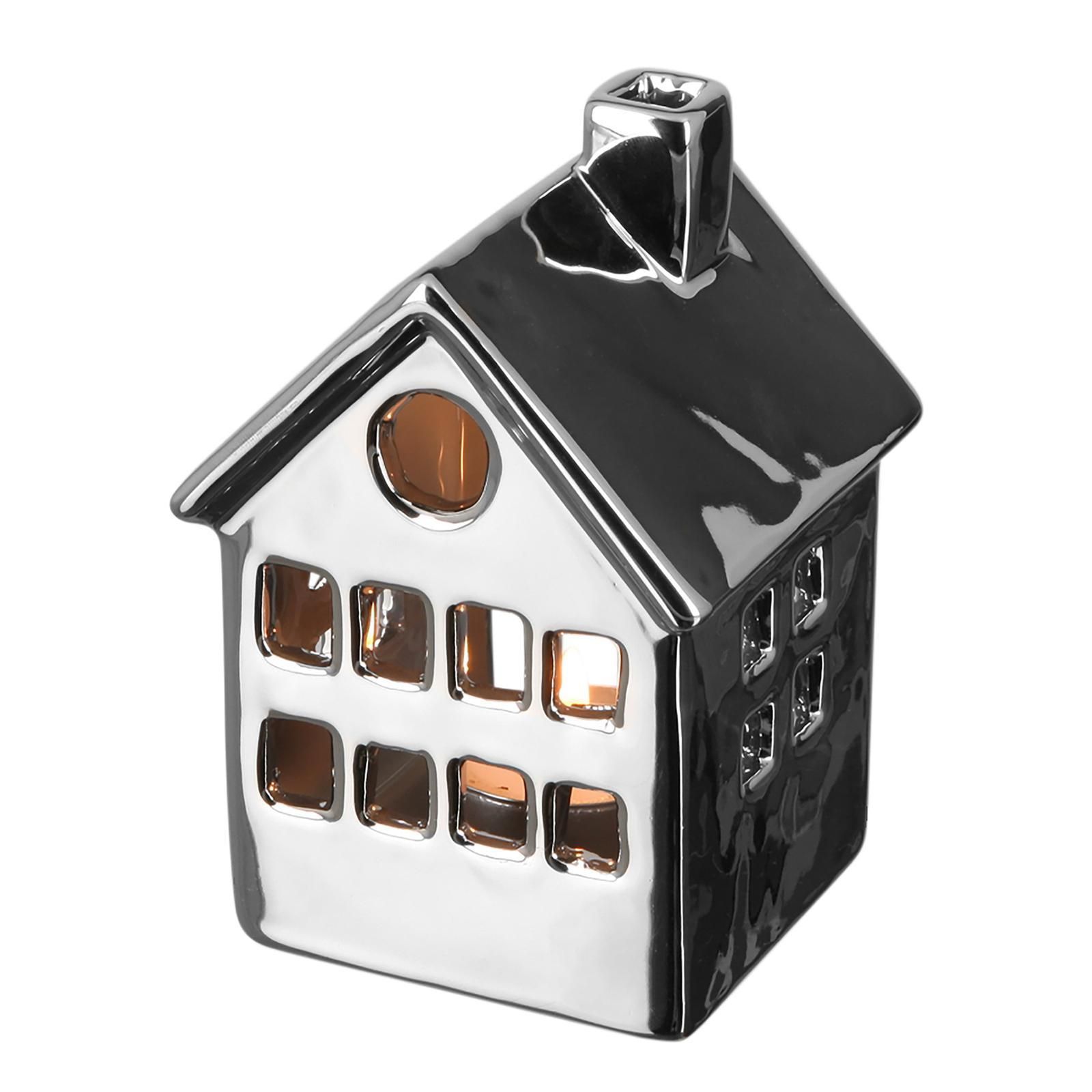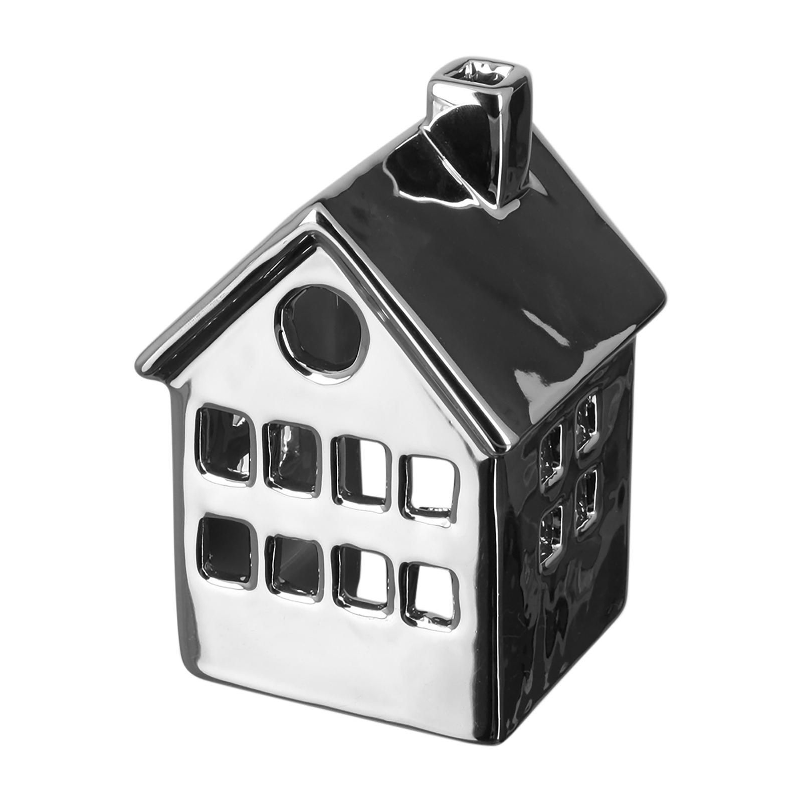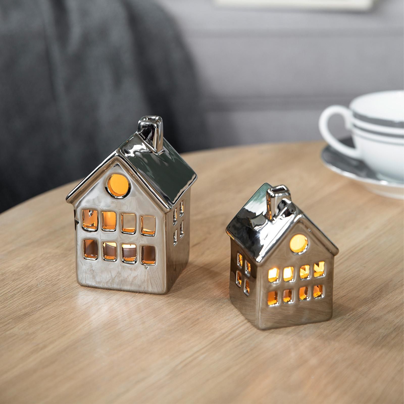 Fink Fink Teelichthalter 12x8 cm aus Keramik silbernes Deko-Haus als Kerzenhalter
