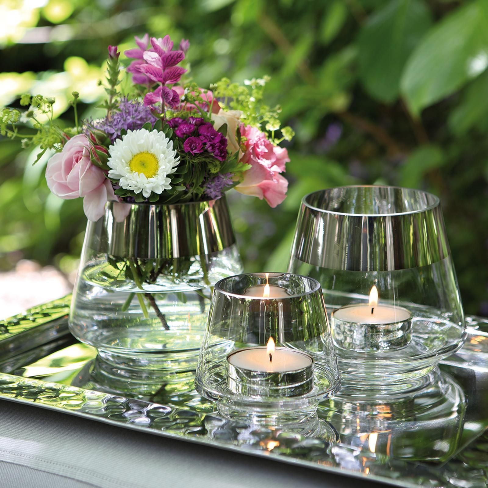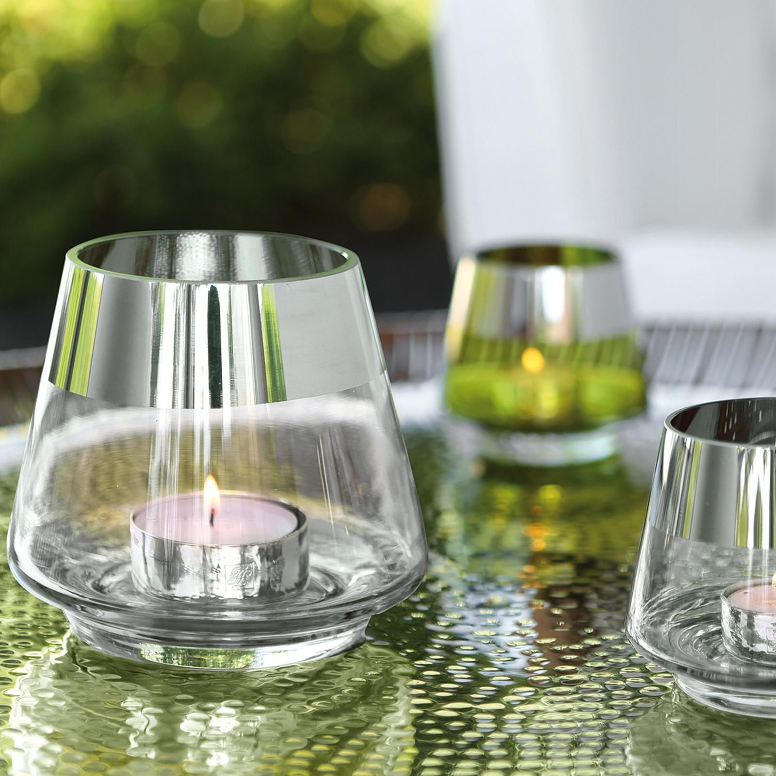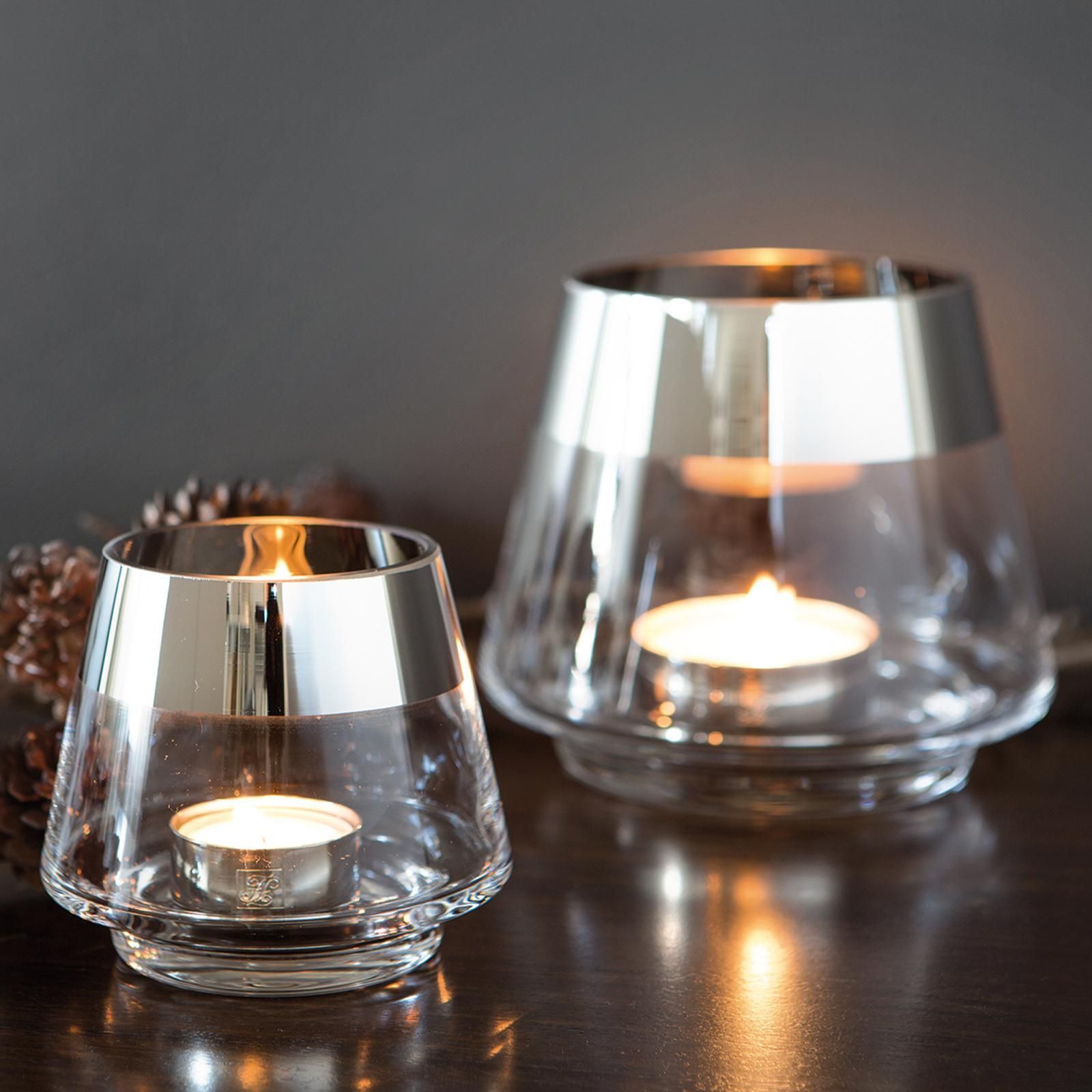 Fink Fink Teelichthalter Ø 15 cm aus Glas transparentes Windlicht mit silbernem Rand