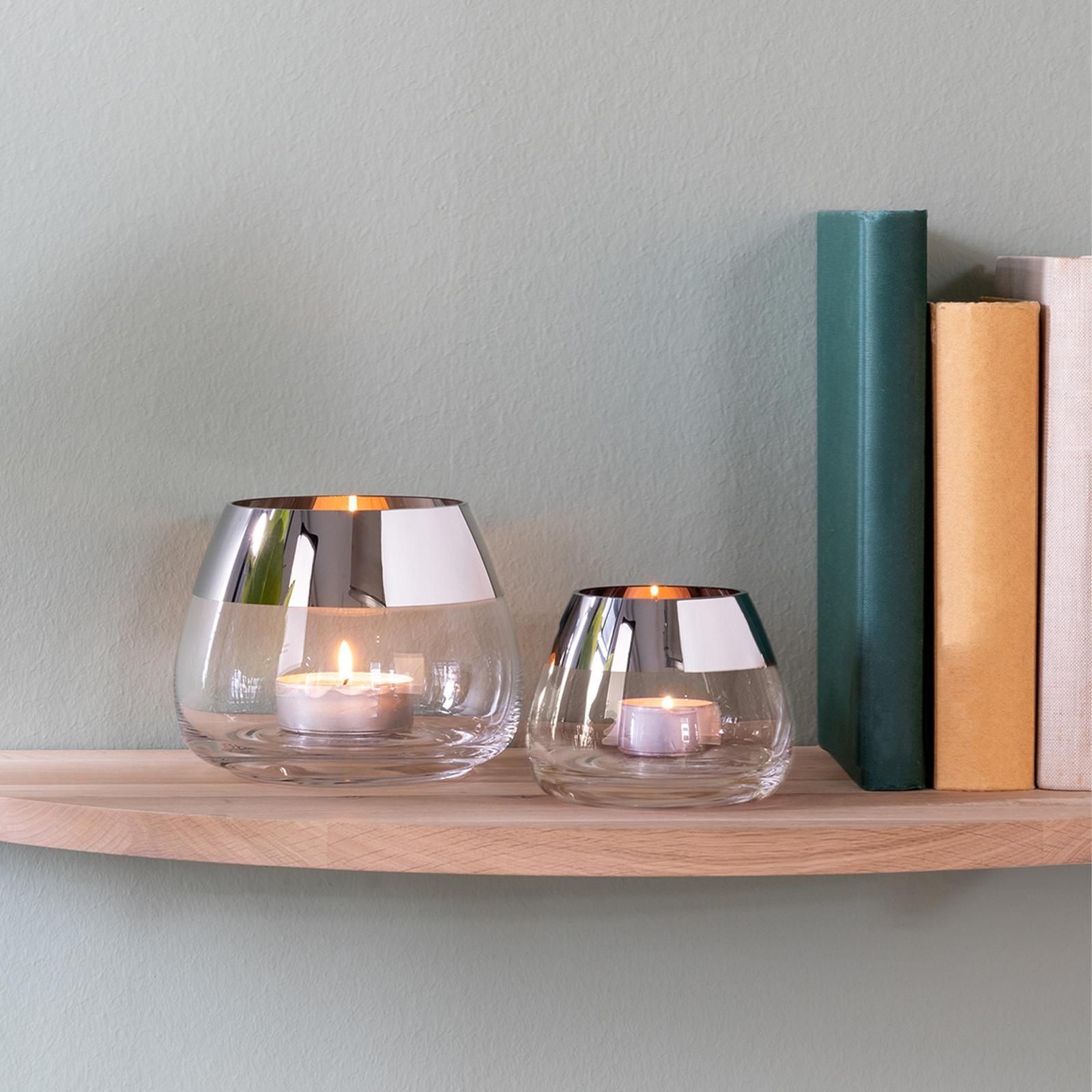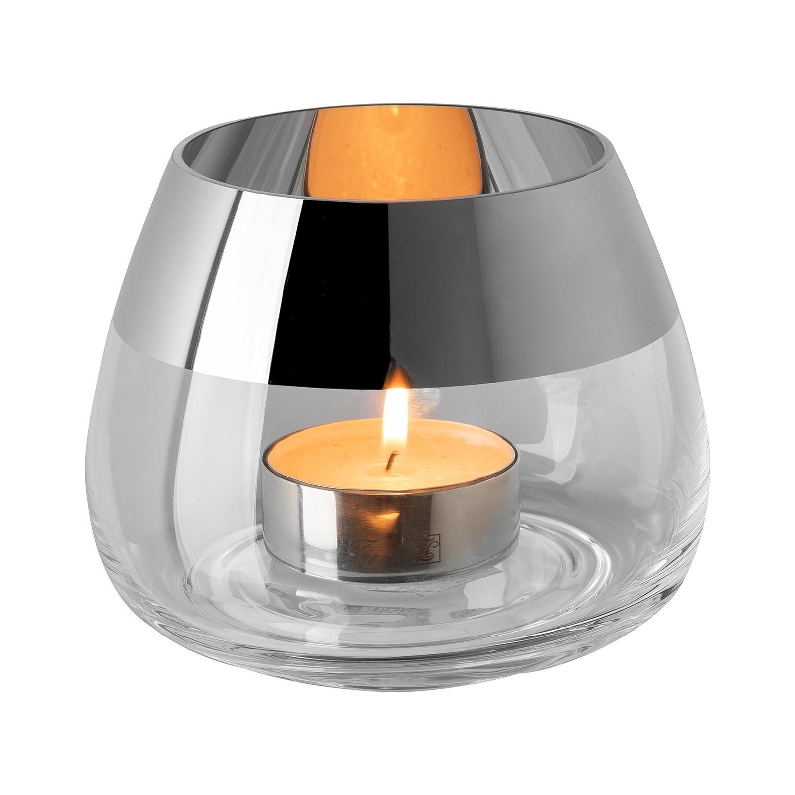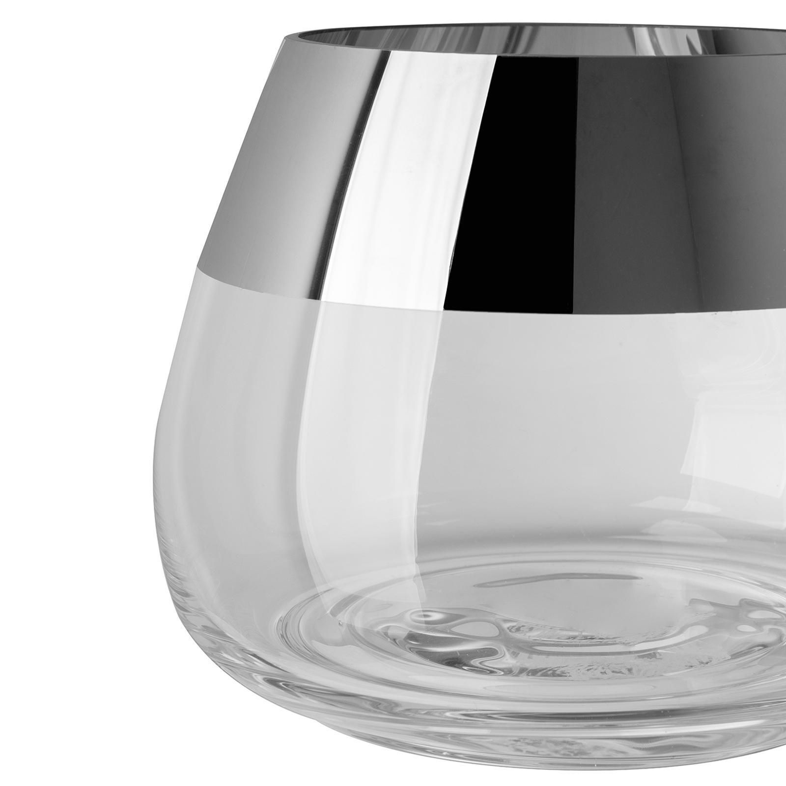 Fink Fink Teelichthalter Ø15cm Glas transparent Windlicht Kerzenhalter mit Silberrand