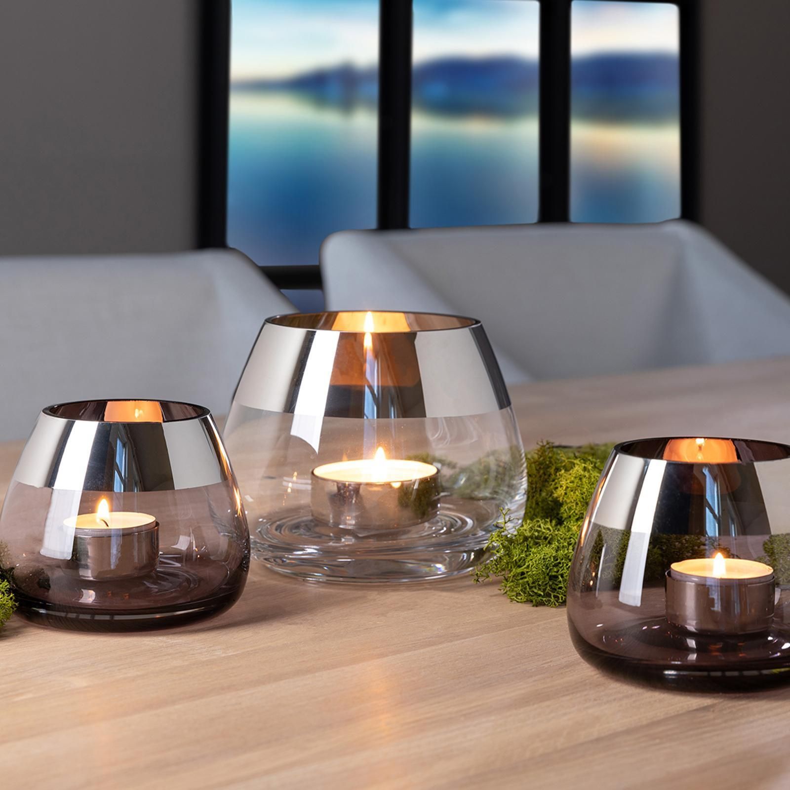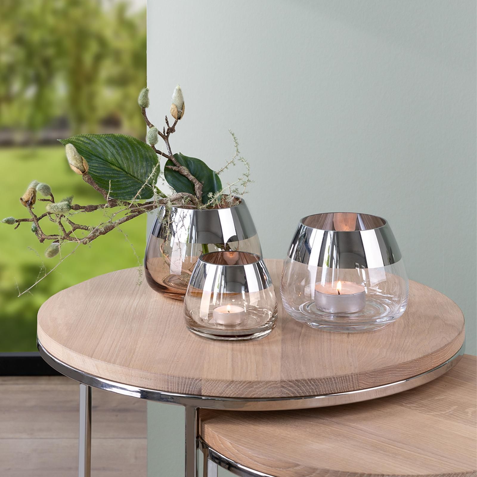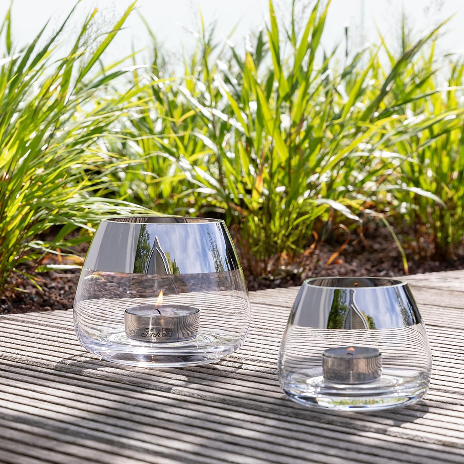 Fink Fink Teelichthalter Ø15cm Glas transparent Windlicht Kerzenhalter mit Silberrand