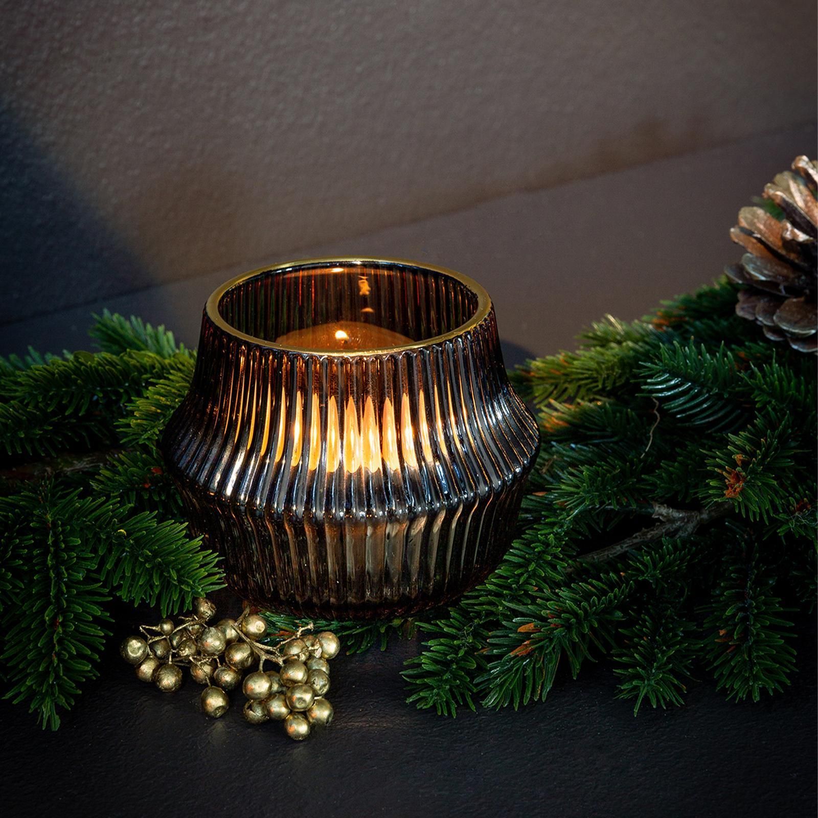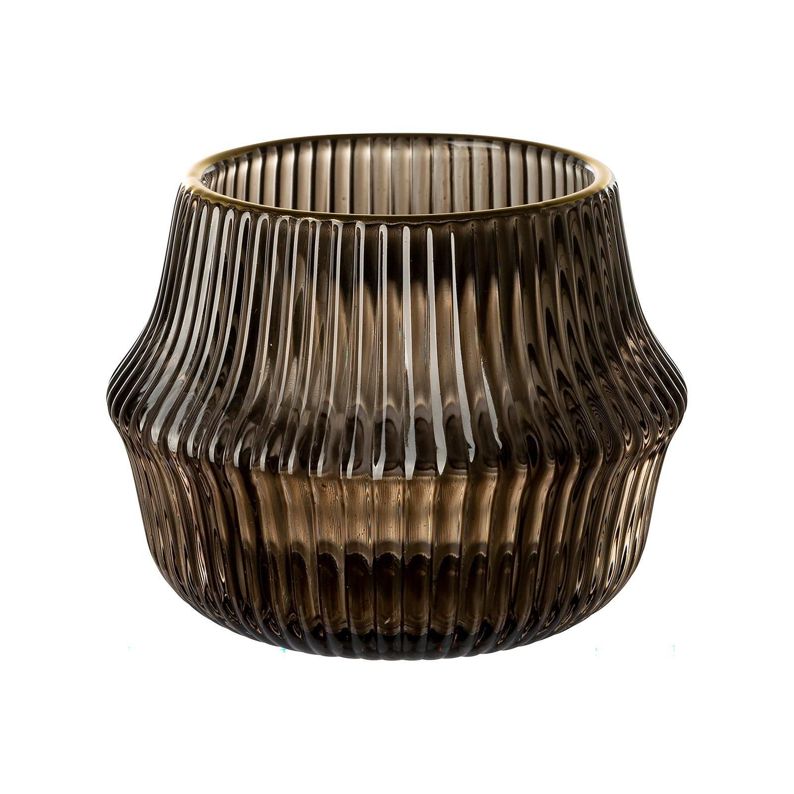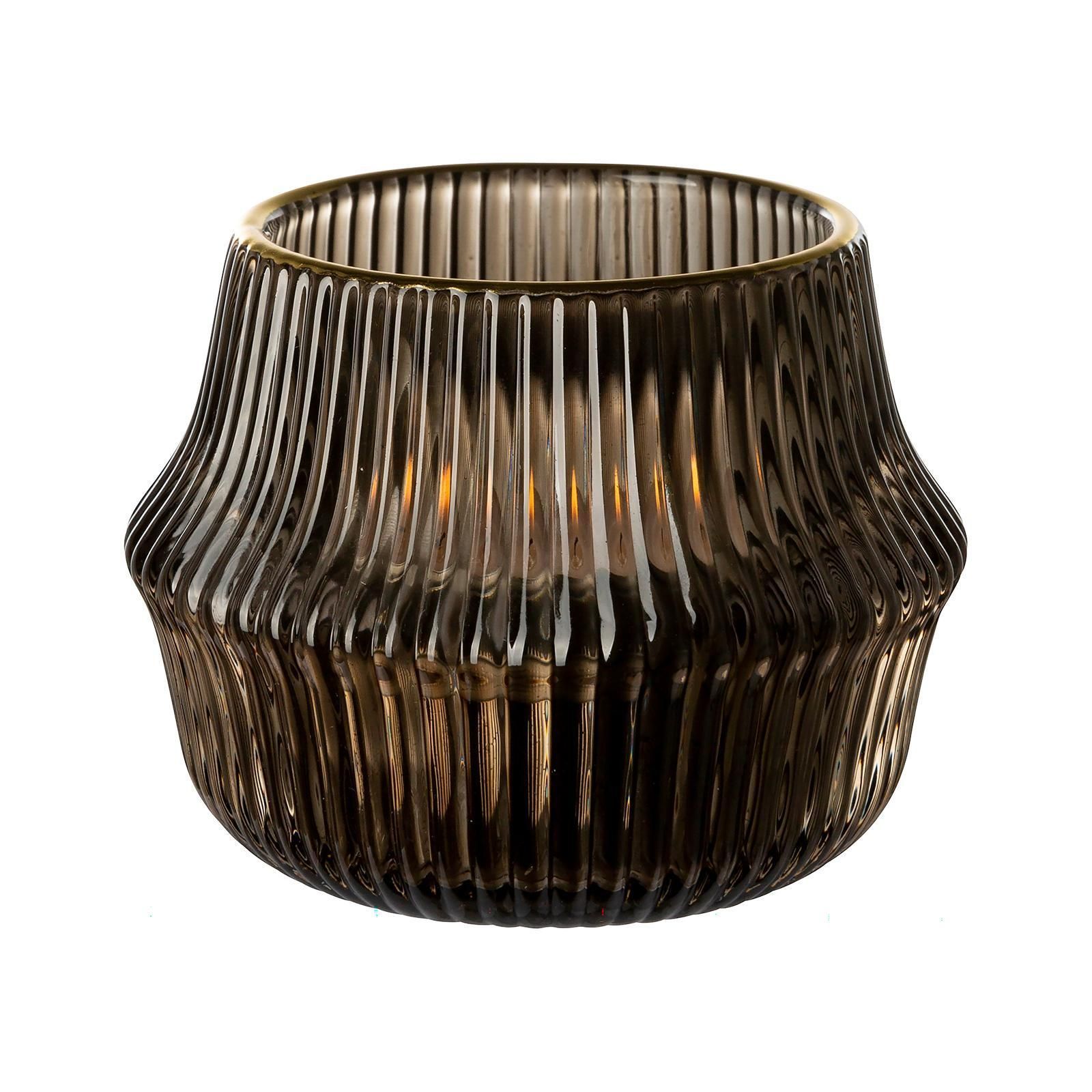 Fink Fink Teelichthalter Ø 9 cm klein braun Glaskerzenhalter Windlicht Streifendesign