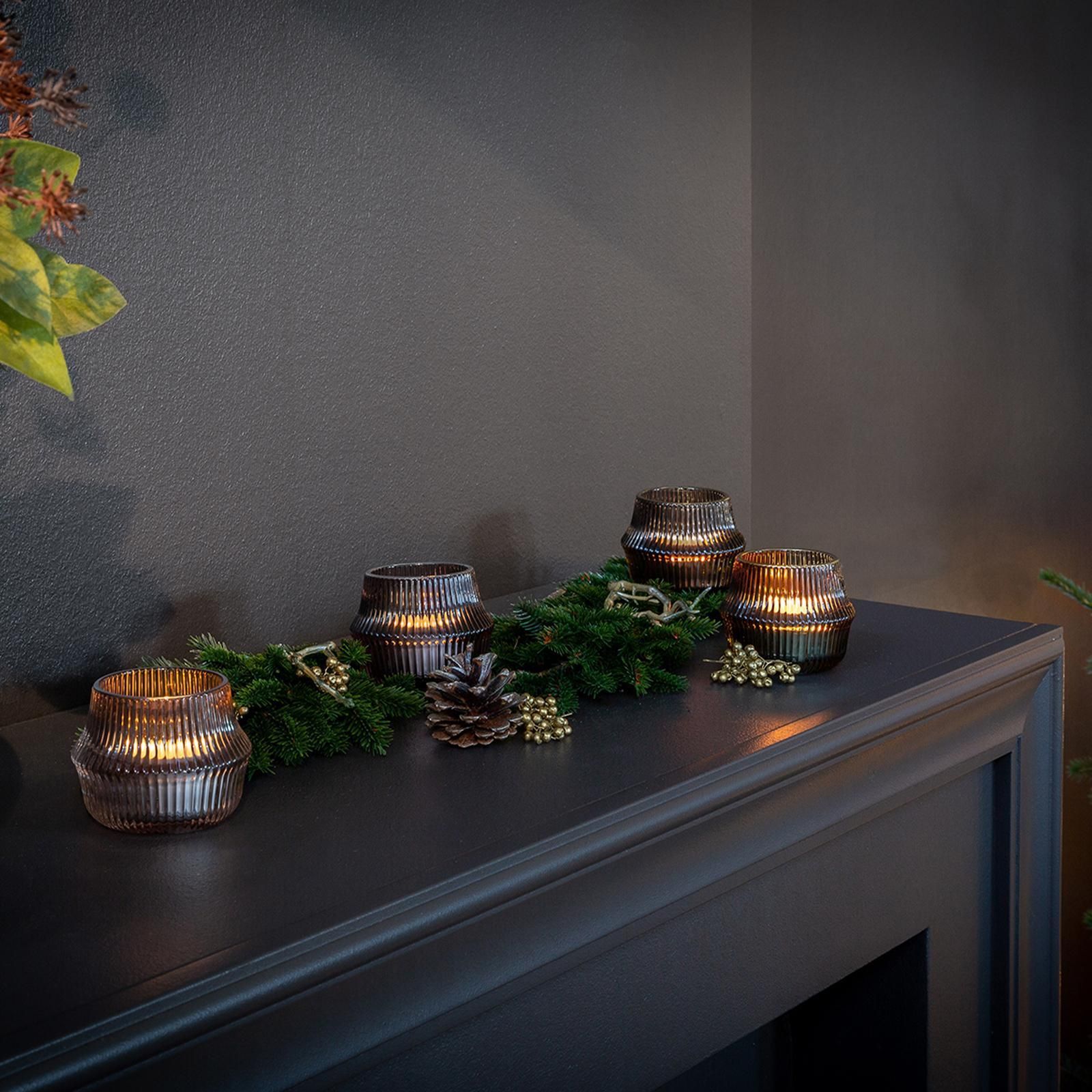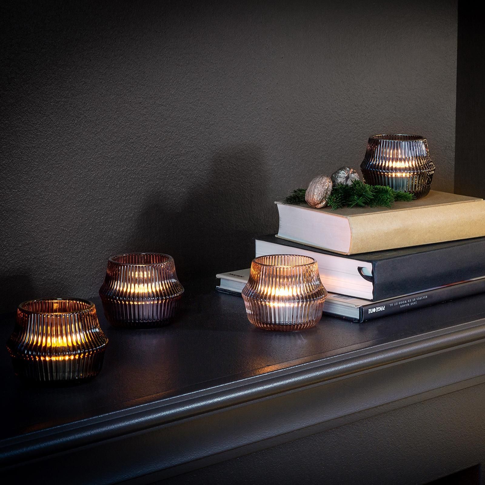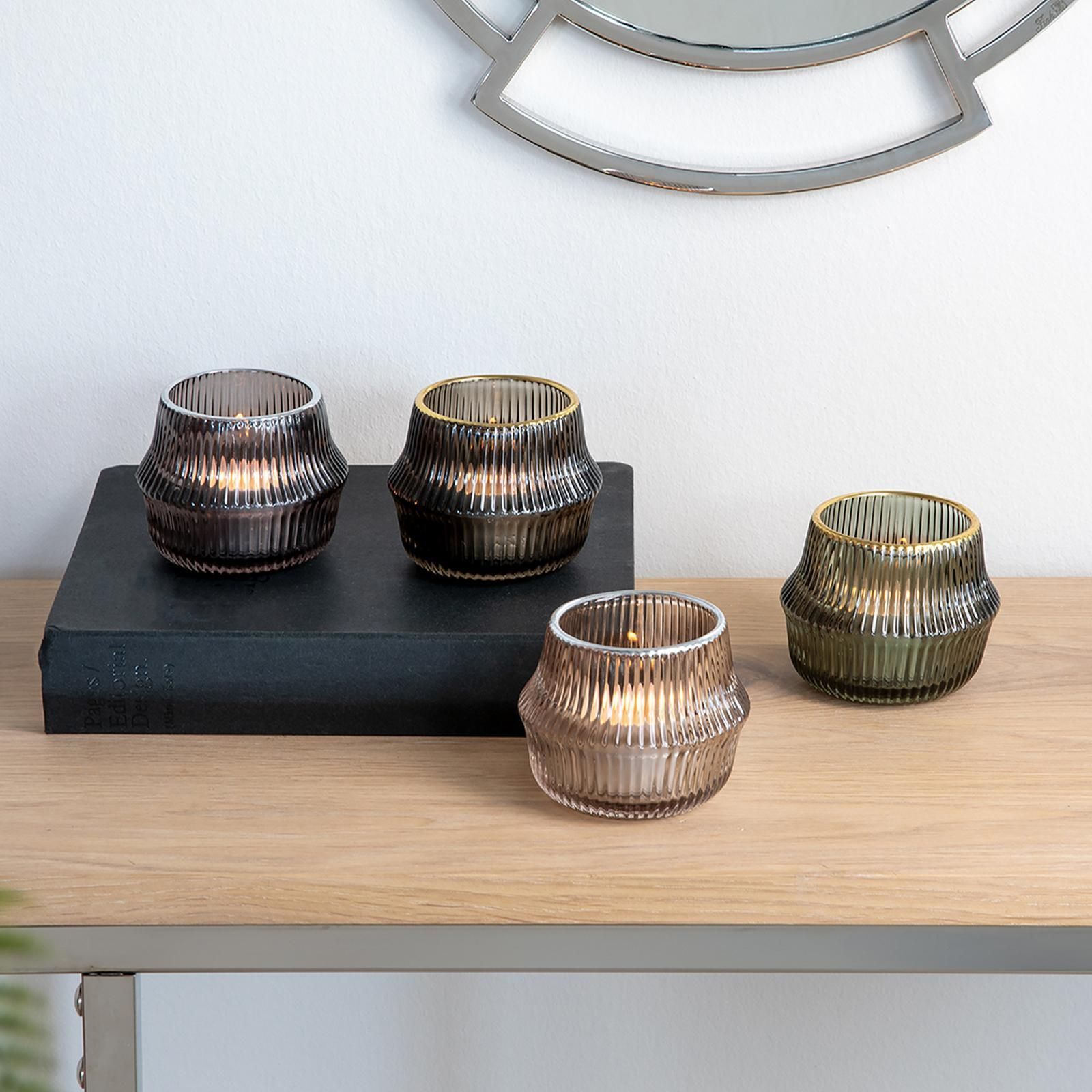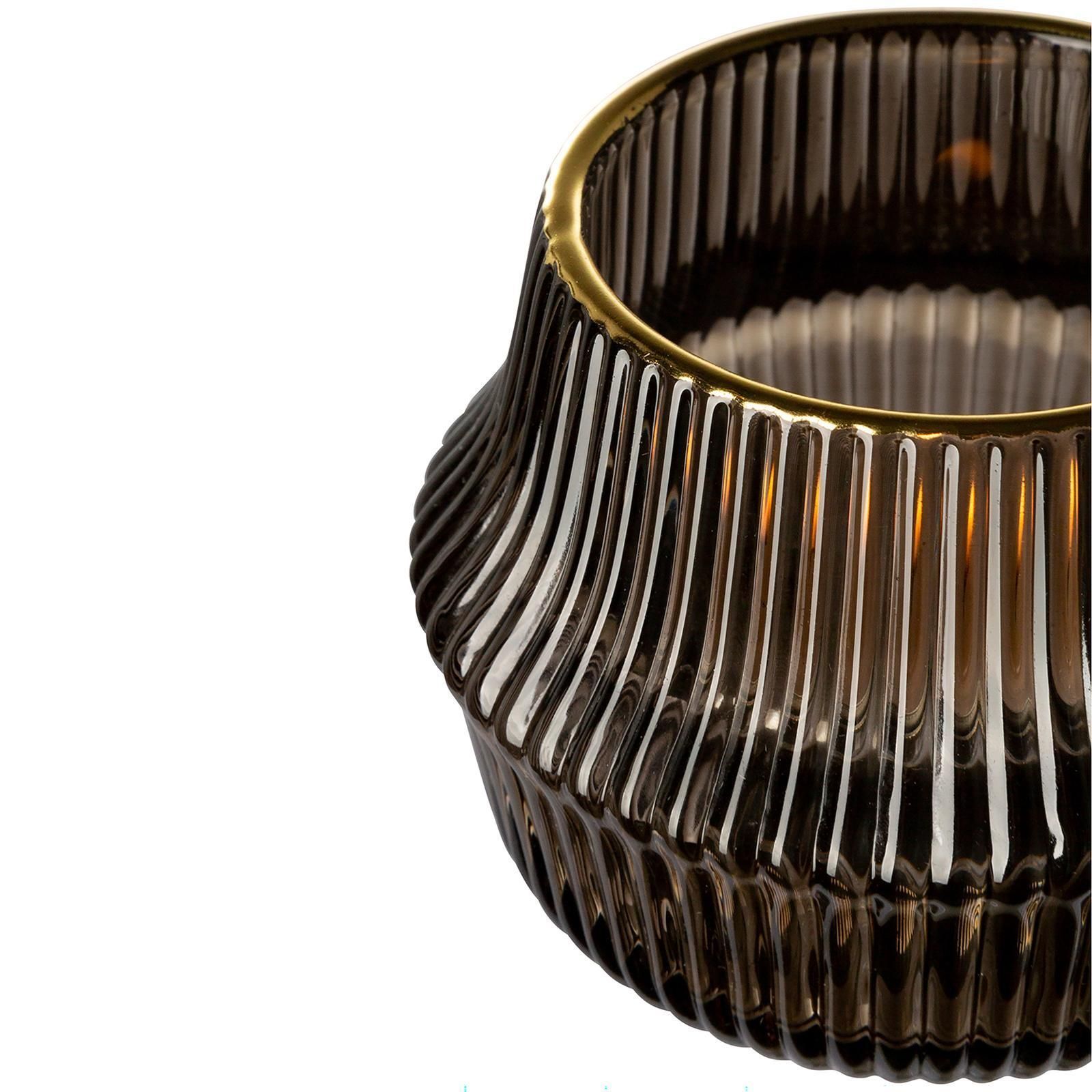 Fink Fink Teelichthalter Ø 9 cm klein braun Glaskerzenhalter Windlicht Streifendesign