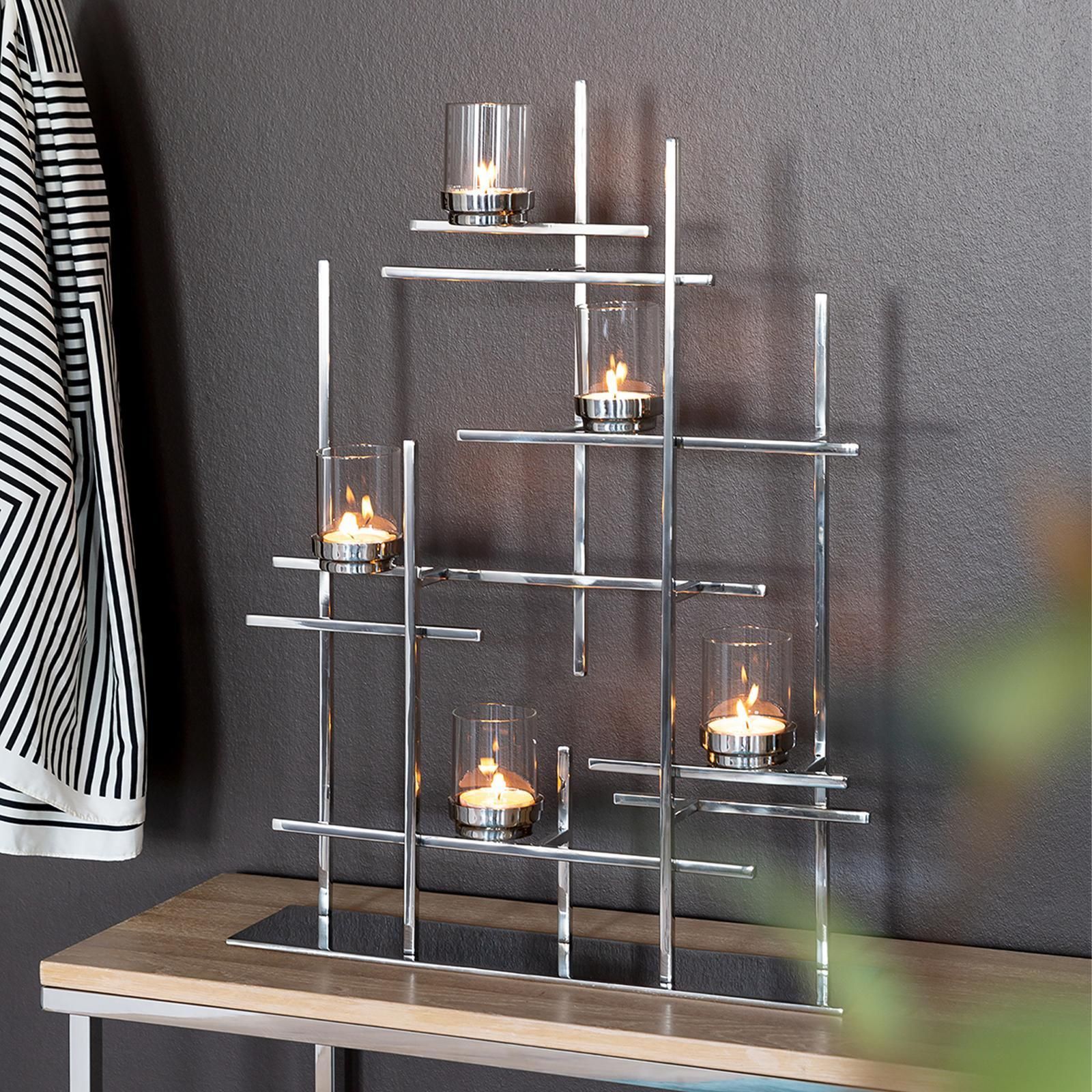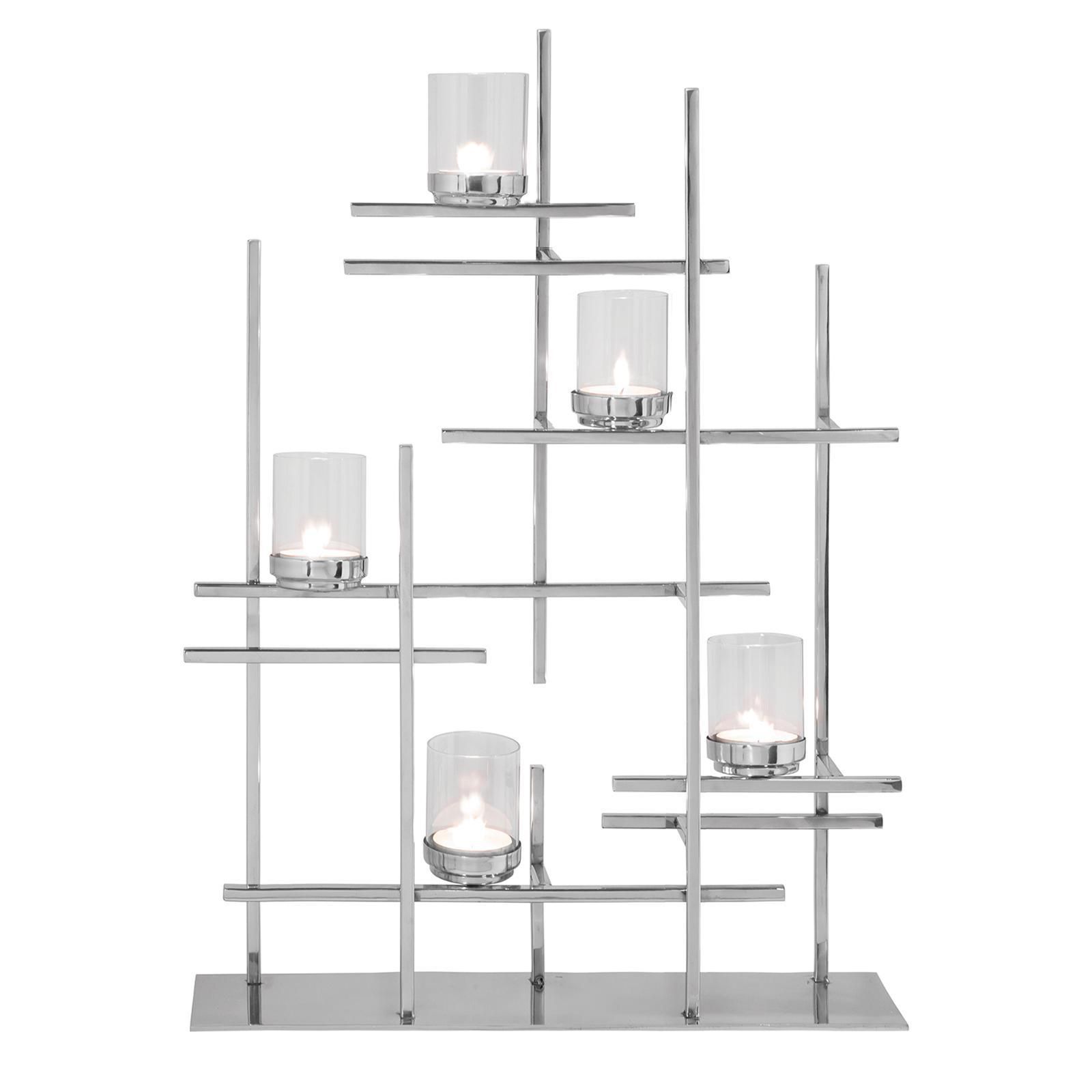 Fink Fink Teelichtständer 70 cm 5-flammig aus Edelstahl Kerzenhalter inkl. 5 Gläser