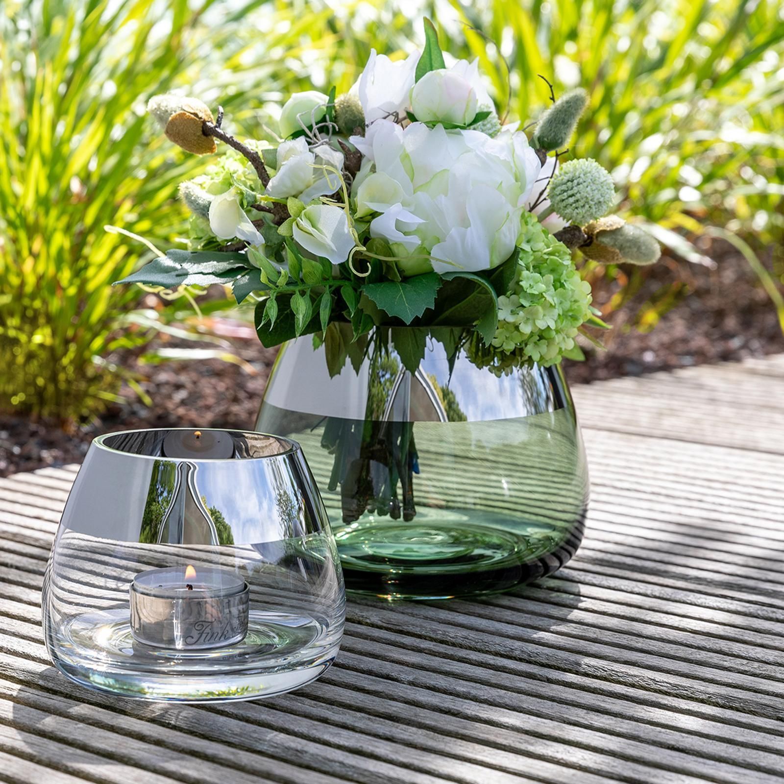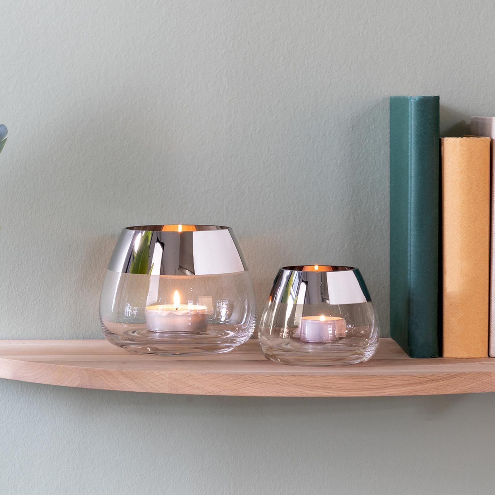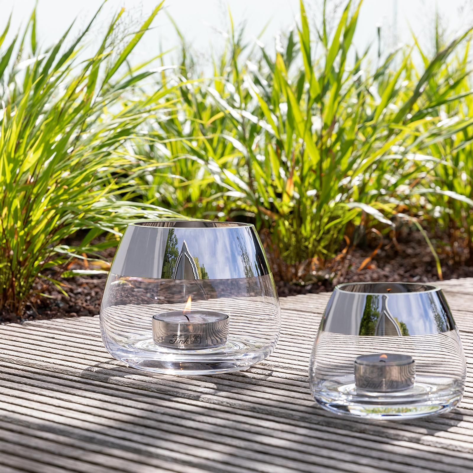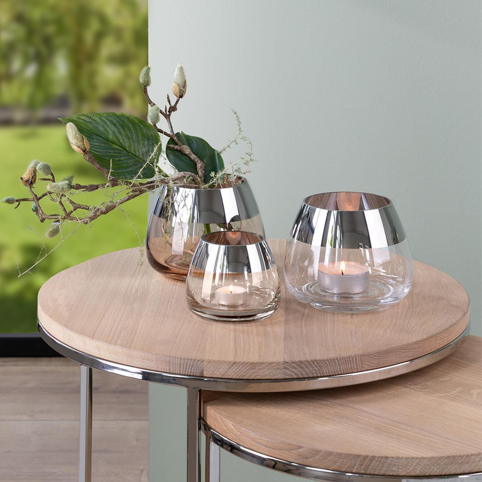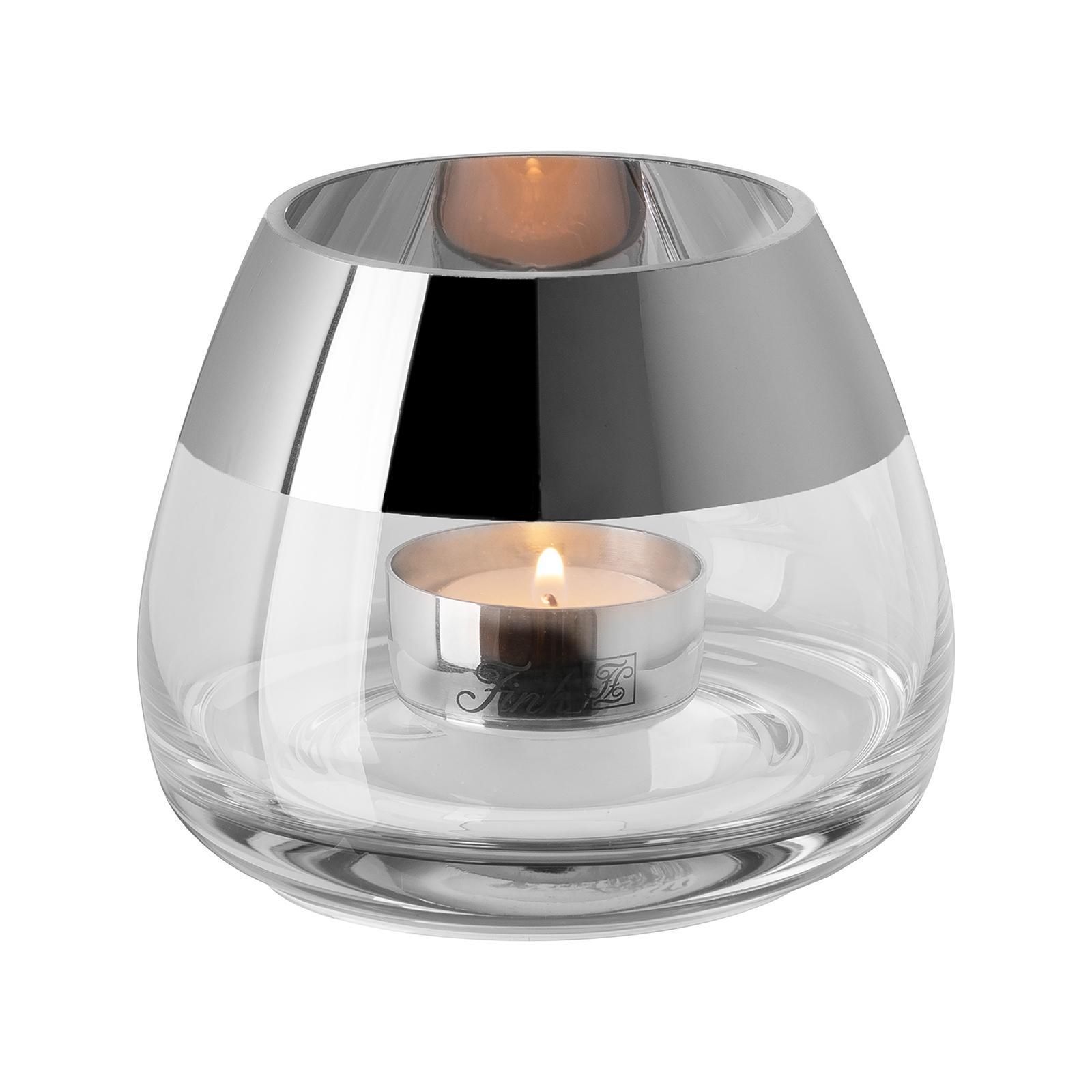 Fink Fink transparenter Teelichthalter Ø 11 cm Glas Kerzenhalter mit Silberrand