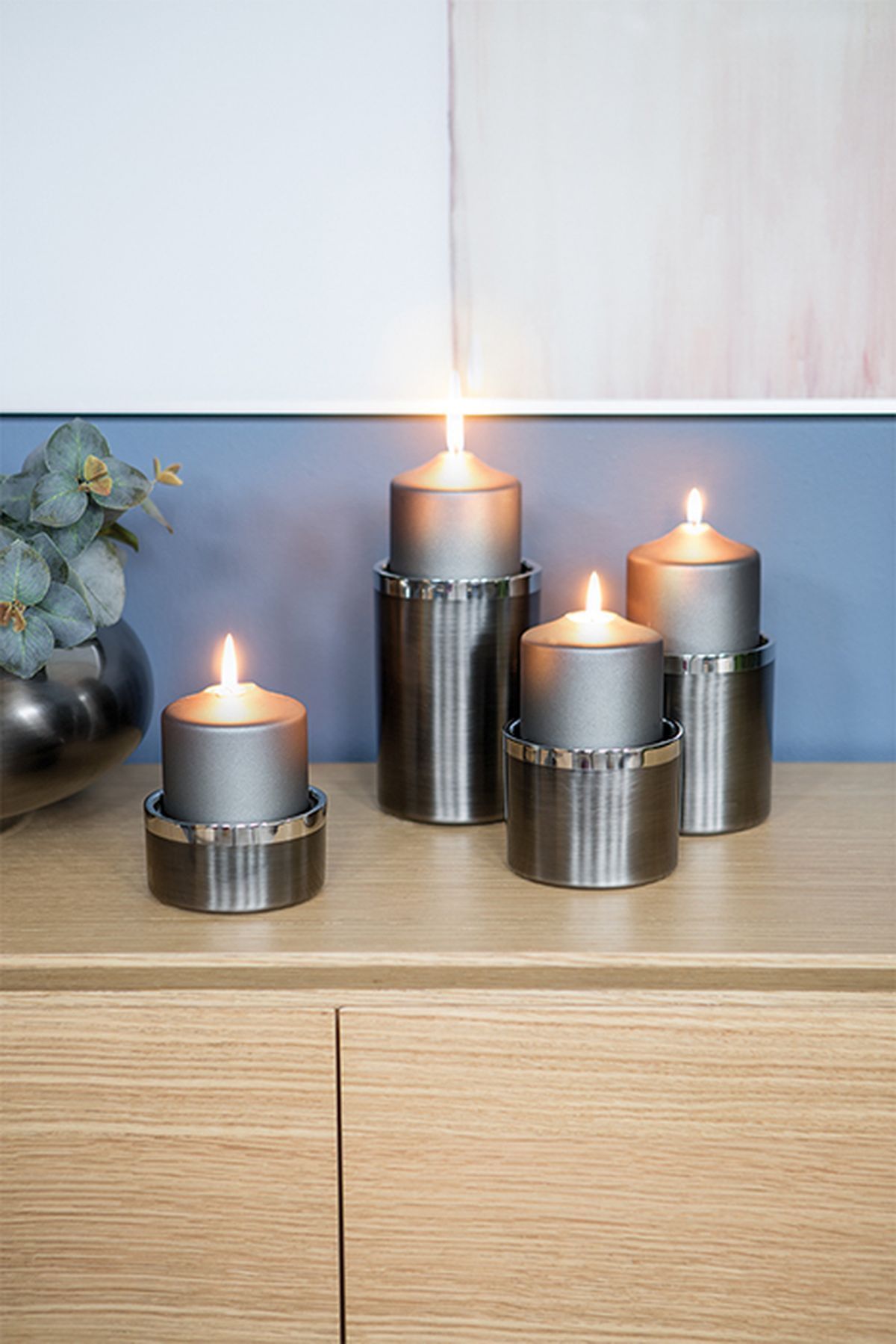 Fink Fink VITO, Stumpenkerzenhalter, Edelstahl , glatt, antik grau, L. 10 cm, B. 10