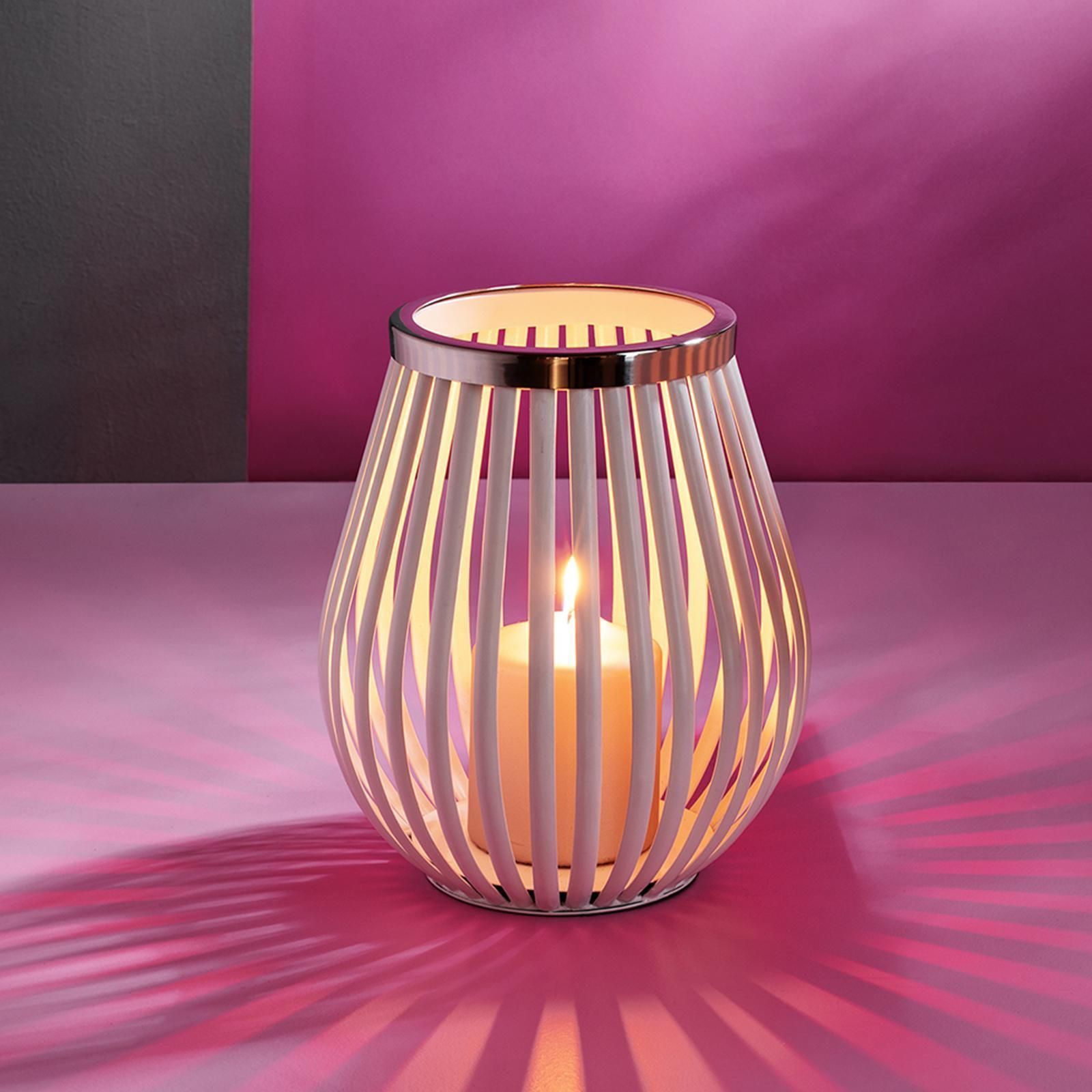 Fink Fink Windlicht 22.8 x Ø 21 cm weiß-silber Halter für Stumpenkerzen Kerzenständer
