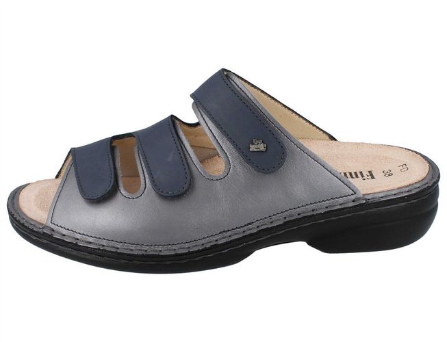 Finn Comfort FINN Comfort Finnstretch Cisano Damen Pantolette grau blau Leder und Stretch
