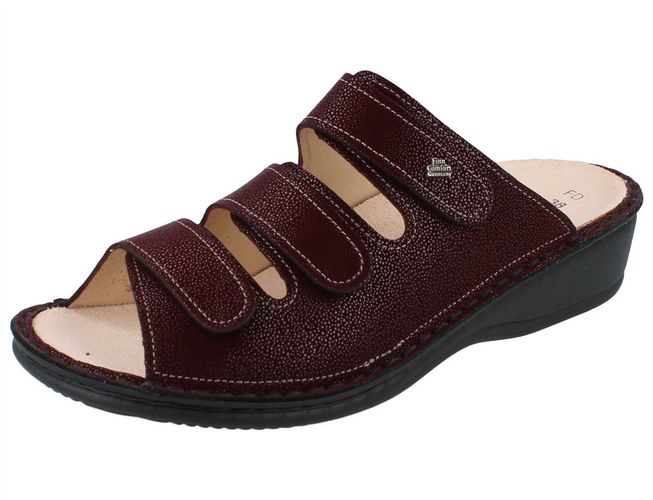 Finn Comfort FINN Comfort Pisa Damen Pantoletten Hausschuhe bordo bedrucktes Nubukleder