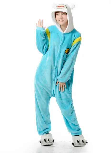 Finn Jake Adventure Time Onesie Erwachsene Tier Cosplay Pyjamas Plusch Flanell