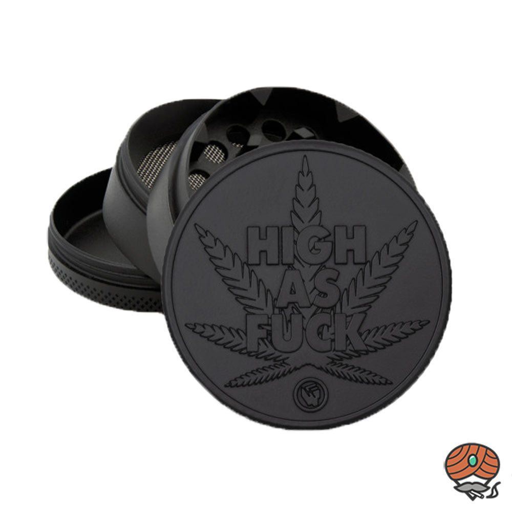 FIRE-FLOW Kräutermühle - High as Fuck, Schwarz, 50mm, 4-teilig