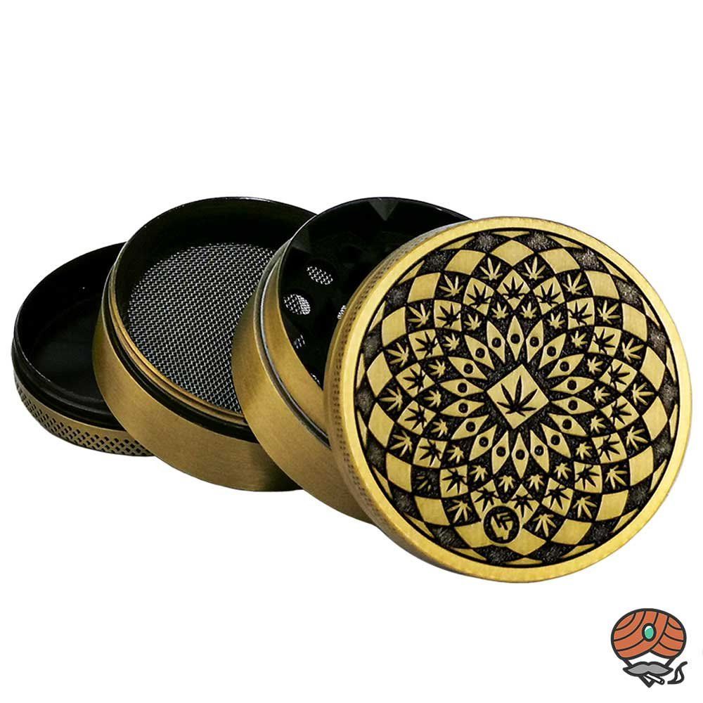 FIRE-FLOW Kräutermühle - Leaves Pattern Gold, Metall, 50mm, 4-teilig
