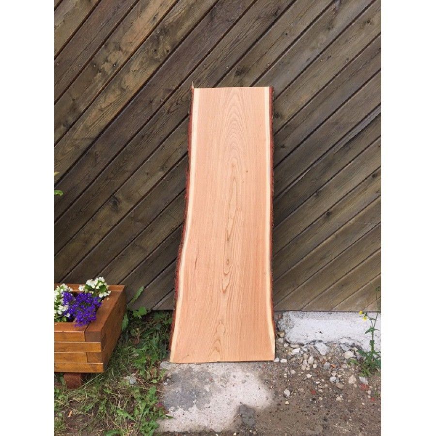 Firmenschild, Baumscheibe, Massivholz Tischplatte, Bartresen, unbesäumt, Handwerk, Lä