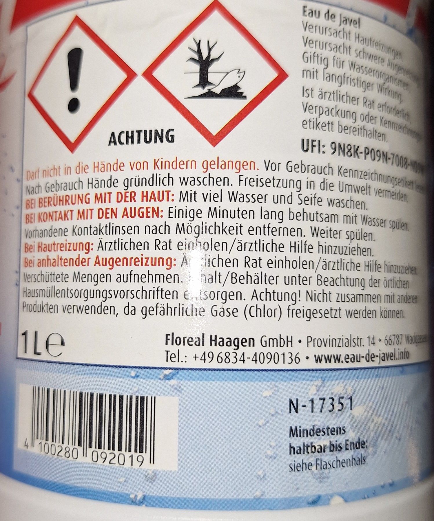 • Bei , Ärztlichen Rat einholen ( giftiges Chlorgas kann entstehen)