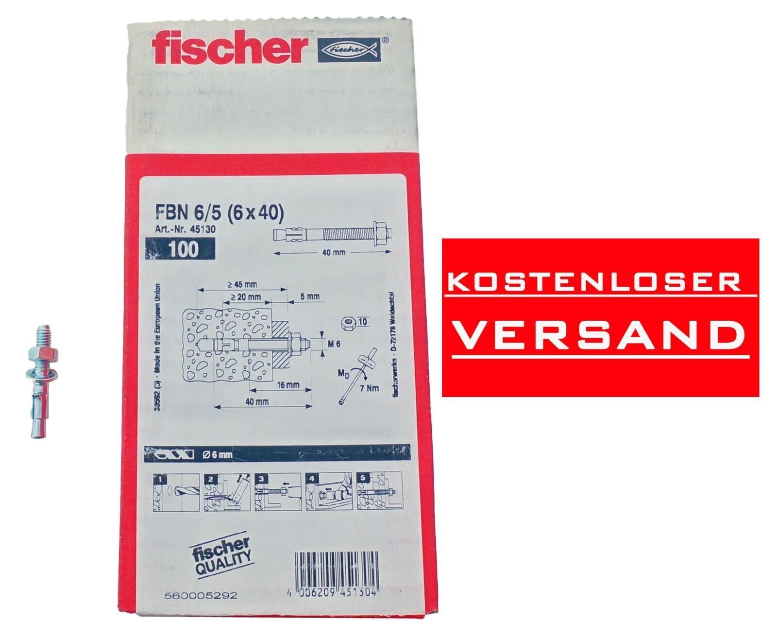 Fischer 100 Stück 505526 Bolzenanker FBN 6/5 ( 6x40) 45130