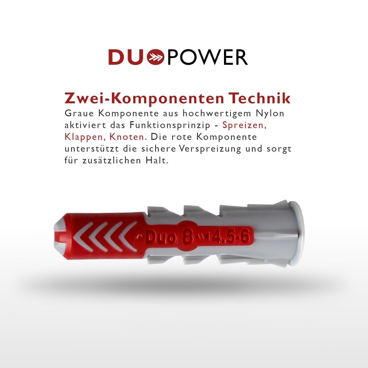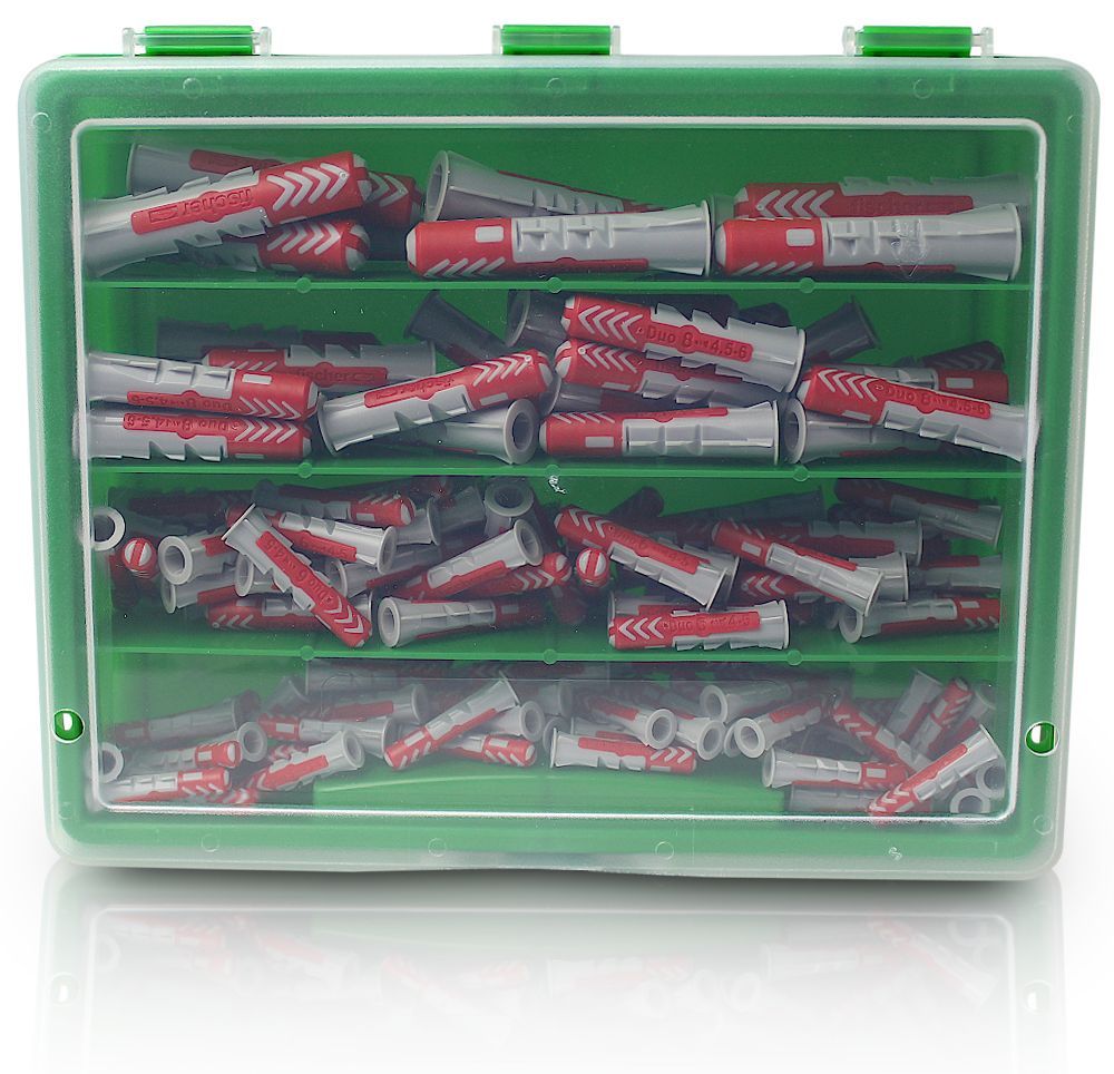 148 DUOPOWER Dübel 5, 6, 8 und 10mm, mit normalem Schaft im Sortimentskasten Inhalt 60 Stück 5x25 50 Stück 6x30 25 Stück 8x40 13 Stück 10x50 Das Ganze in einer wiederverschließbaren Kunststoffbox ca 18 x 14,5 x 3,5cm Gewicht ca. 0,21KG Insgesamt über 148 Teile Aluminium Ausbesserung Autoradio Blech