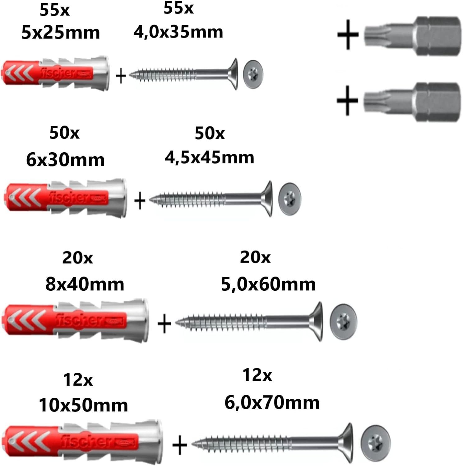 Fischer DuoPower Dübel + Torx Schrauben + Bits 277 teilig 5x25 6x30 8x40 10x50 mm