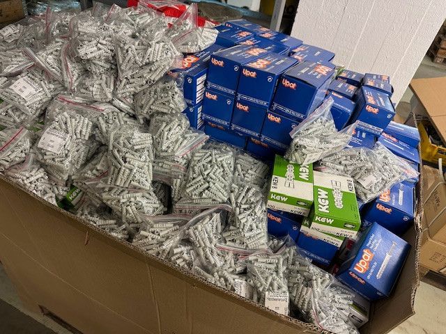 Abverkauf 1 Palette ca. 900 kg Fischer GB, Fischer M Fischer Rahmendübel Upat Nageldübel Kippdübel usw. usw. - Fachhandel seit über 30 Jahren - Warenversand aus Deutschland - Bitte beachten Sie auch unsere weiteren Artikel - Weitere Artikel und Abmessungen auf Anfrage - Der Umwelt zuliebe verwenden
