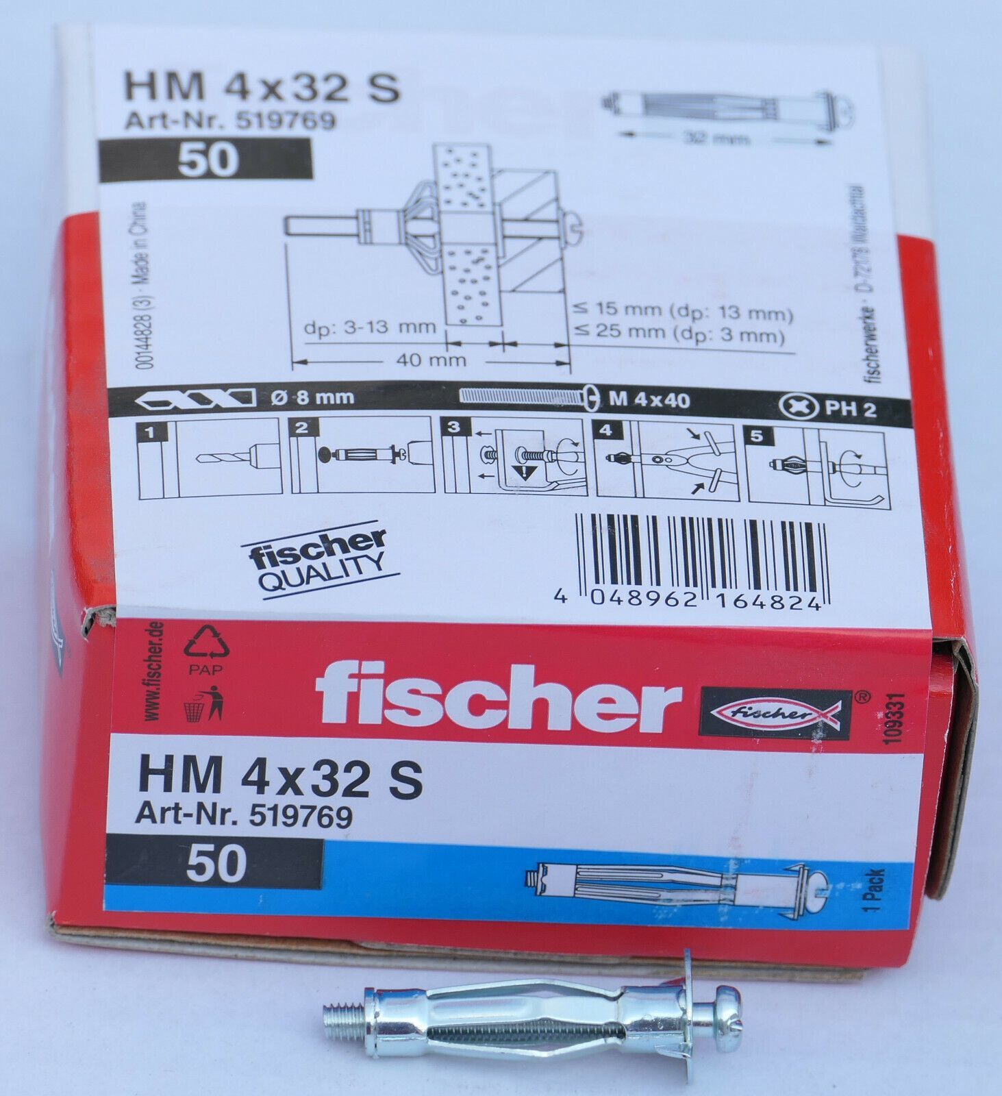 fischer HM Hohlraumdübel mit metrischer Schraube oder Wandhaken nach Wahl