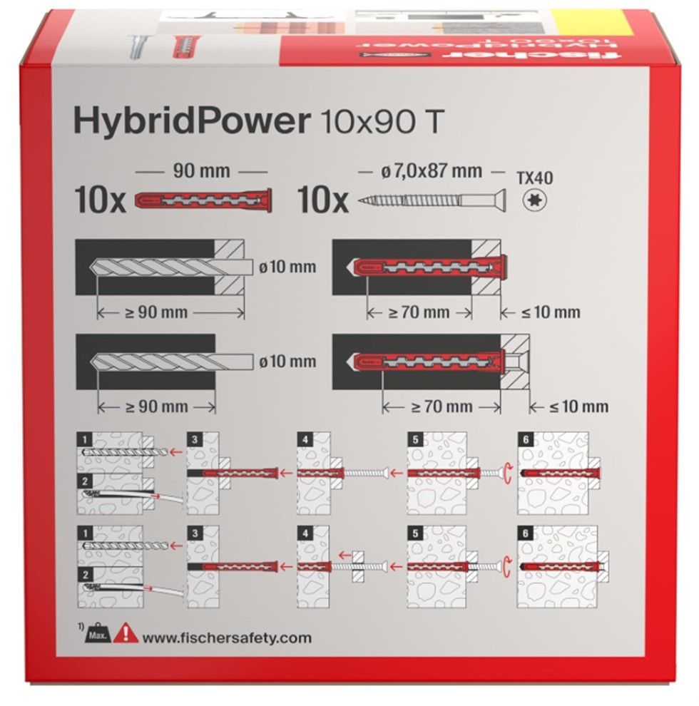 Fischer HybridPower T flache Senkschrauben verlängerte Dübel 10 x 90 mm