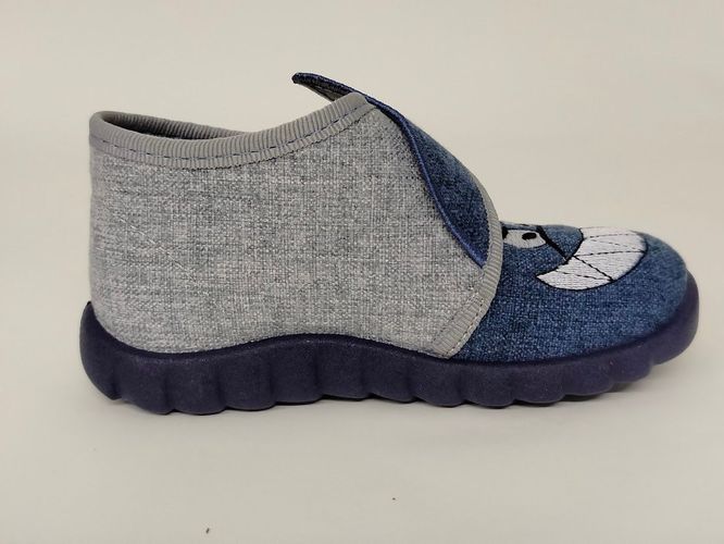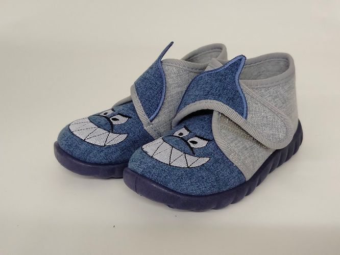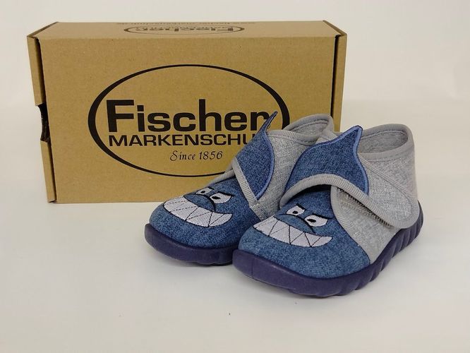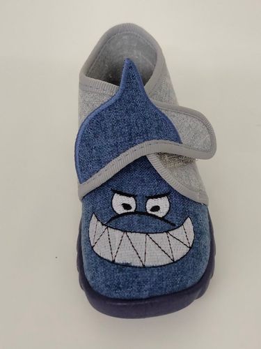 Fischer Jungen Hausschuh Haikopf mit Klettverschluss blaugrau